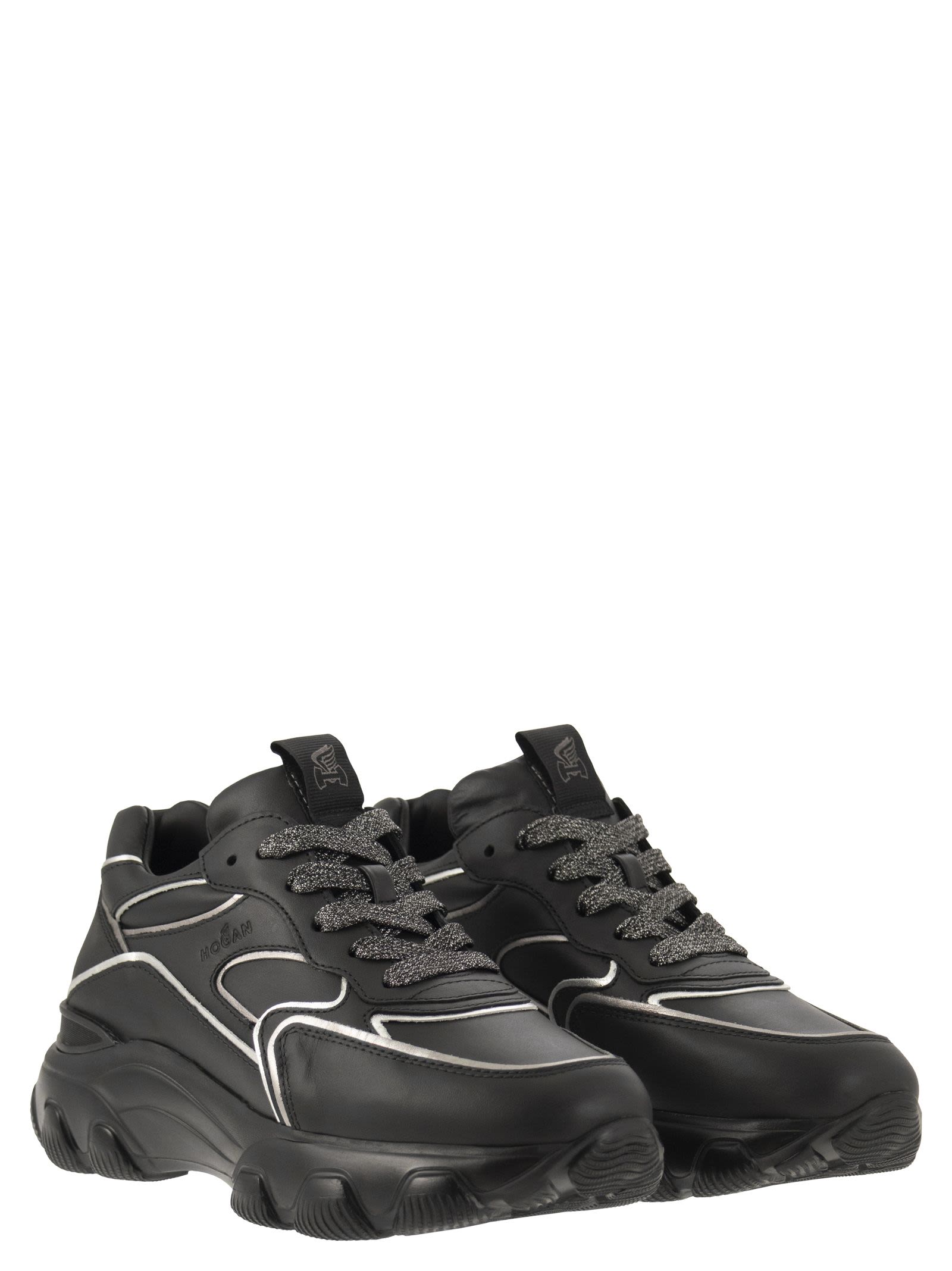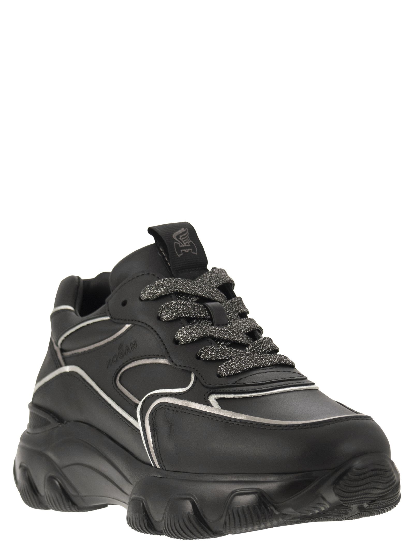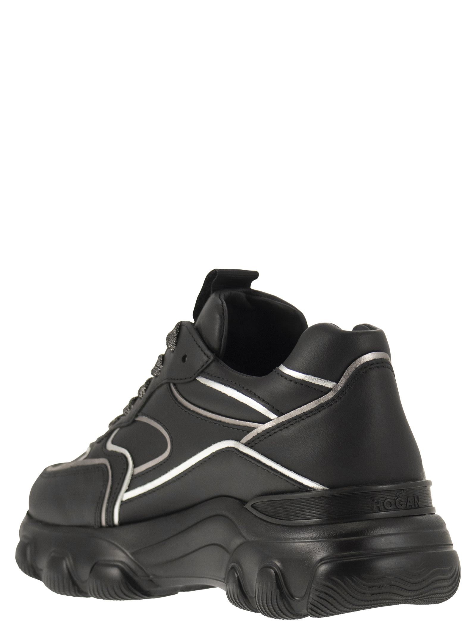 Die hyperaktiven Trainer von Luxus Hogan repräsentieren eine dynamische Synthese zeitgenössischer Inspirations- und Erbedetails. Die Extralight Chunky Sohle hat ein Profil mit fließenden Linien, die sich perfekt mit denen des Obermischen einfügen. Dieses Modell besteht aus glattem Leder und verfügt über eine metallische Lederausstattung und das Hogan -Logo, das auf der Seite geprägt ist. Das Memory Foam Footbett sorgt für eine gepolsterte Passform. - Oberes Leder Upper - Metallic Lederverkleidung - Hogan -Logo auf der Seite - 8 mm Memory Foam Fußbett - Gummi -Sohle -Designer -ID: HXW5400FB10RMW0ATB