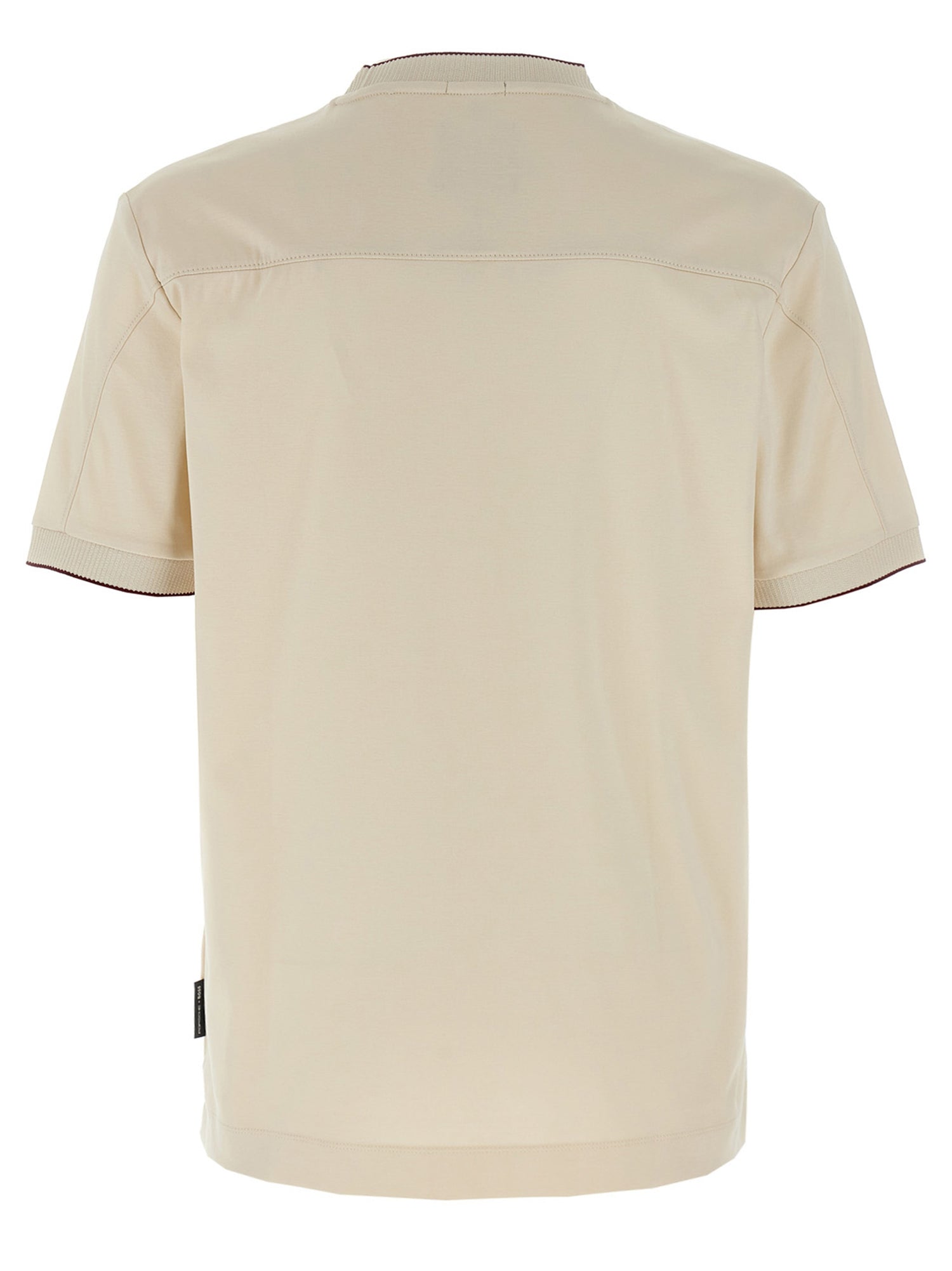 Porsche X Boss Capsule 'Thompson 40' T-Shirt in mercerisierter Baumwolle, Stickerei mit dem Ton-auf-Tone-Logo vorne, rippbed-Rohrleitungskragen und Ärmeln, Crew-Hals und kurzen Ärmeln.