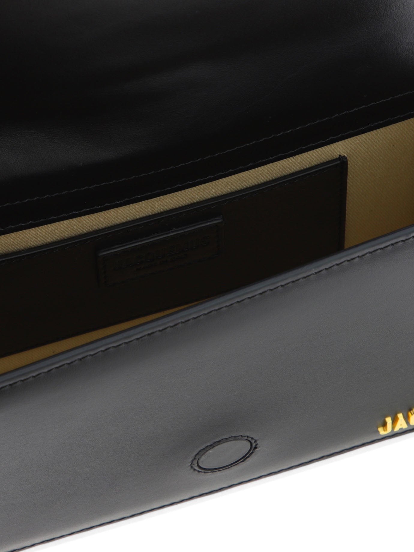 Die Handtasche von Jacquemus "Le Grand Bambino" ist das perfekte Accessoire für die moderne Frau, die in ihrem täglichen Leben einen Hauch von Eleganz und Funktionalität sucht. Diese Tasche wurde mit einer akribischen Sorgfalt entworfen und kombiniert die Praktikabilität eines abnehmbaren Schultergurtes mit der Eleganz eines zurückhaltenden Designs, der Making Making it für jeden Anlass geeignet. - Größe: 23,5x13x7 cm - kleiner Griff - Abnehmbarer Schultergurt - Sicherungstasche mit Kartensteckplatz - Verschluss der Magnetklappe - Golden Jacquemus Logo Für ein raffiniertes Aussehen kombinieren Sie "Le Grand Bambino" mit einem maßgeschneiderten Blazer und einer geraden Hose. Sie können das Outfit mit einem Paar Pumpen und minimalistischem Zubehör vervollständigen, um die Einfachheit und Eleganz der Tasche zu verbessern.
