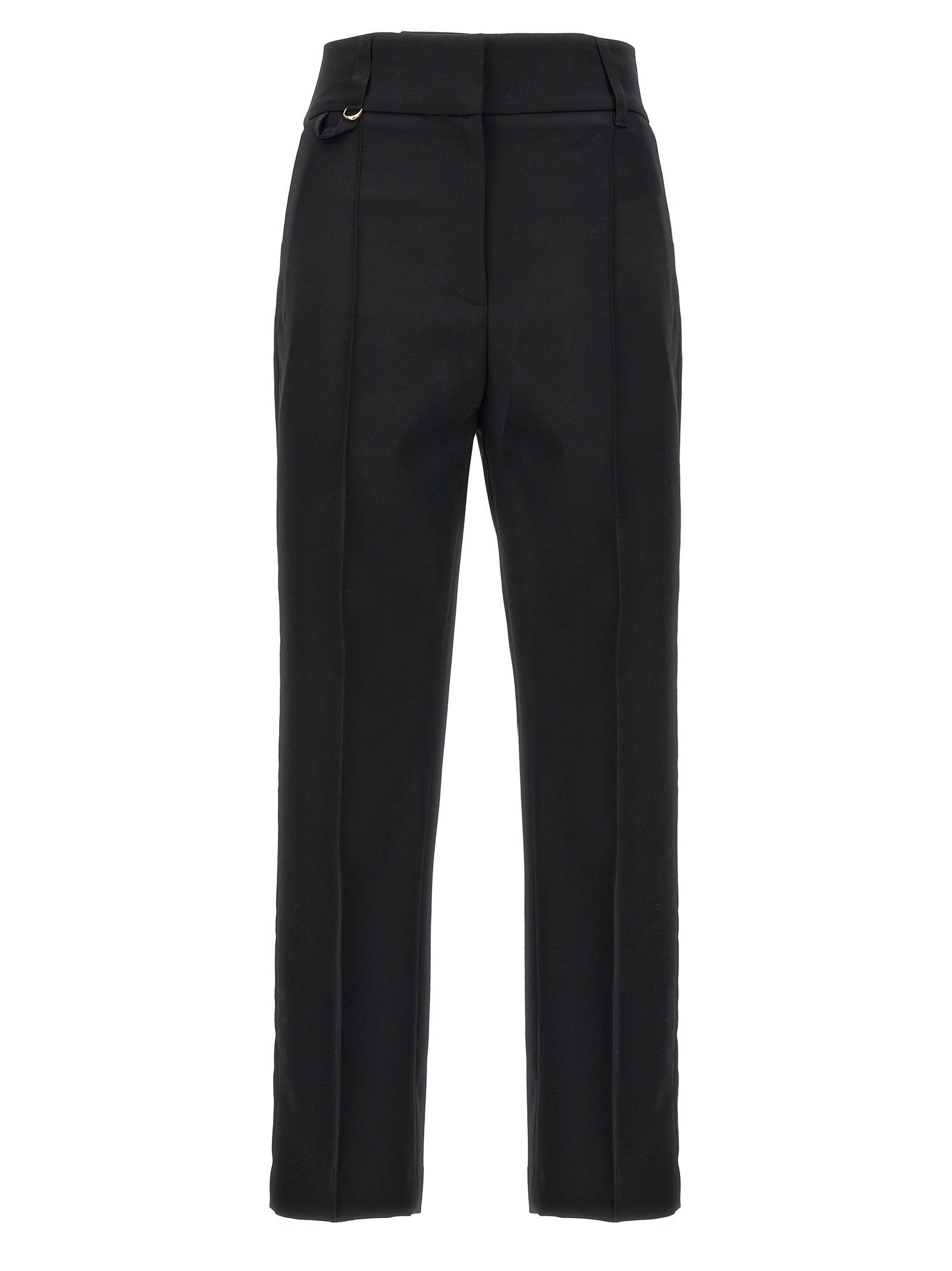 'Le Pantalon Court' hoch taillierte Wollhosen, Reißverschluss und Knopfverschluss, Gürteldetail an der Taille mit Knöpfen auf der Rückseite.