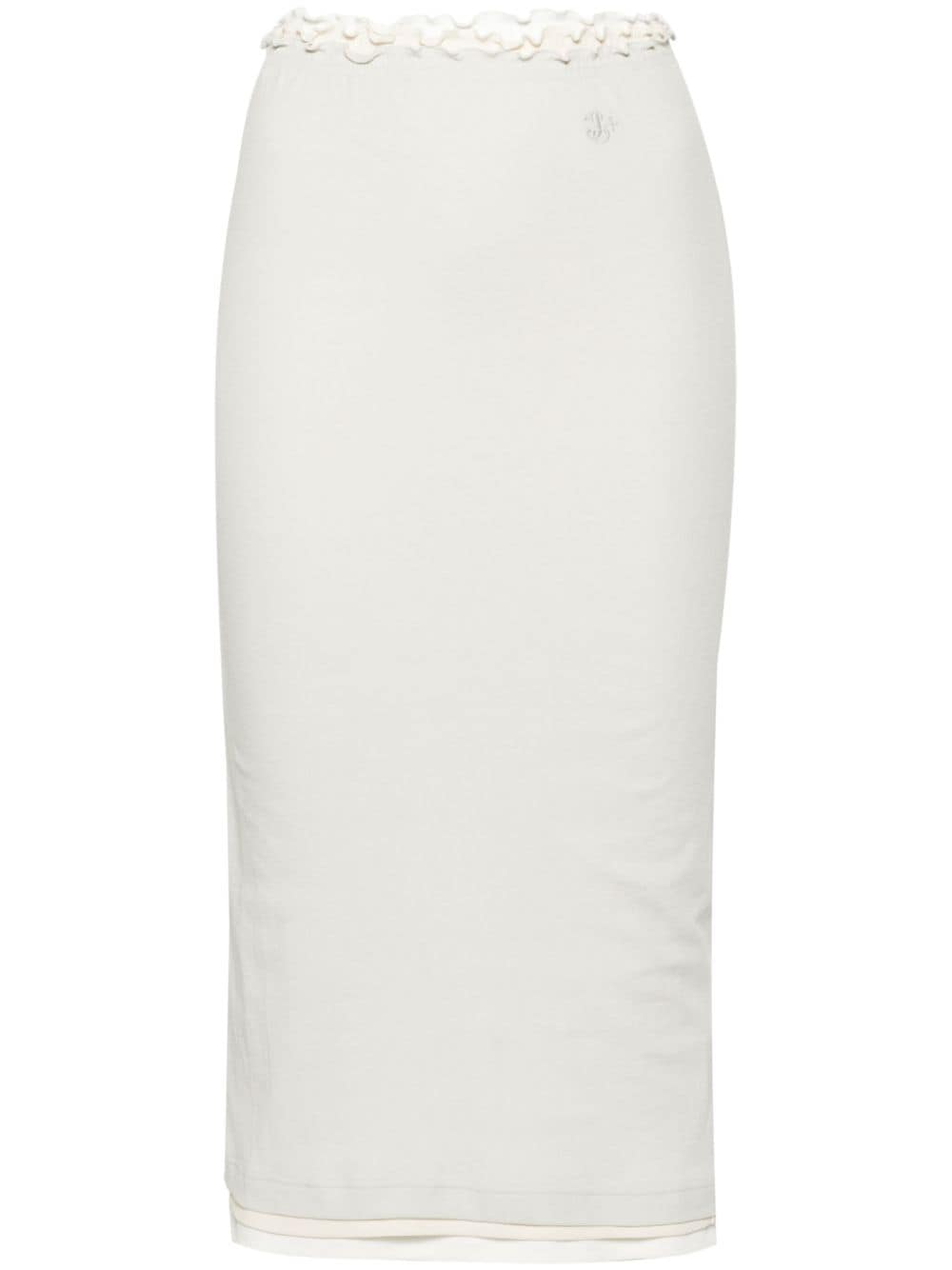 Beige/hellgrau/övoner weißer Baumwolltrikot-Textur-Logo-Embrodered Kragen, elastischer Wildbund Slip Silhouette gerade Saum mit mittlerer Länge von drei