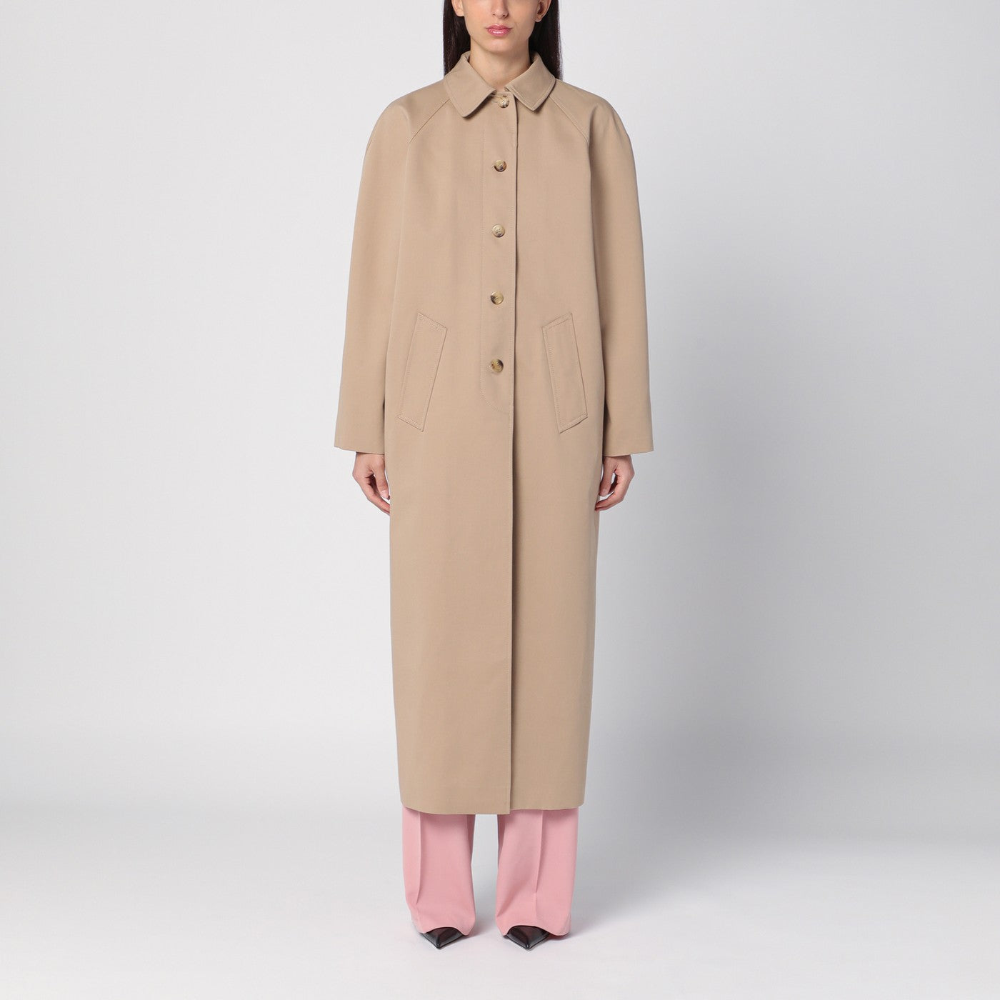 Moschino Beige reversibler Trenchcoat in Gabardine und Satin