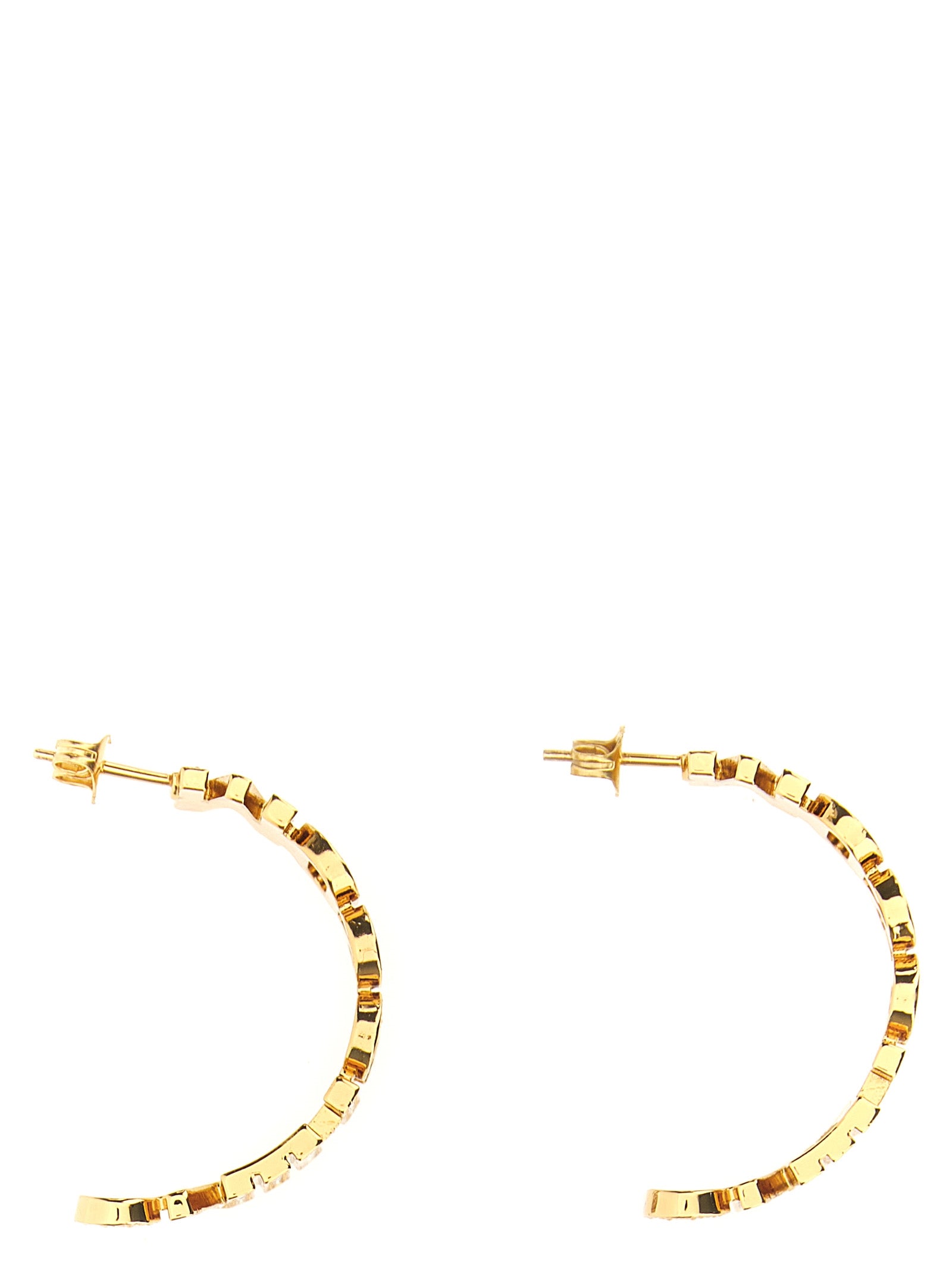 Goldmetallohrringe mit Logo, Kristalldetails. Dieser Artikel kann nicht zurückgegeben werden