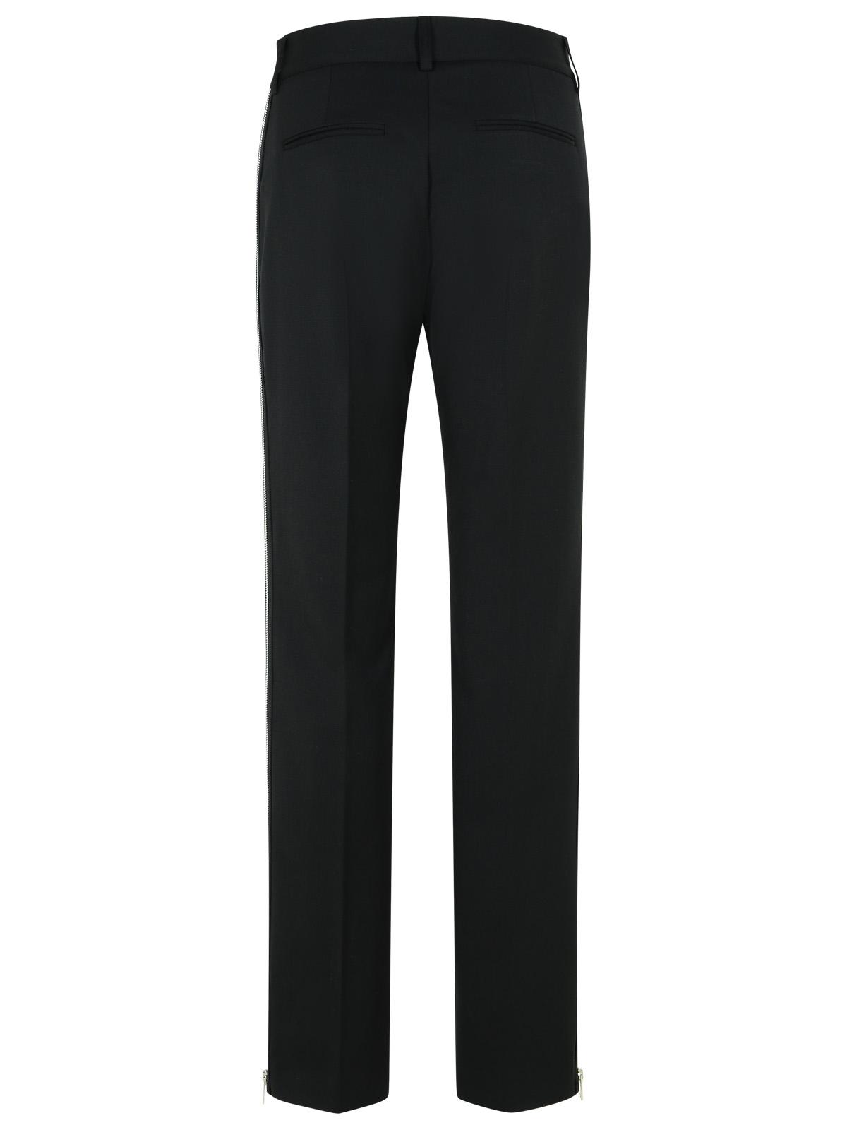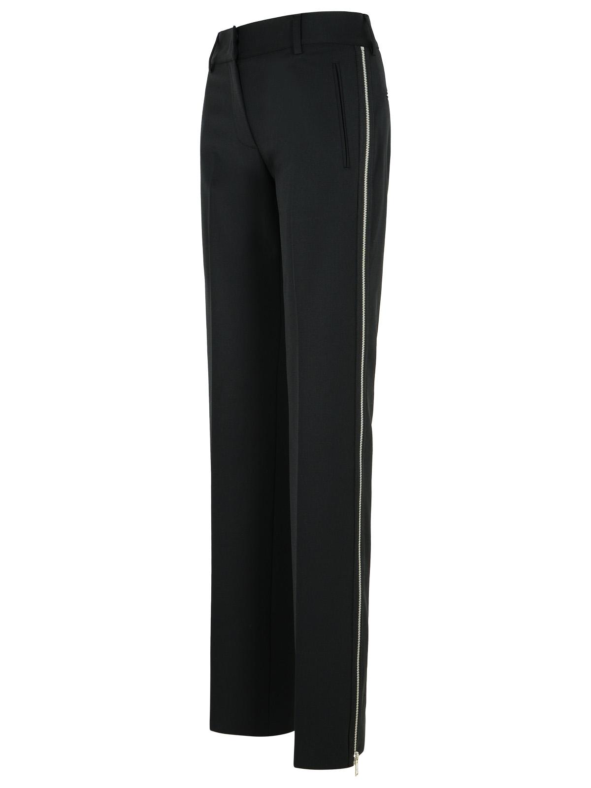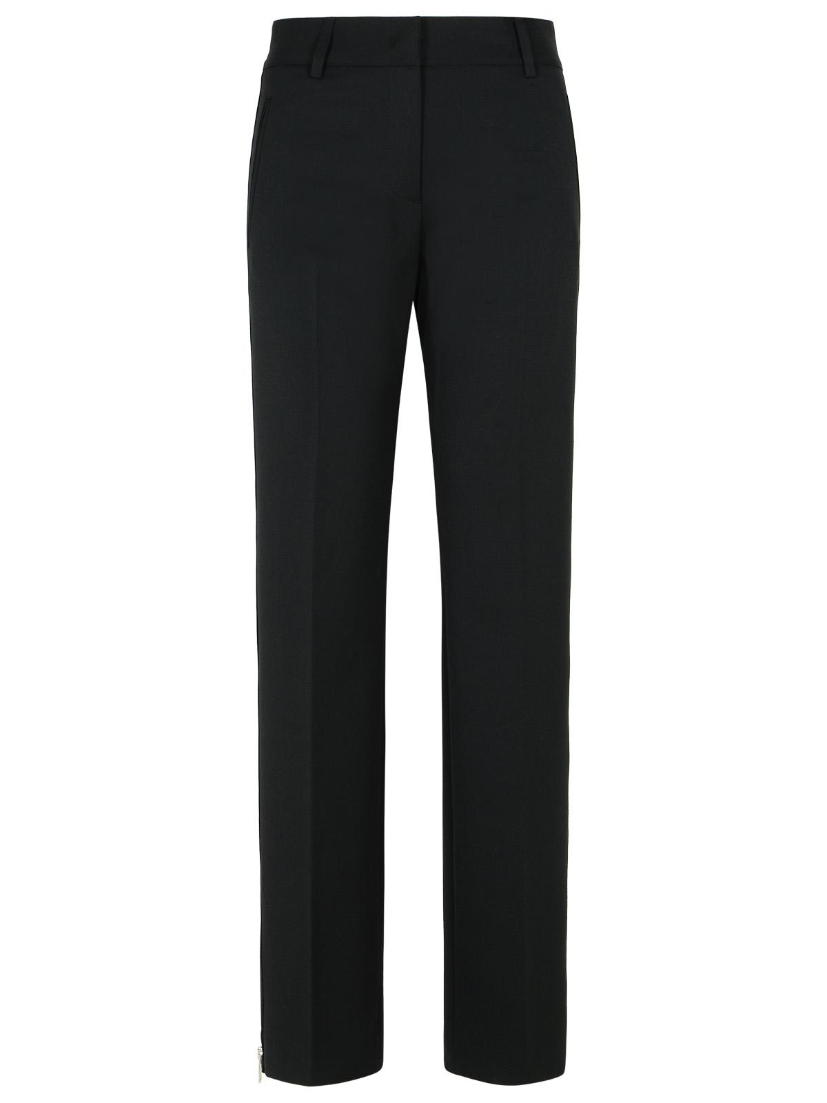 Flare-Schnitt, Gürtelschlaufen, Stift und Reißverschluss, die durch Klappen, Seitenstallungen, Vier-Tasten-Stil versteckt sind