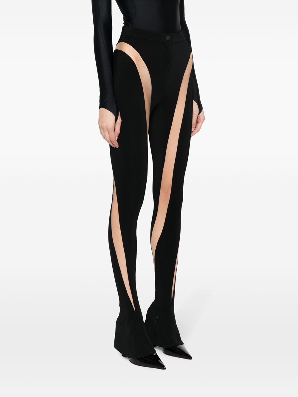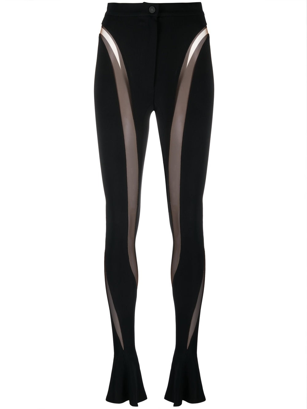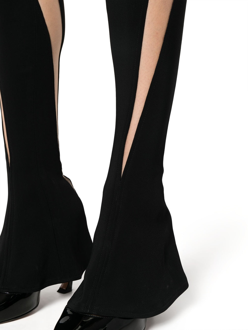 Black, elasticated design, front button closure, semi-transparent inserts, slim fit and flared cuffs.