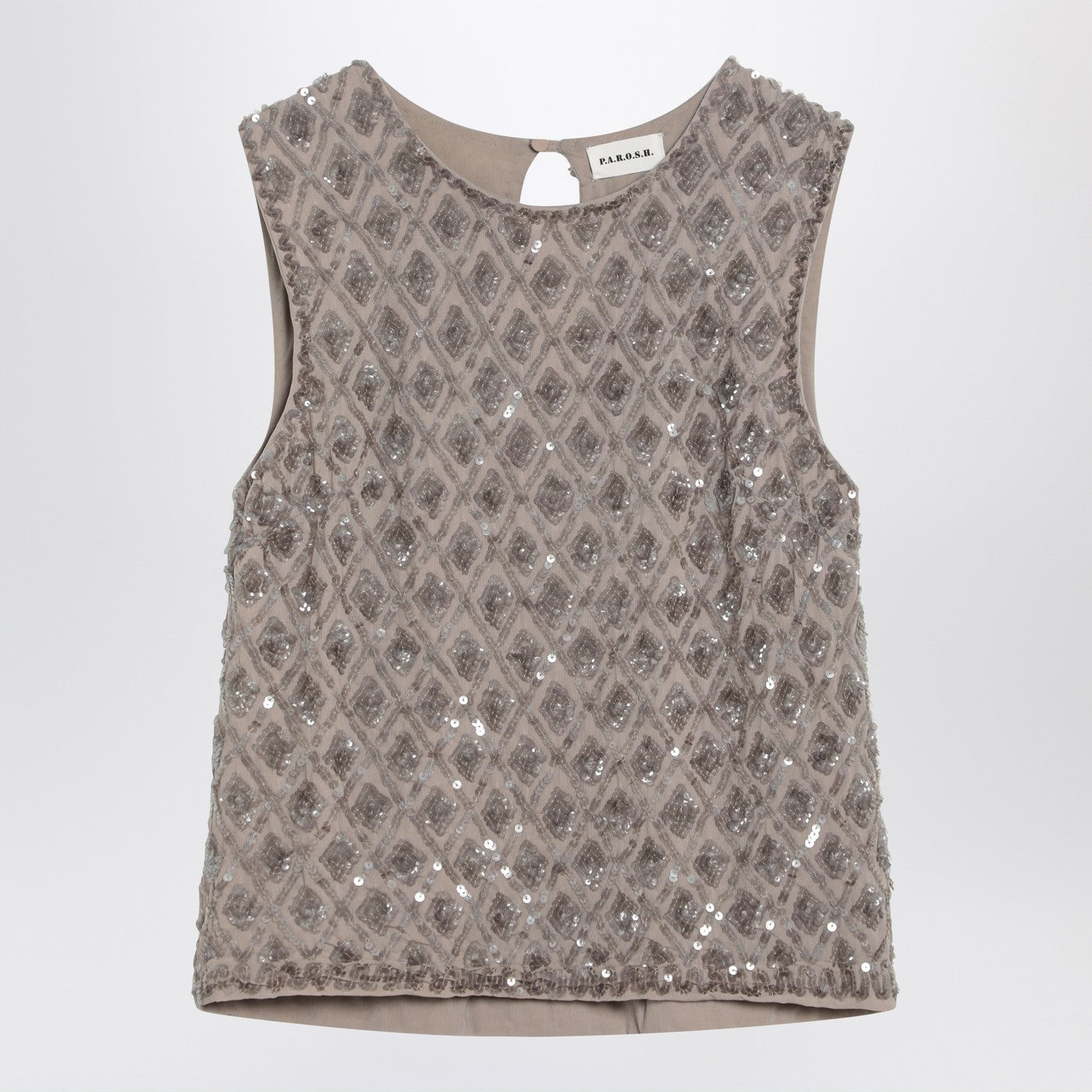P.A.R.O.S.H. Graues Tanktop mit Pailletten
