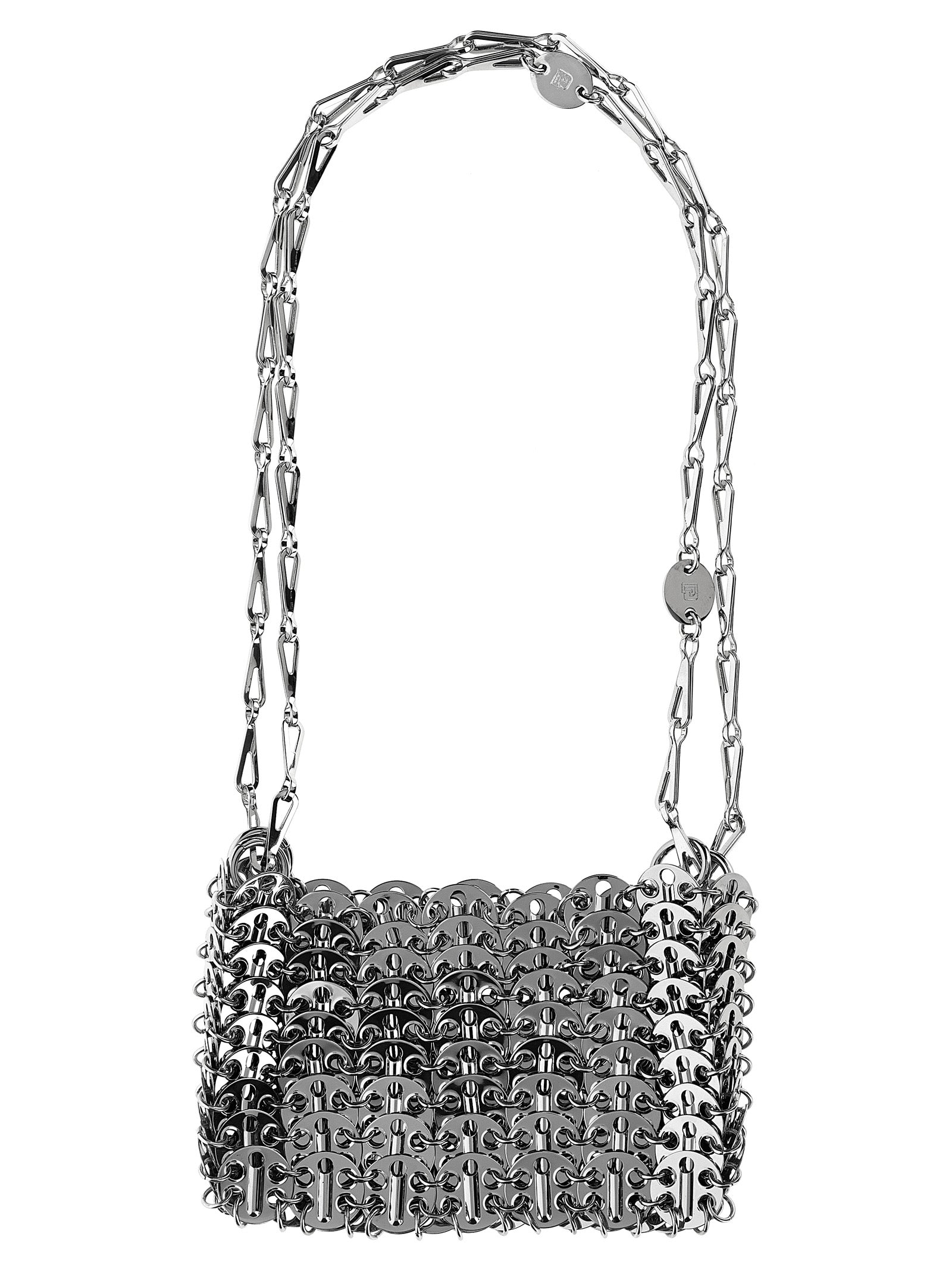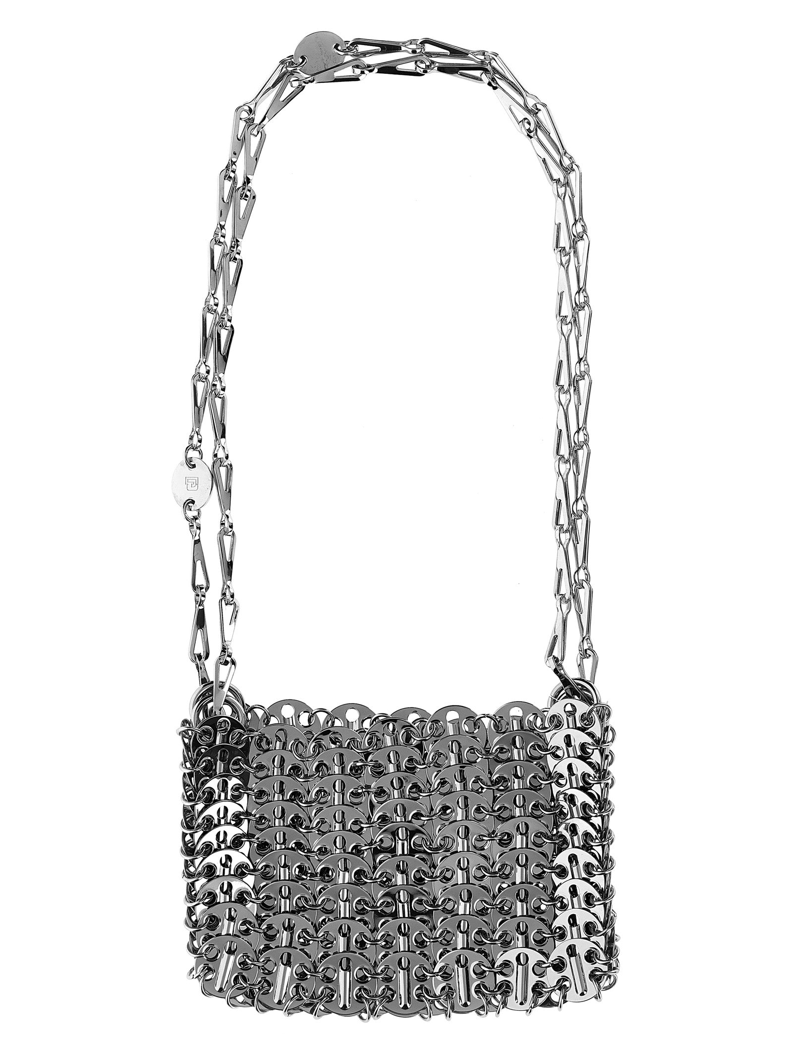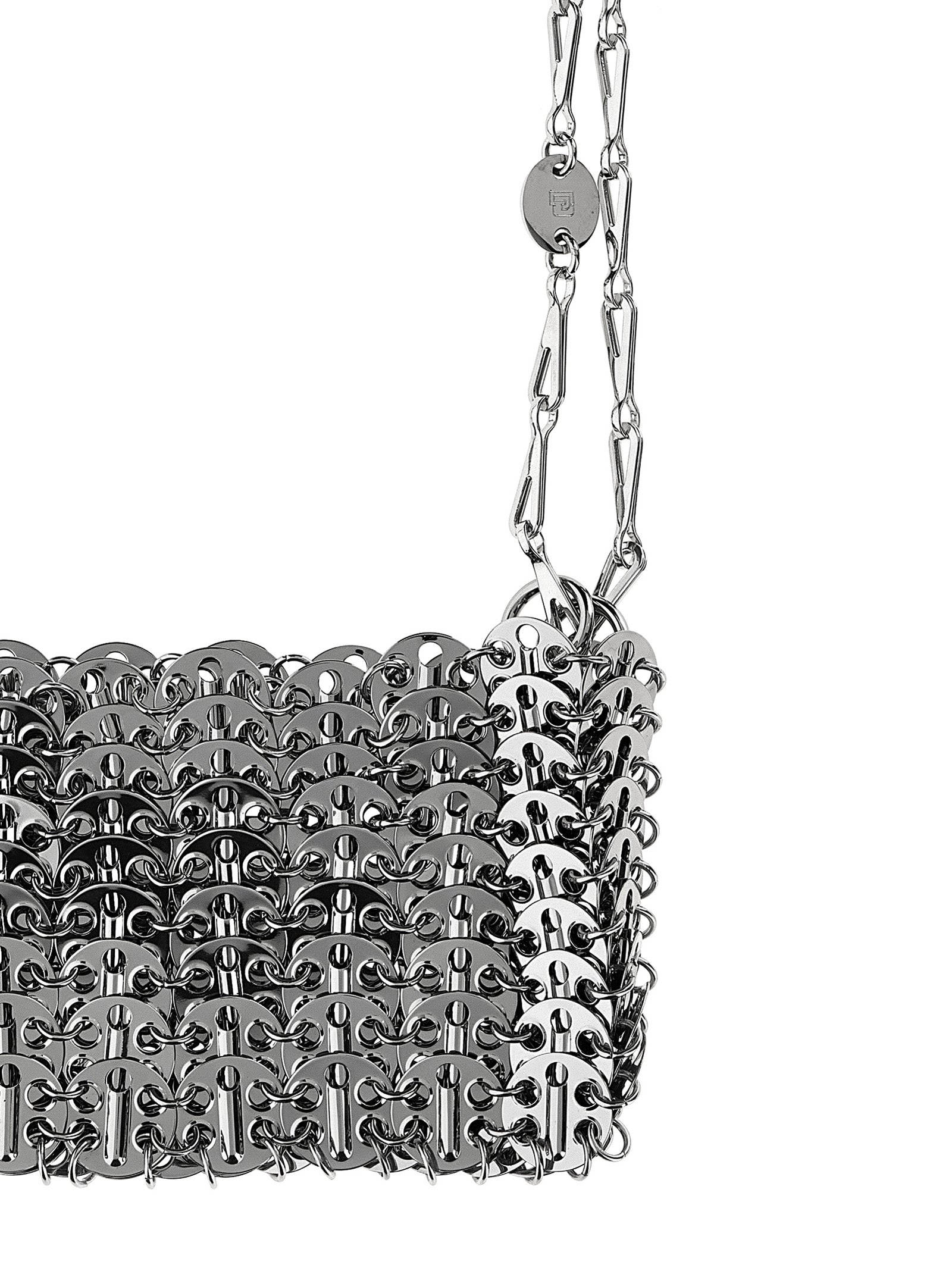 '1969 Nano' Umhängetasche mit einem silbernen Metallstrickstoff und einem Ketten -Schultergurt.