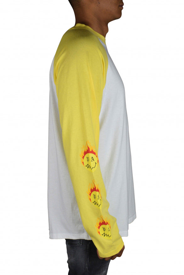 Detail von drei Smiley -Flamme auf den Ärmeln.