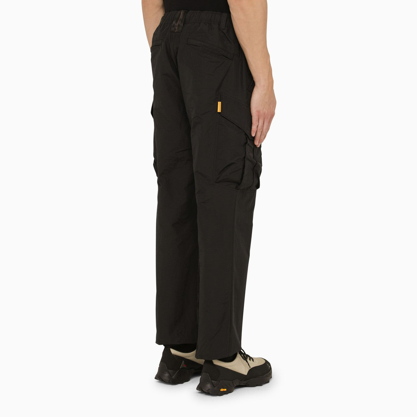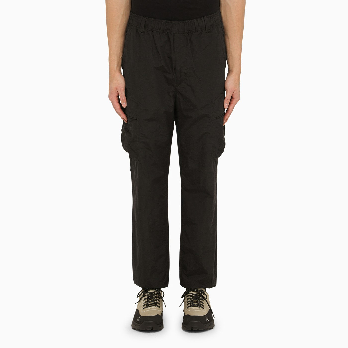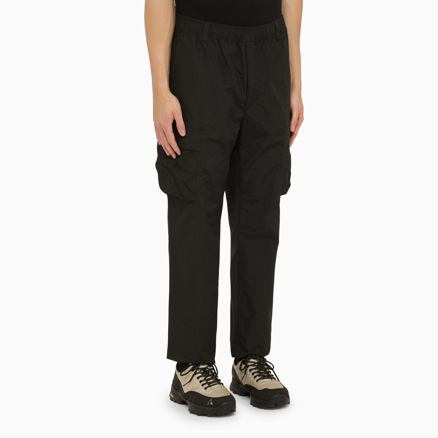 Schwarze Nylonhosen von Parajumpern mit einem elastischen Bund, Gürtelschlaufen, Seiten- und Rückentaschen, zwei Patch -Taschen mit Schnappknopf und gelbes Klebeband, elastischer Beinboden und Logo -Patch vorne.