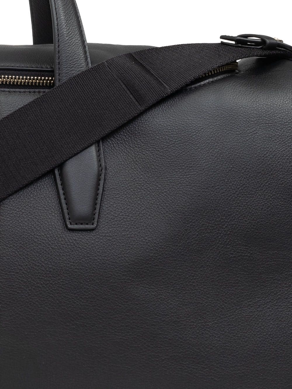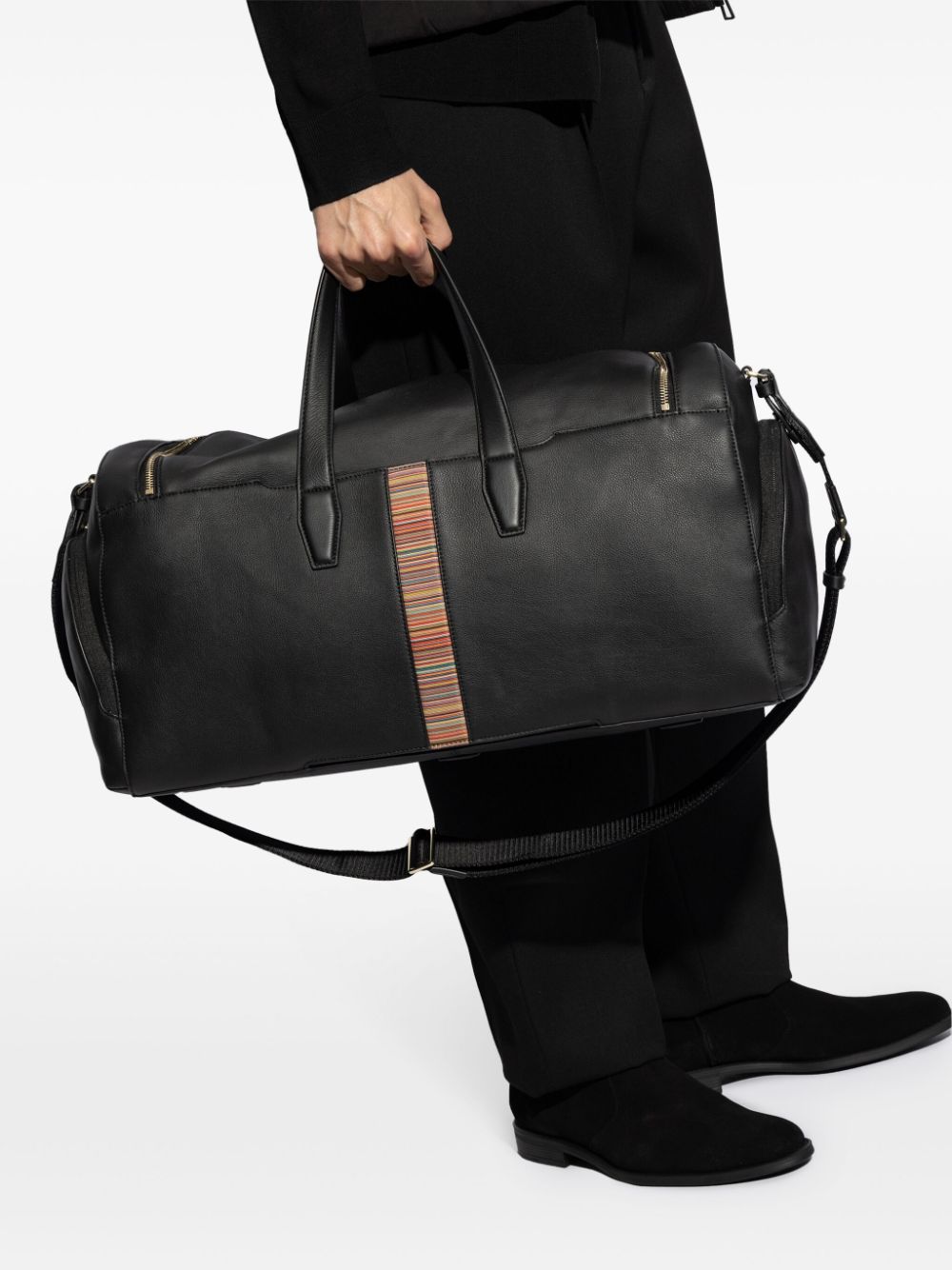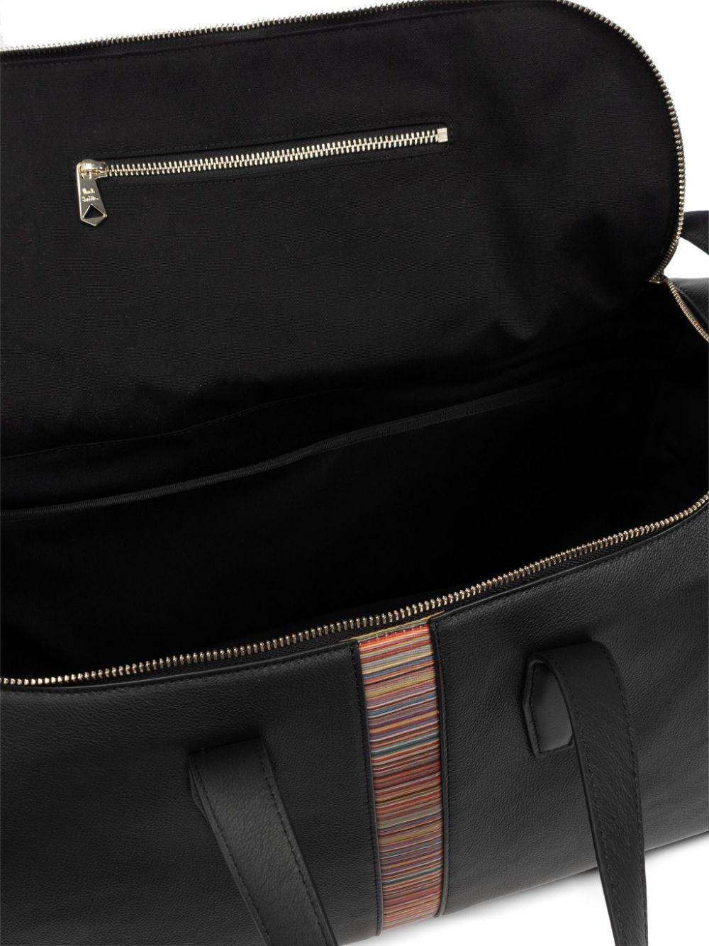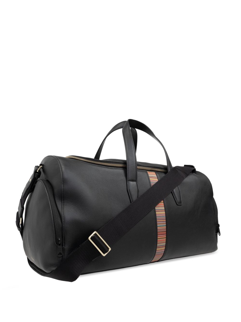 Schwarz/mehrfarbiges Kalb Lederkörnigte Texturstreifen Details Top Reißverschluss zwei flache obere Griffe Verstellbarer Schultergurt Hauptfach Inneres Taschentasche mit Reißverschlussfärbungstasche