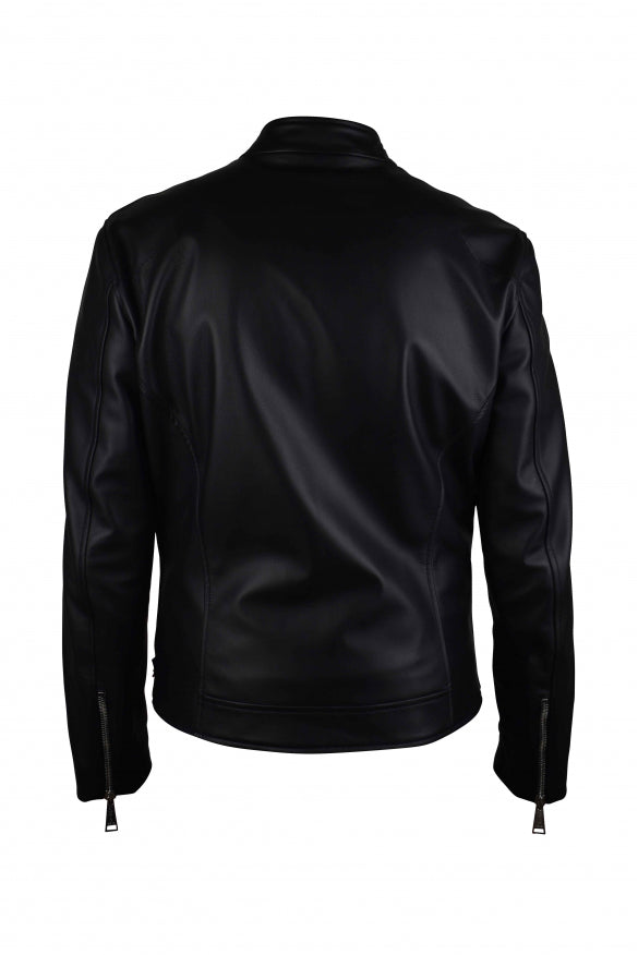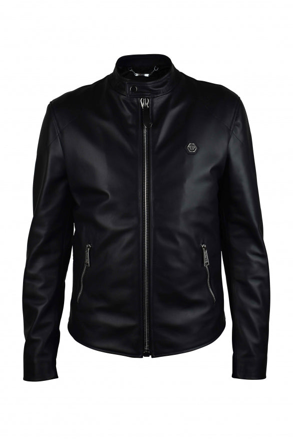 Philipp Plein Biker Jacke in glattem schwarzem Leder.