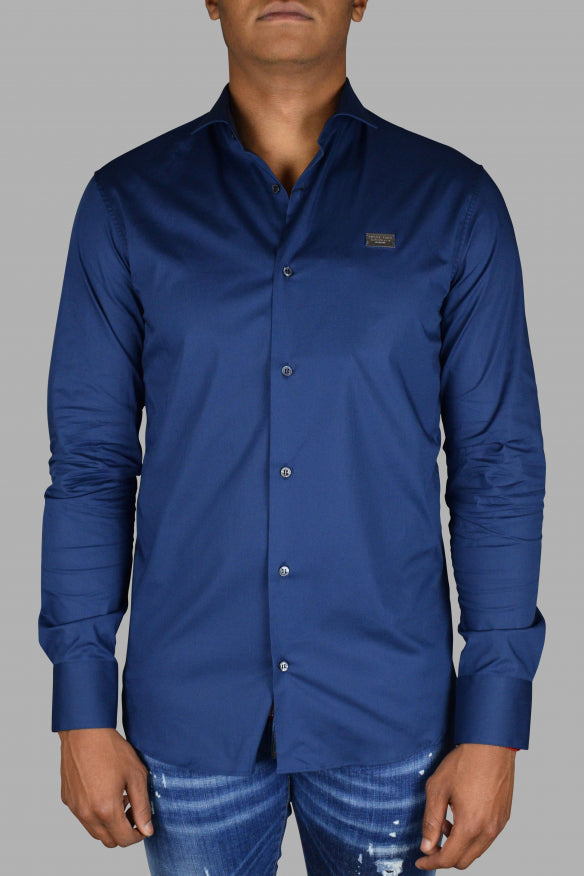 Philipp Plein Diamond Cut LS Ikonisches blaues Hemd.