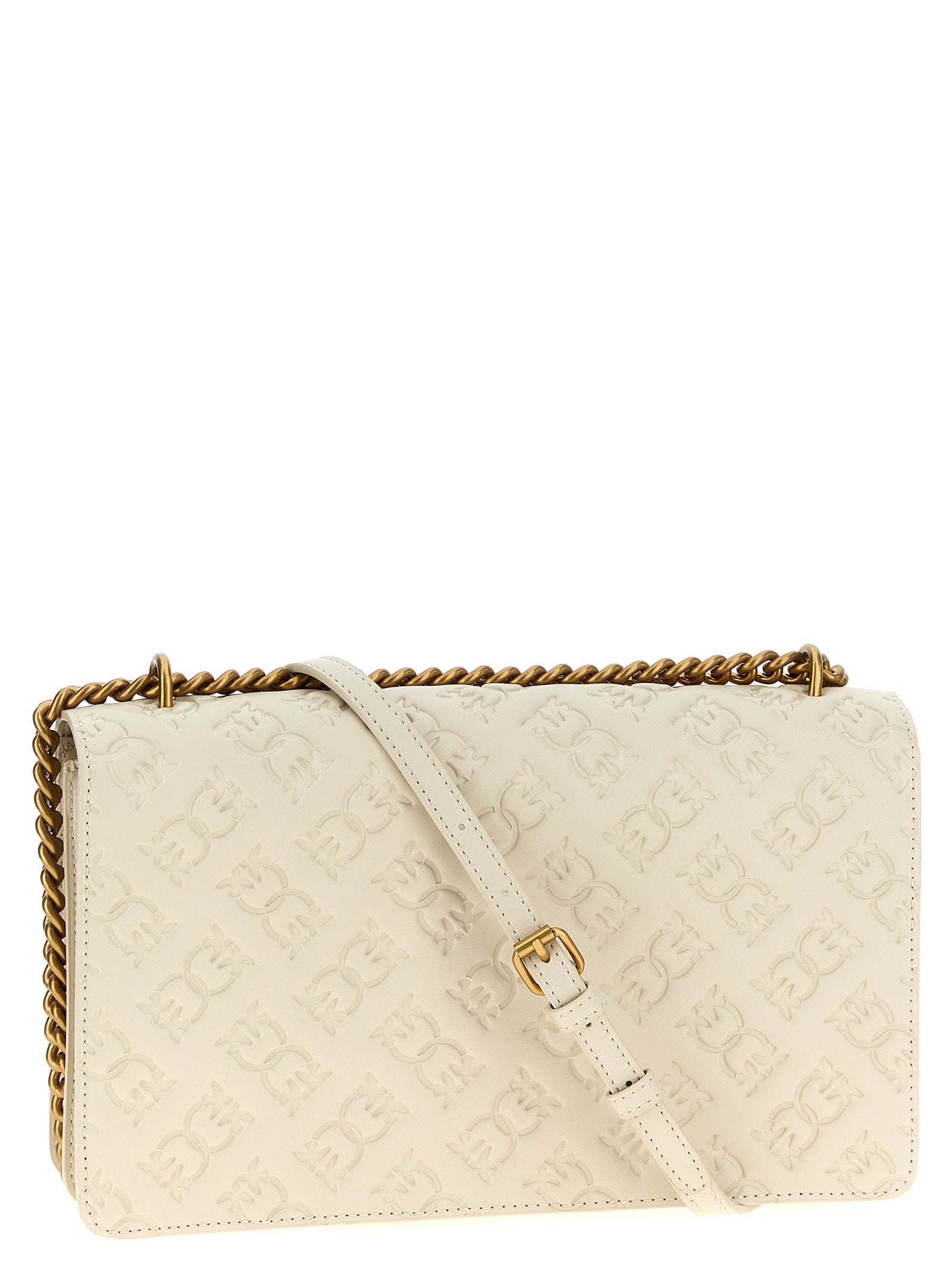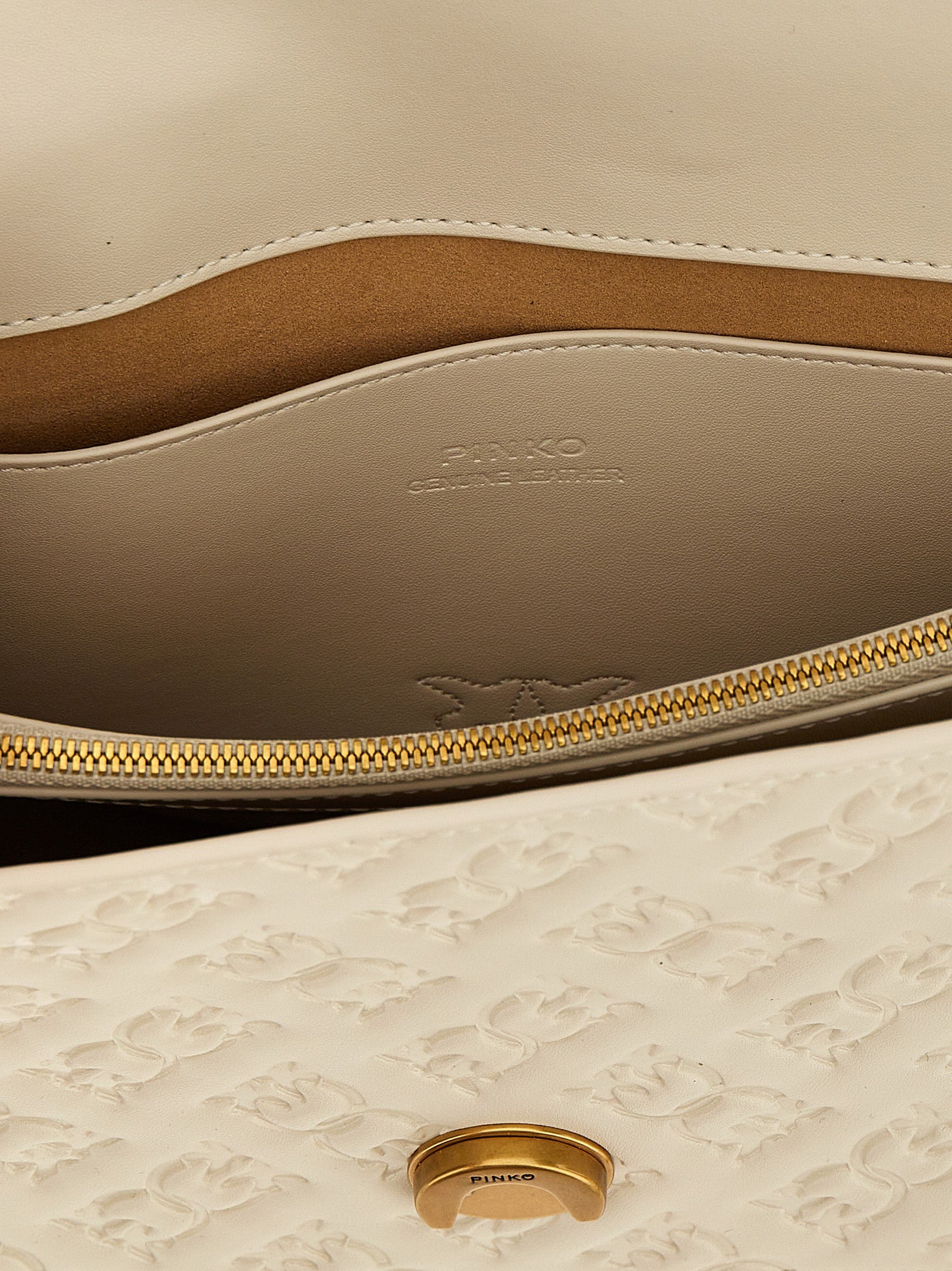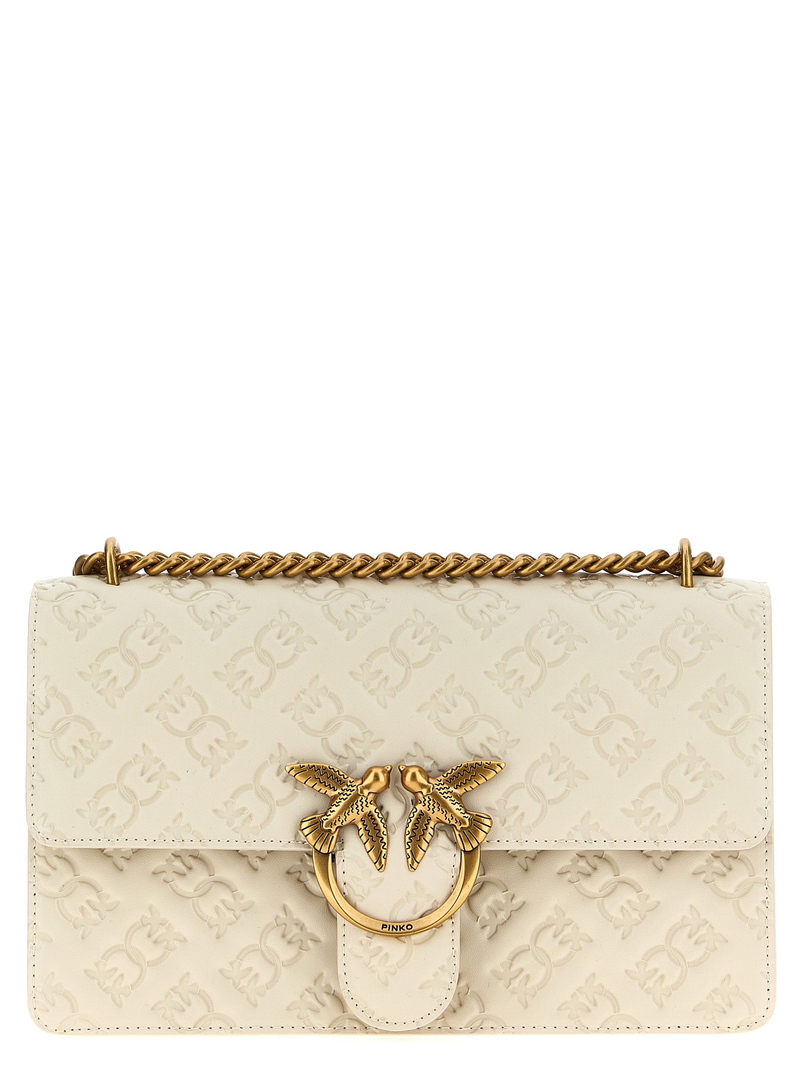 Love Birds Monogramm Print Leder Love Bag Crossbody -Tasche mit Imprimé -Technik, Magnetklappenverschluss mit vorderem Metall -Logo -Applikationen, Ketten- und Leder -Schultergurt.