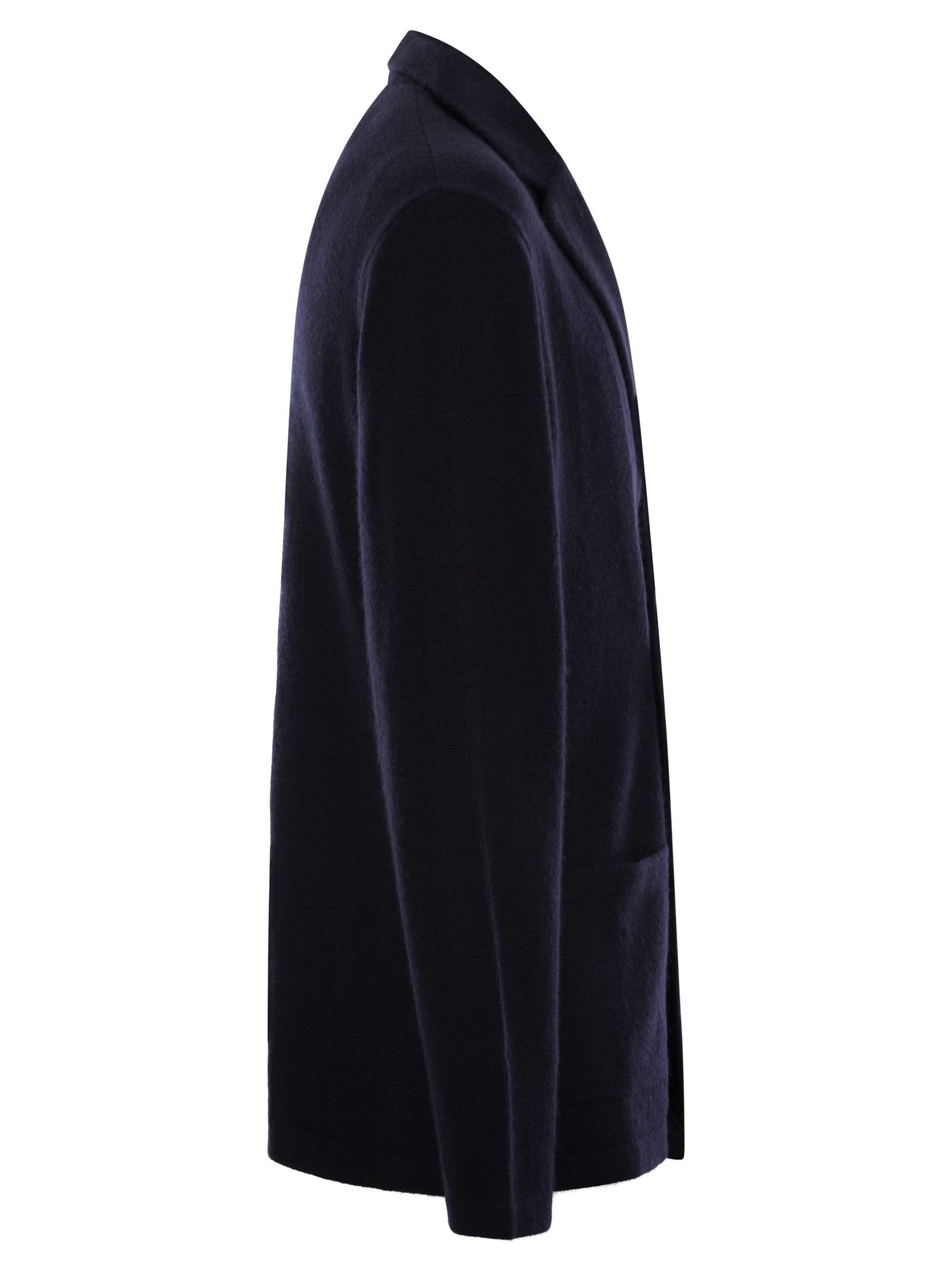 Diese Unisex -Strickjacke im feinen italienischen Kaschmir ruft die Silhouette des legendären Polo Blazer hervor und interpretiert sie erneut. Exklusive goldene Knöpfe verbessern den traditionellen Charme des Kleidungsstücks. - Normale Anpassungen - gekerbte Revers - Doppelbrust -Silhouette - unverwechselbare Goldtonknöpfe - Langarmpocke - Patch -Tasche auf der linken Brust - Zwei Patch -Taschen auf der vorderen Taillendesigner -ID: 710945879 001