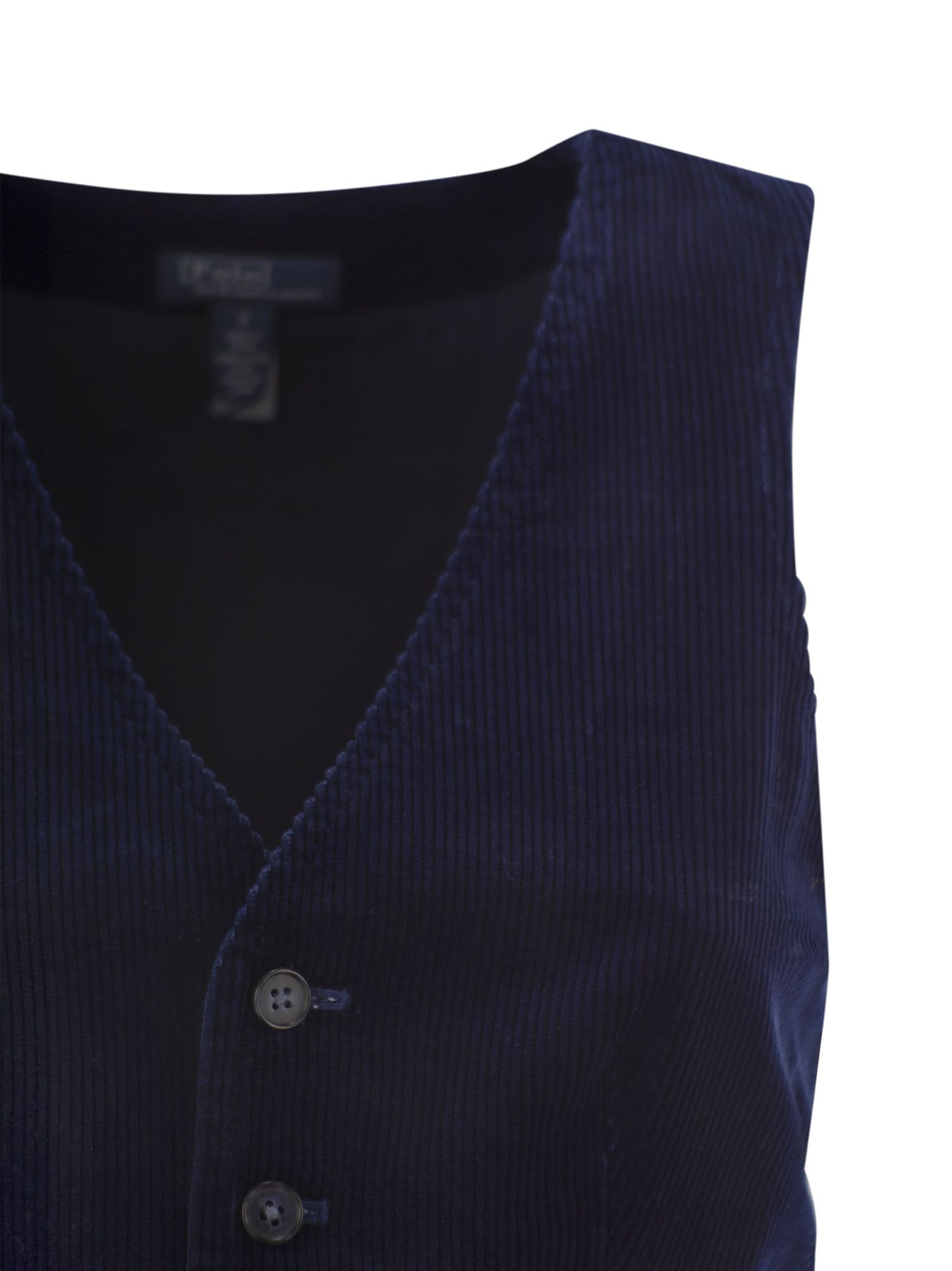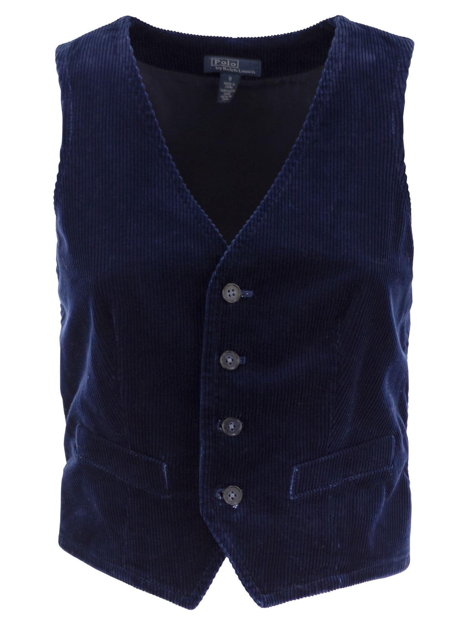 Dieser aus von Menswear inspirierte Weste aus Baumwollvelvet verfügt aus weiten Baumwoll-Samt und verfügt über eine Knopfbefestigung und eine verstellbare Schnalle an der hinteren Taille. - Gerade Schnitt - Länge der Taille - V -Ausschnitt - Knopfklappe - ärmellose Silhouette - Zwei vordere Gattentaschen - Falten an der vorderen Taille - Zentraler Rückennaht - Mitte Rückenschlitz - Rückenbund mit Schnalle - Vollgekleidetes Designer -ID: 211940719 001
