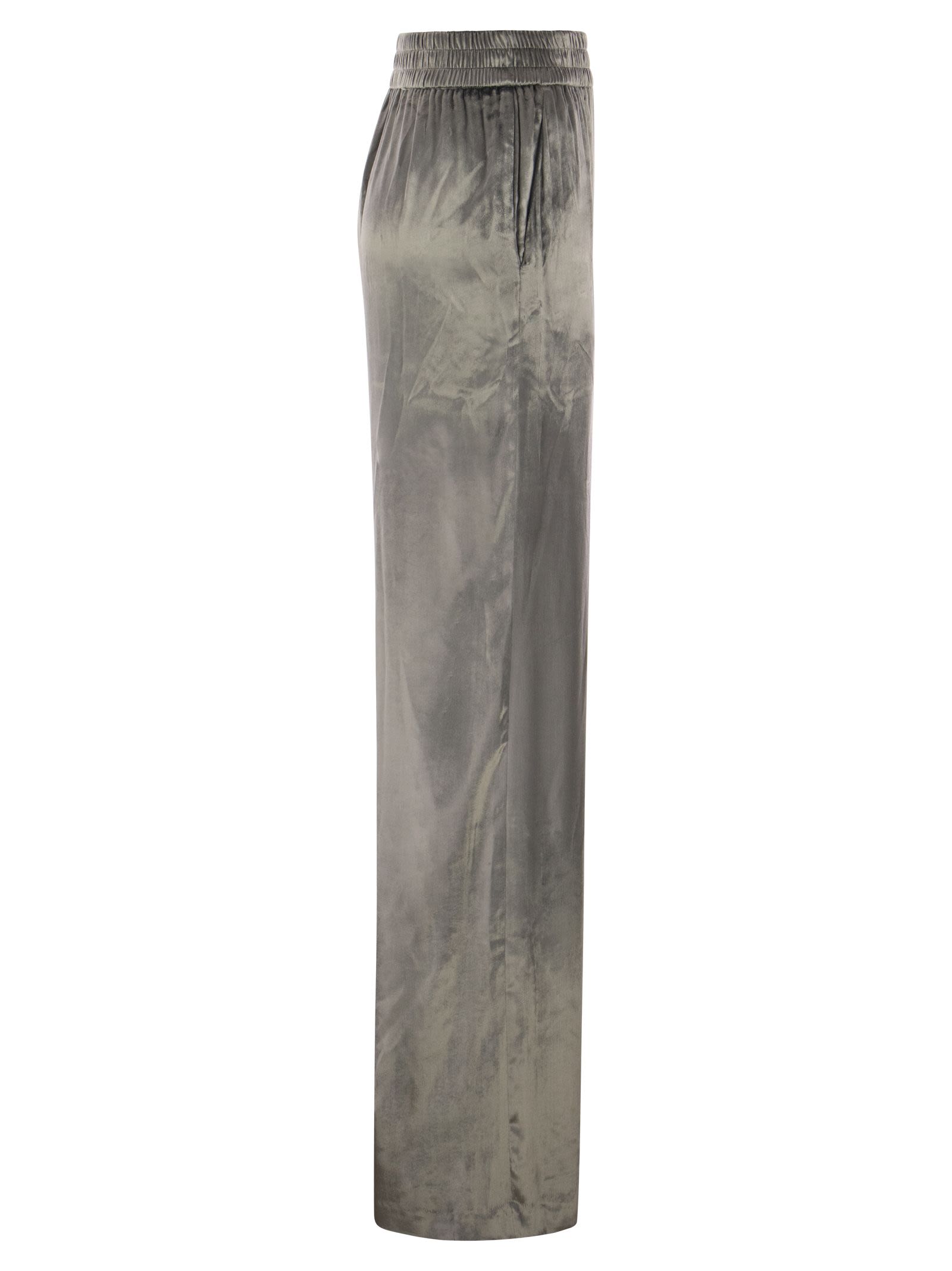 Hose in flüssigem Samt, gekennzeichnet durch eine Flüssigkeitsanpassung und mit einem elastischen Bund. - Elastischer Bund - Seitentaschen Designer -ID: 3R3RBG9042A K4Z