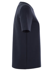 Kurzärärmelte Crew-Hals-T-Shirt aus Tauchtrikot. Regelmäßiges Passformmodell, personalisiert mit gesticktem Monogramm -Logo im Nacken. .