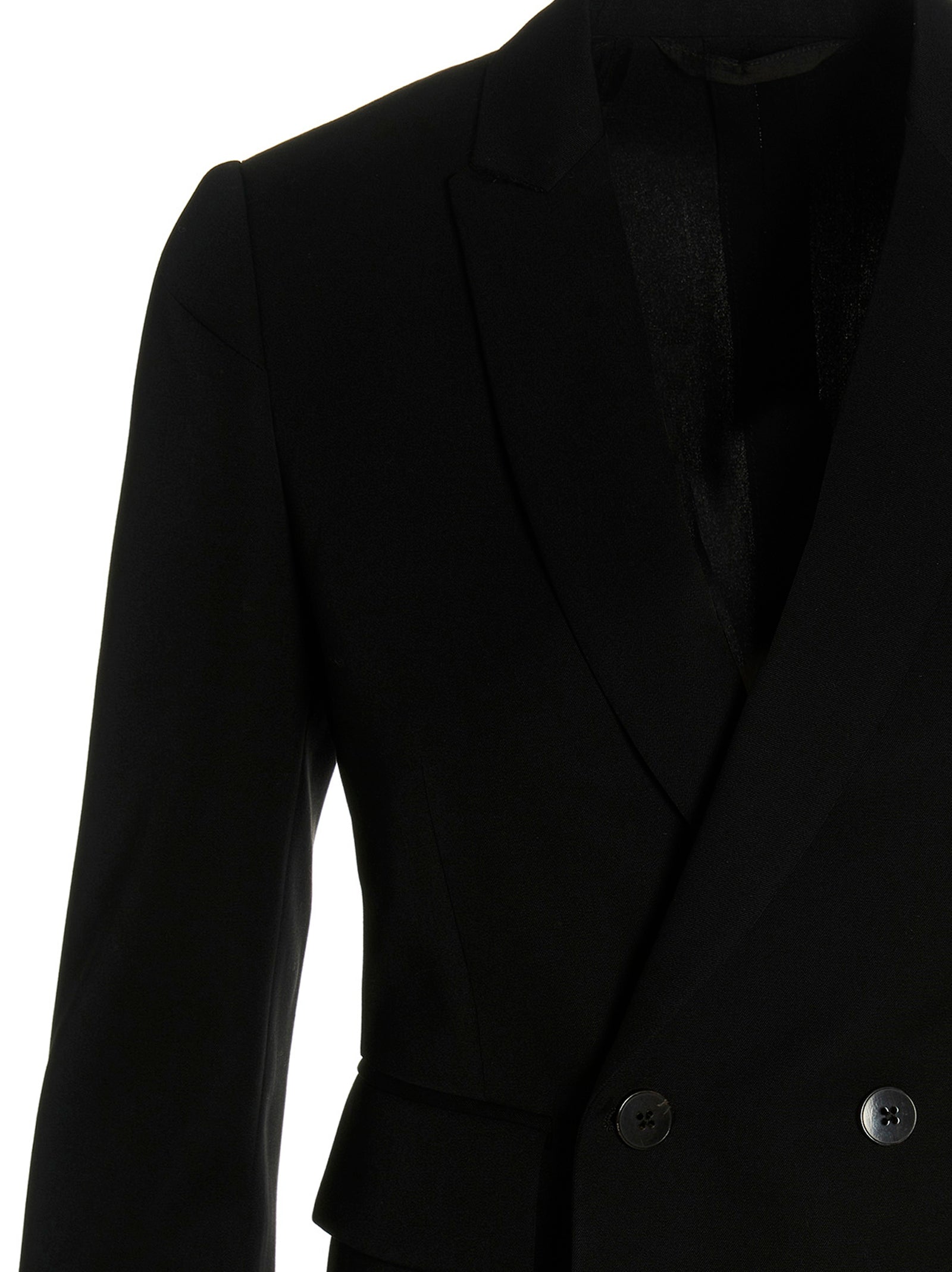 Doppelte Brustwolle Blazer mit einem Zweiknopfverschluss und Klappentaschen.