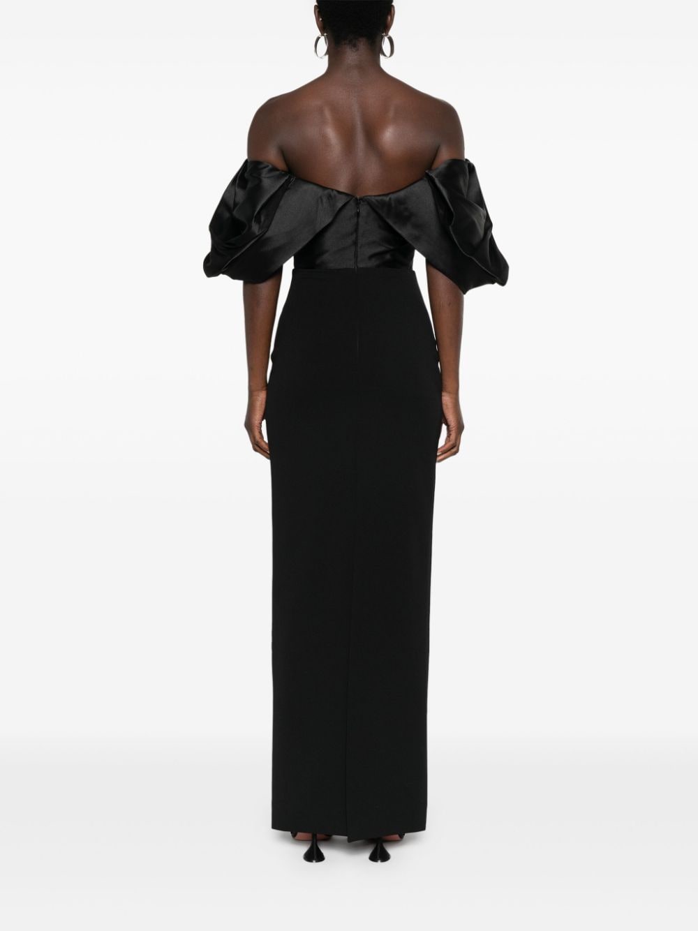 schwarze Krepptextur-Satin-Tätigkeiten trägerloser schulterfreier detaillierter Details kurzer Strukturen