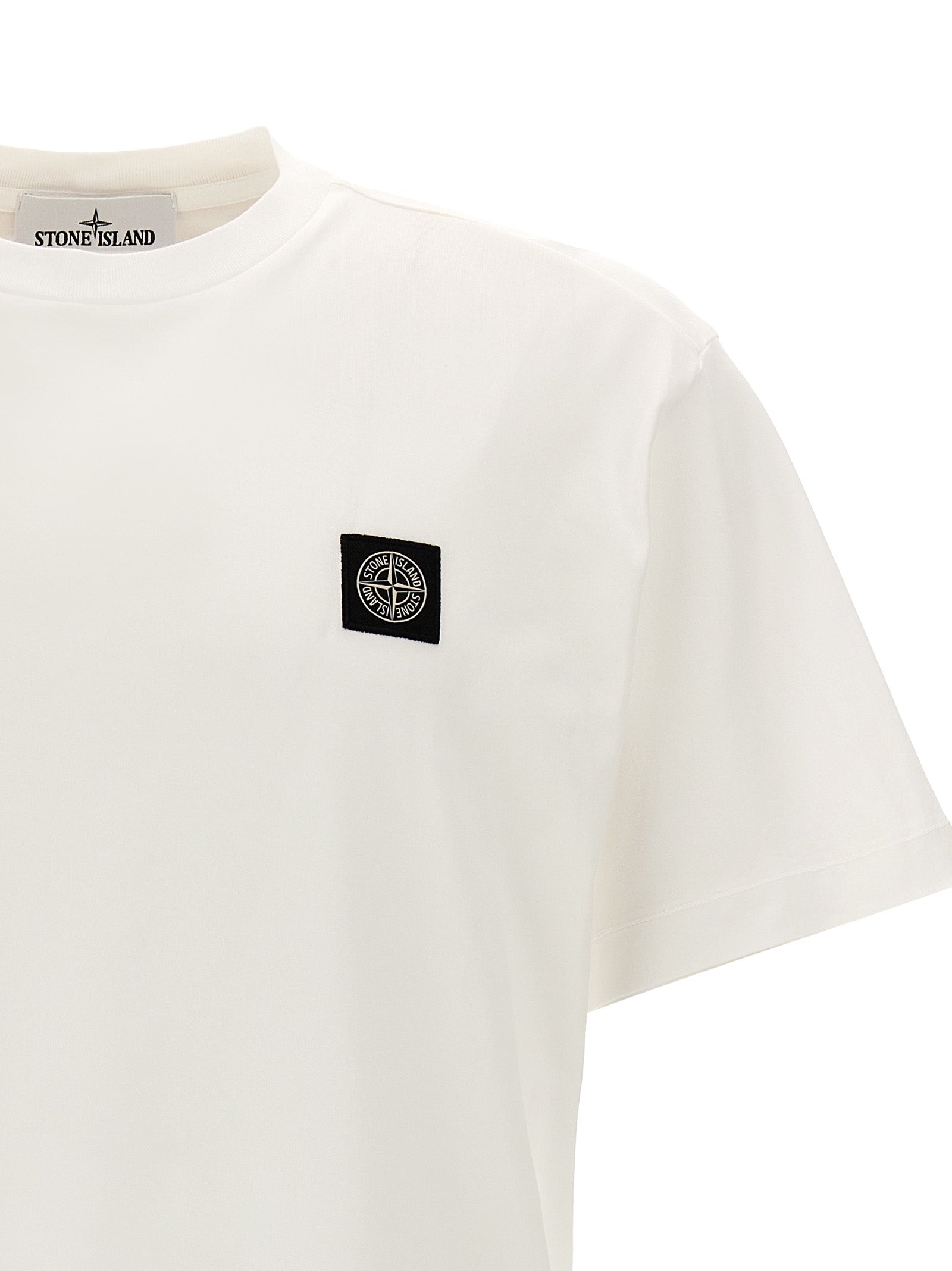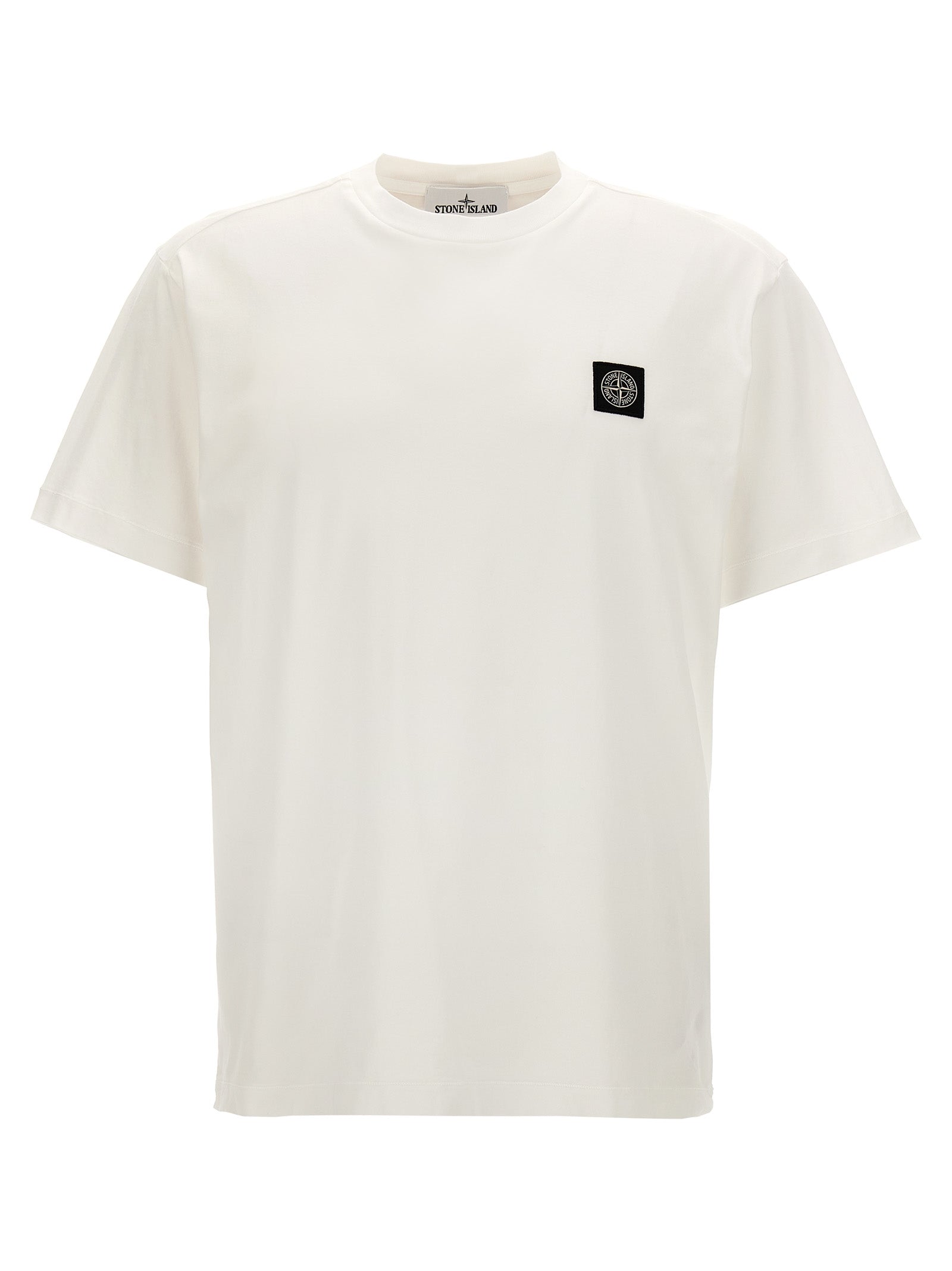 Baumwoll-T-Shirt mit Front-Logo-Patch, Crew-Hals, kurzen Ärmeln.