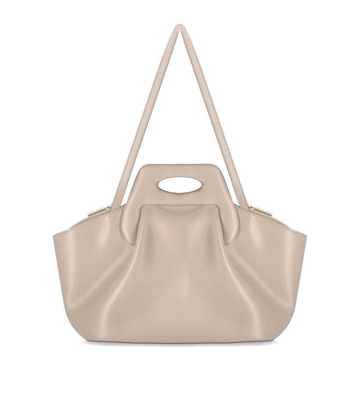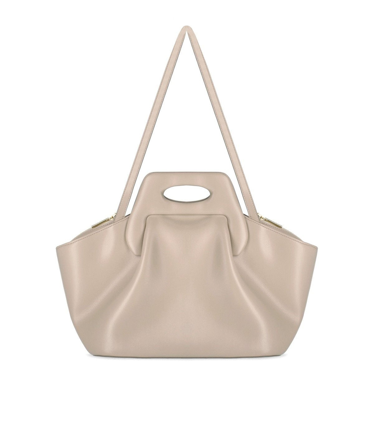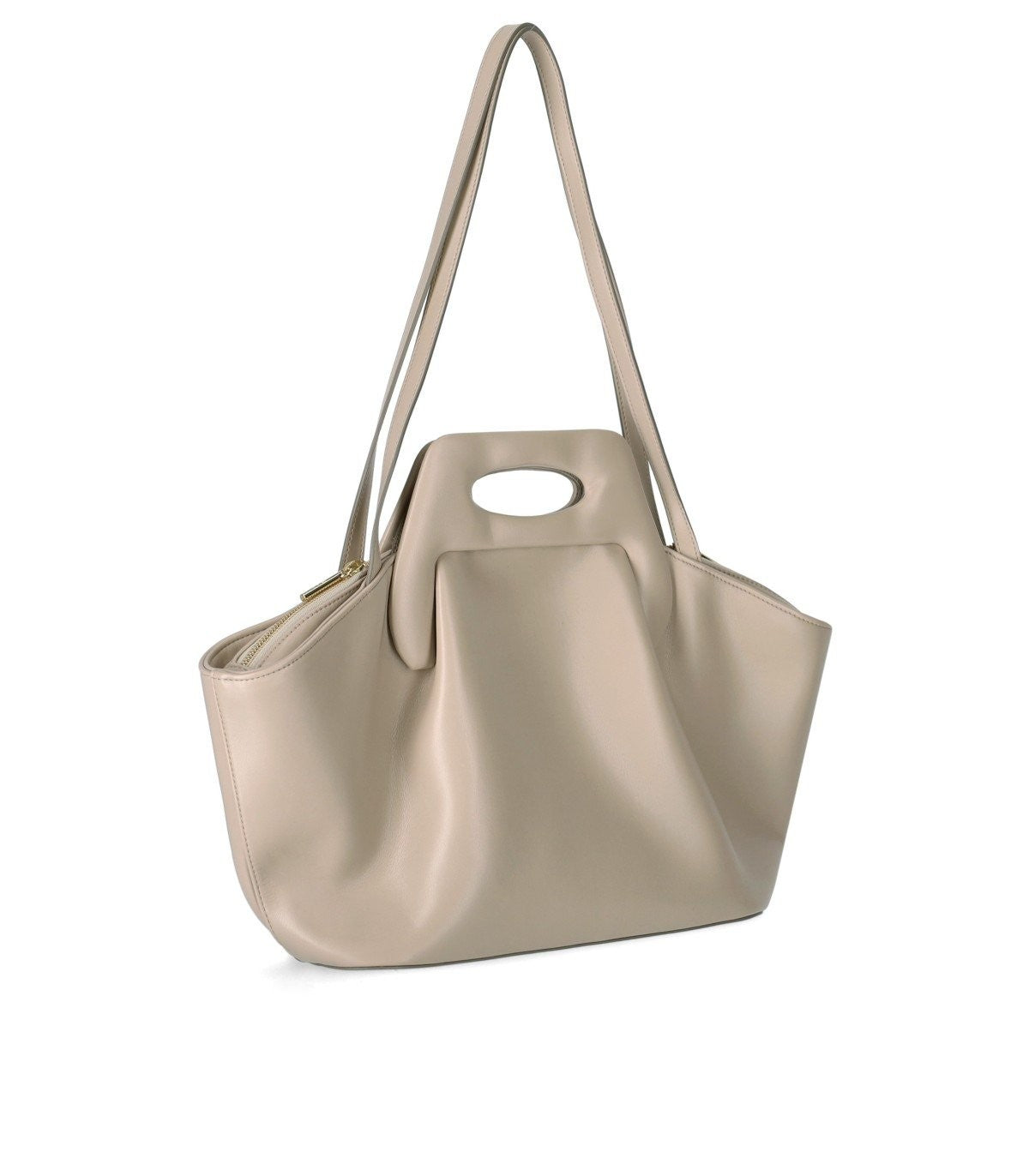 DHEA -Einkaufstasche von Themoiré aus beige veganem Leder. Innentasche, Reißverschluss und magnetischer Griff. Abmessungen 50x32x11 cm.