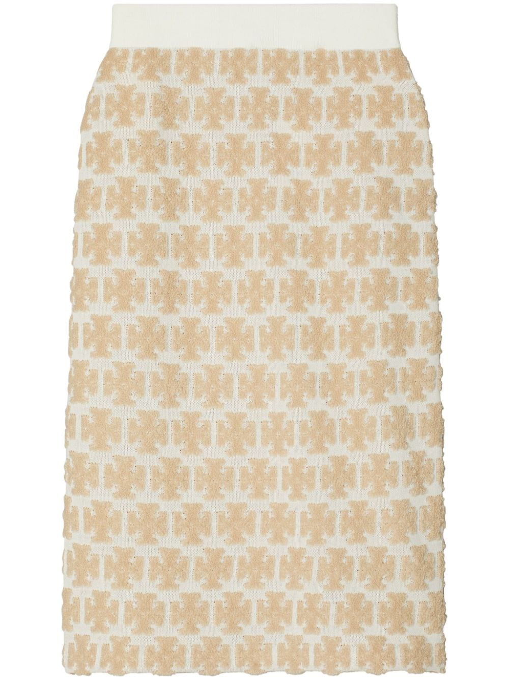 Sand Beige/Cloud White Bouclé Construction Signature Doppel-T-Motiv hoch taillierter elastischer Bund mit mittlerer Länge