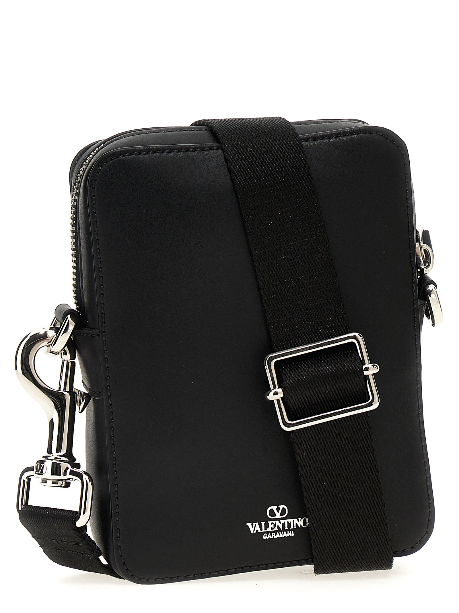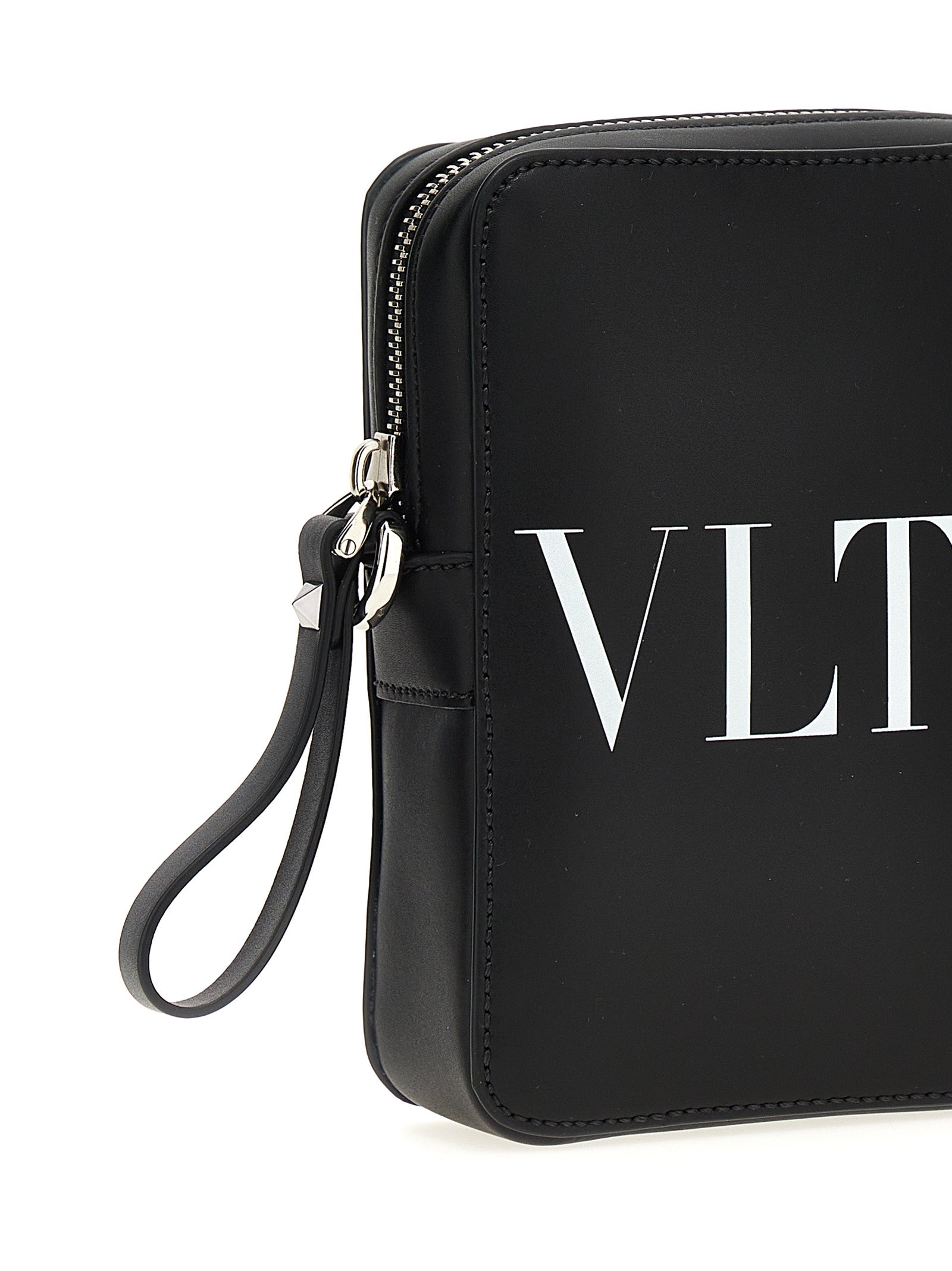 Leder -Schultergurt mit 'Vltn' Logo -Druck, Reißverschluss, verstellbarer Schultergurt.