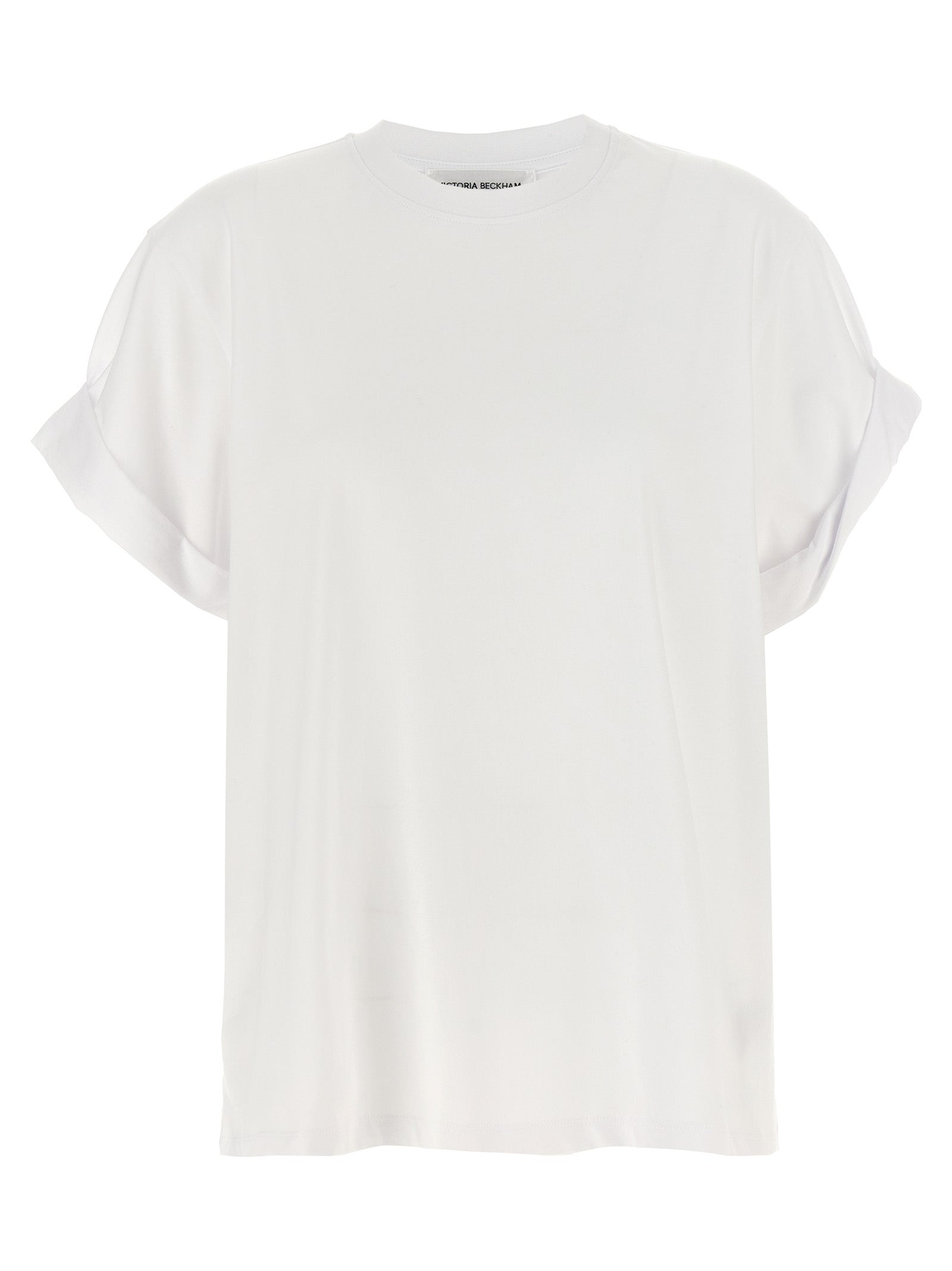 Baumwoll-T-Shirt mit Mini-Logo-Stickerei auf dem Rücken, Crew-Hals, kurze gedrehte Ärmel.
