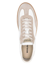 Le sneakers in pelle Woolrich offrono un look elegante e moderno. Con una chiusura frontale a lacci e una soletta in pelle con logo, queste scarpe vantano una suola in gomma resistente. L`applicazione del logo sulla linguetta aggiunge un tocco distintivo di stile.