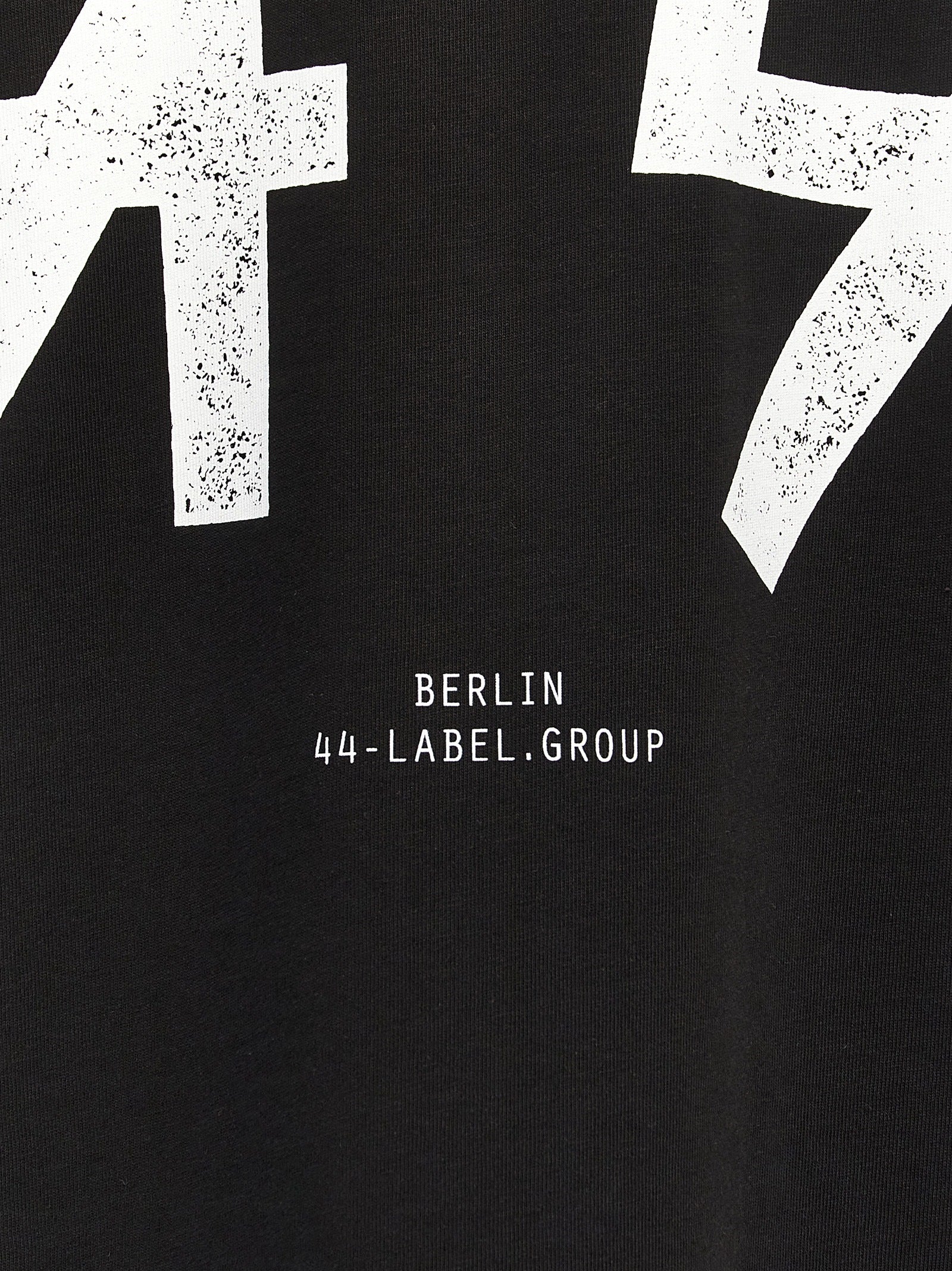 'Front Row' cotton crew neck t-shirt with front and back print, short sleeves.