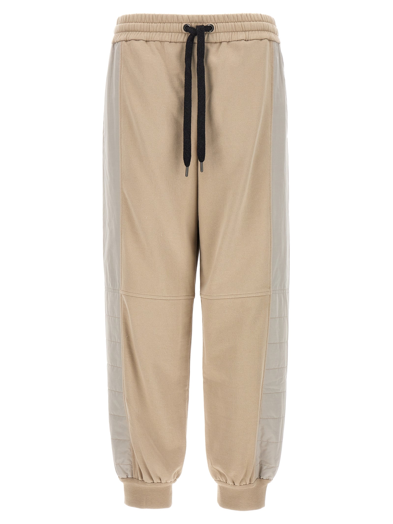 Cotton joggers with padded fabric insert, drawstring elastic waistband and ankle cuffs.
