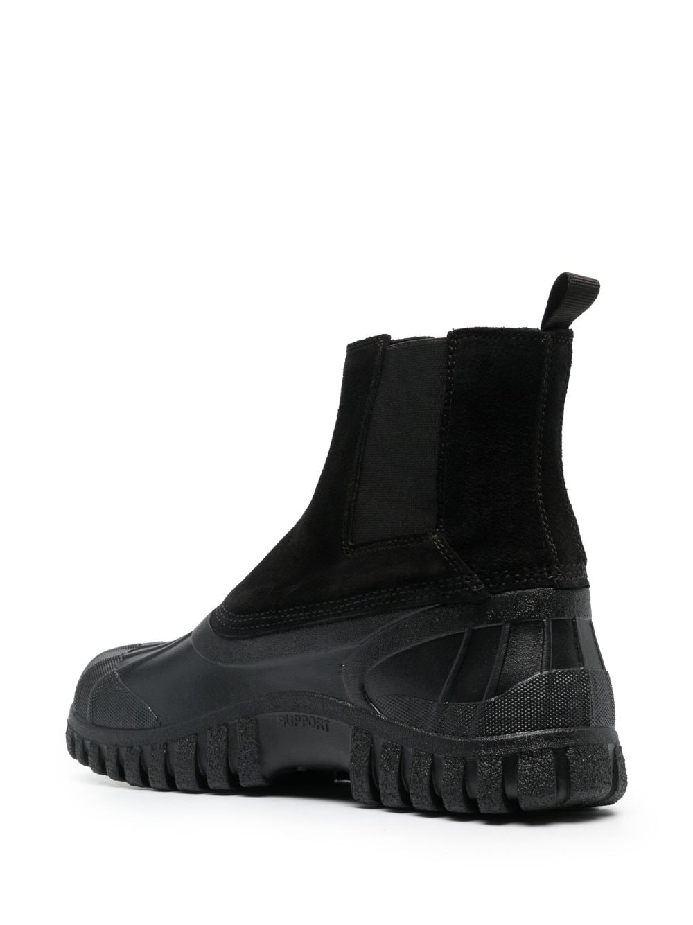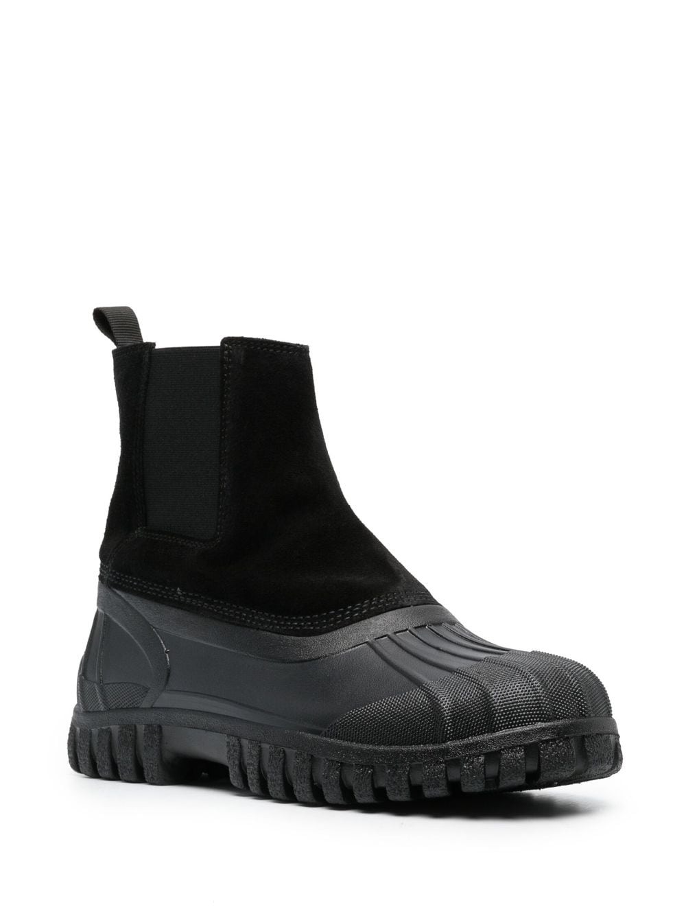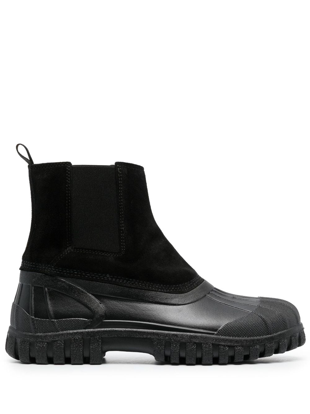 suede-panelled ankle boots from DIEMME featuring black, multi-panel design, suede panels, round toe, elasticated side panels, pull-tab at the heel, branded leather insole, rubber lug sole and slip-on style.