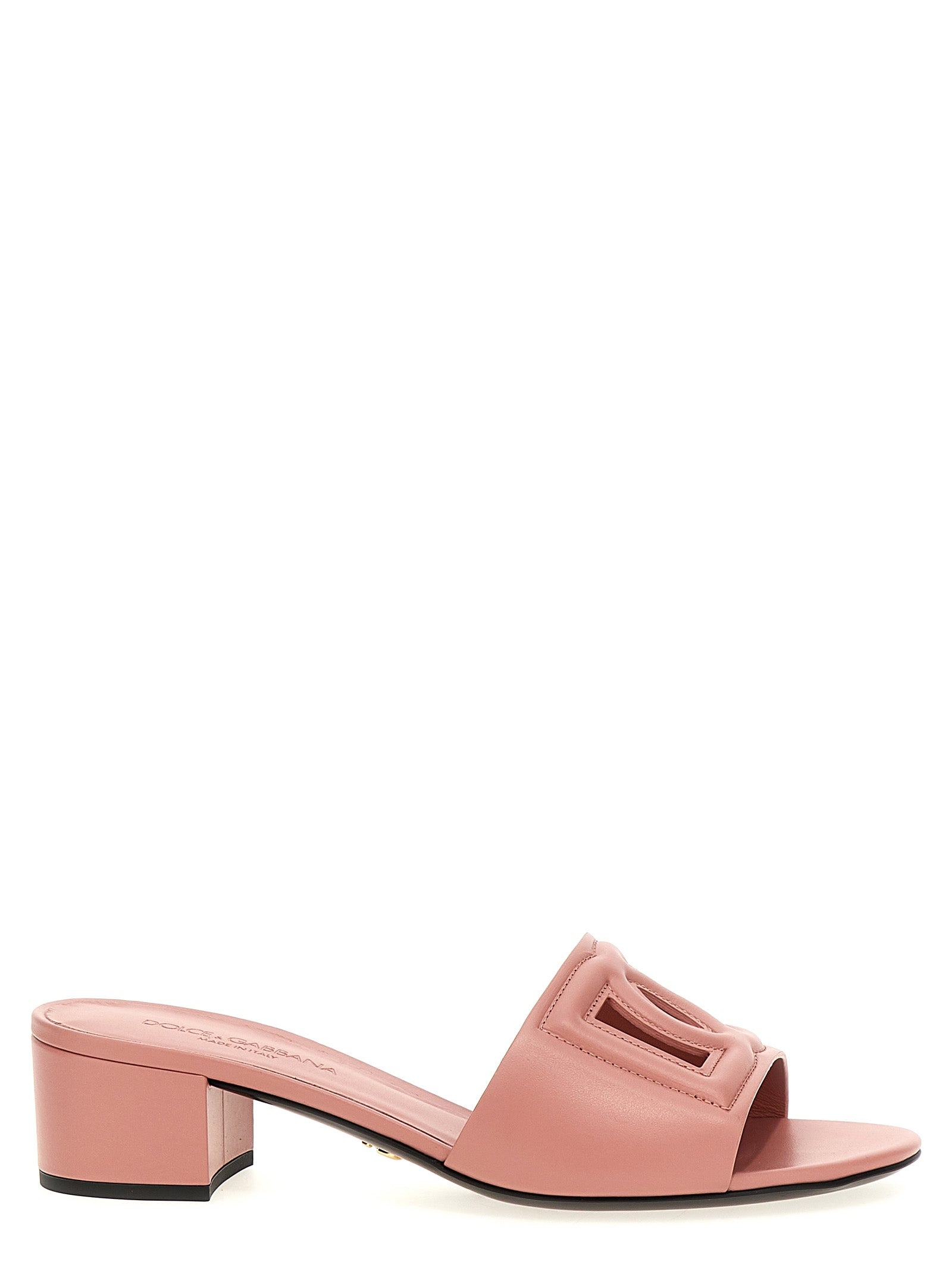 Calf leather mules with front cut-out 'DG' logo, heel and leather sole.