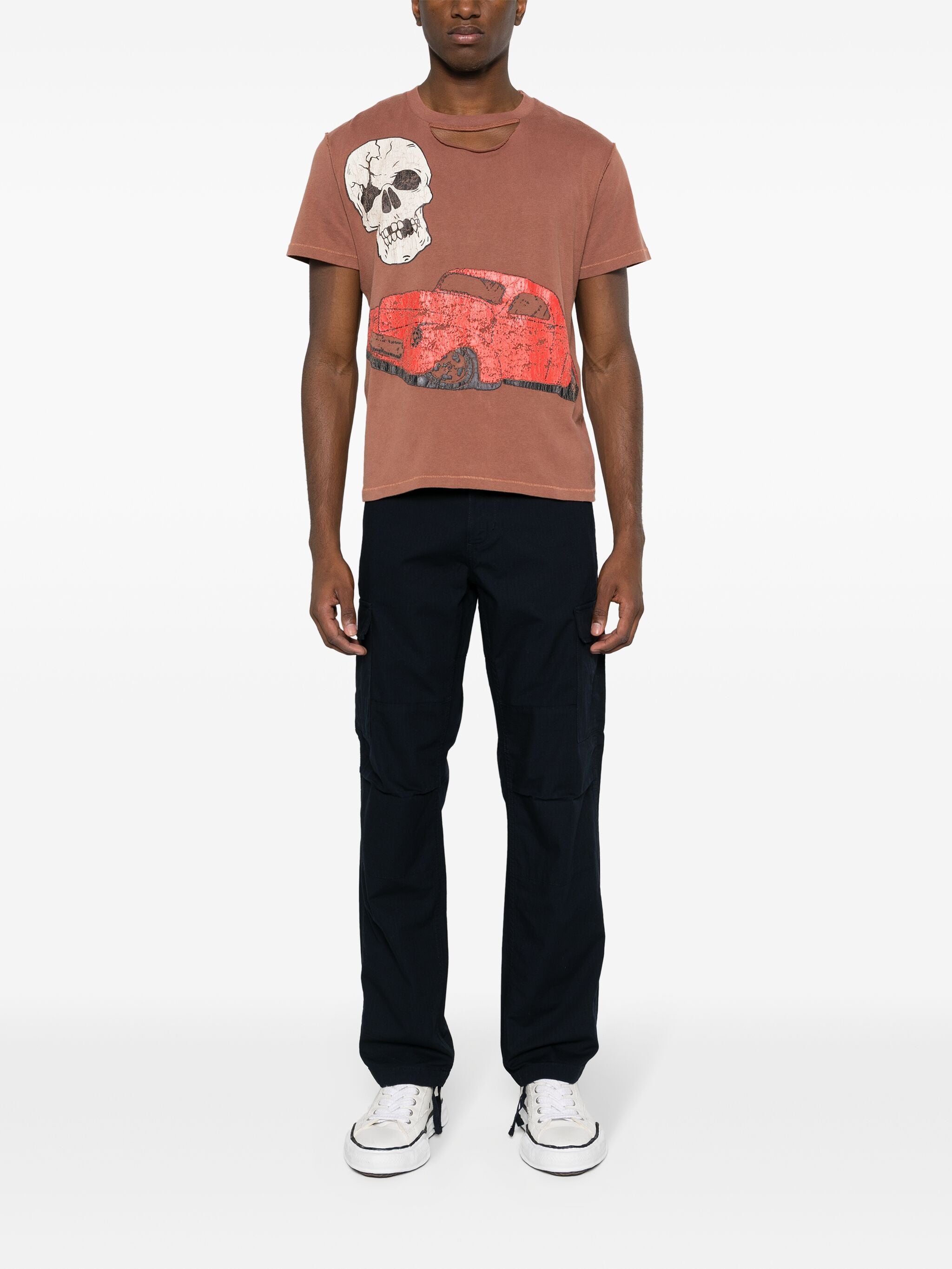 Erl Unisex Ripped Collar Skull Red Car Tshirt Knit