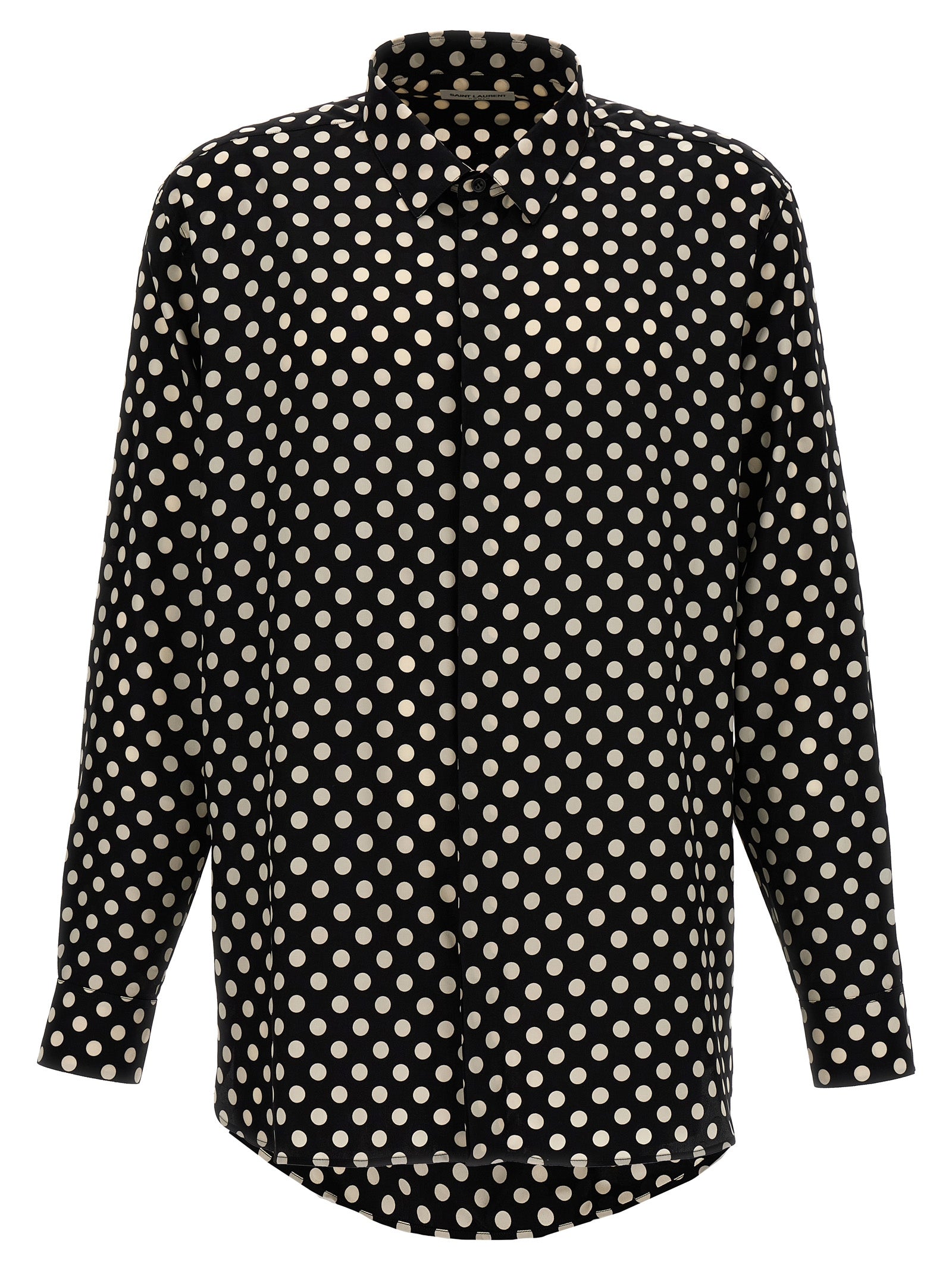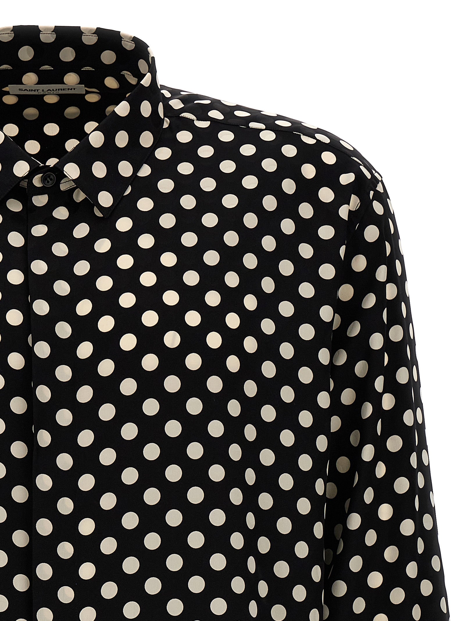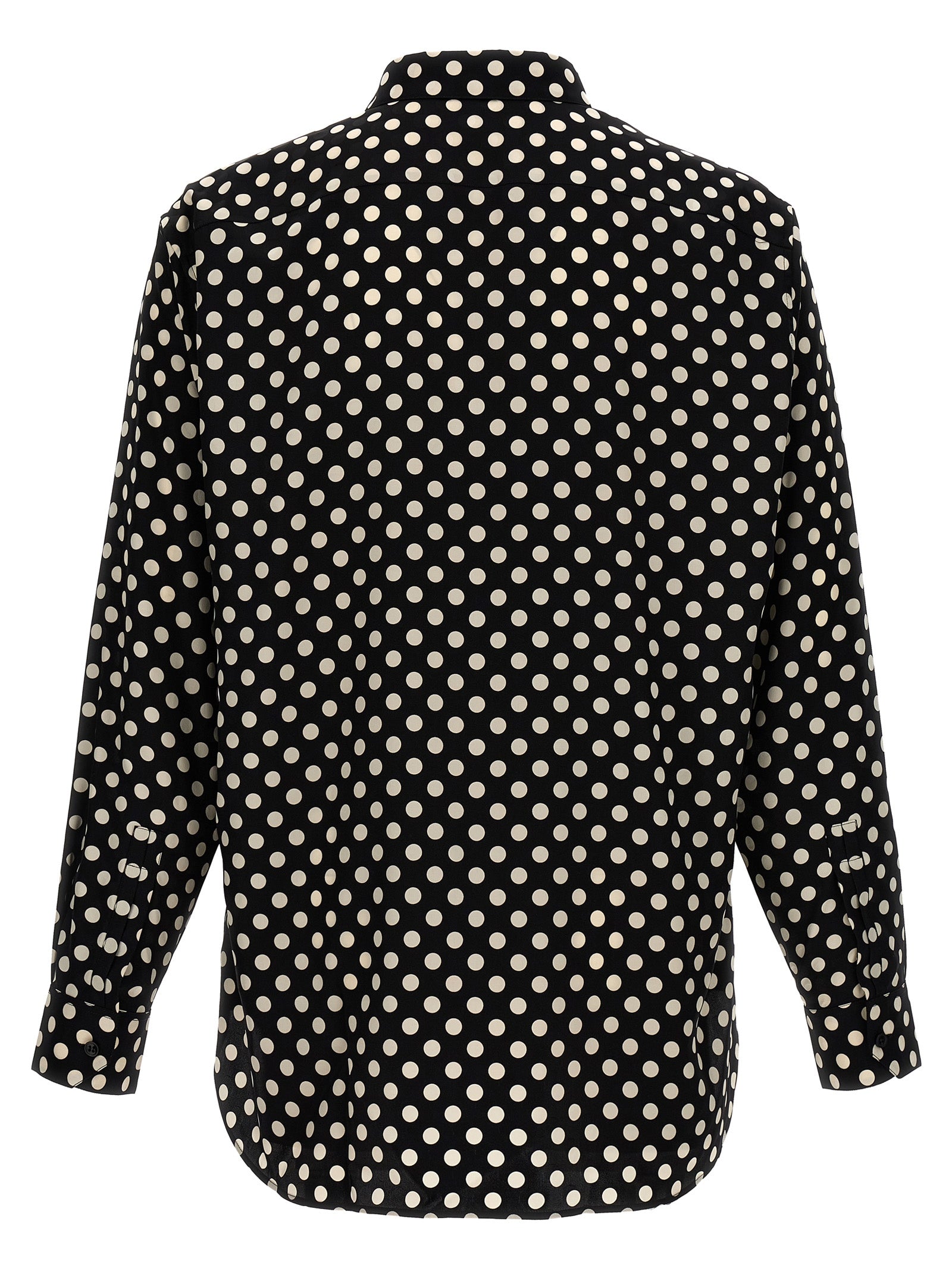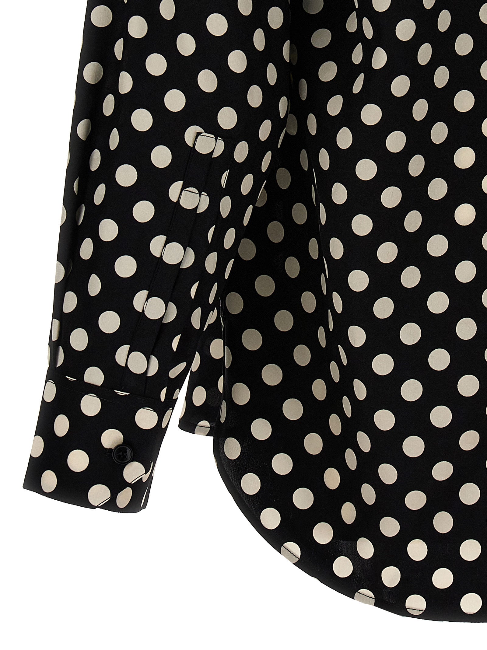 Polka dot print silk shirt with button closure, long cuffed sleeves.