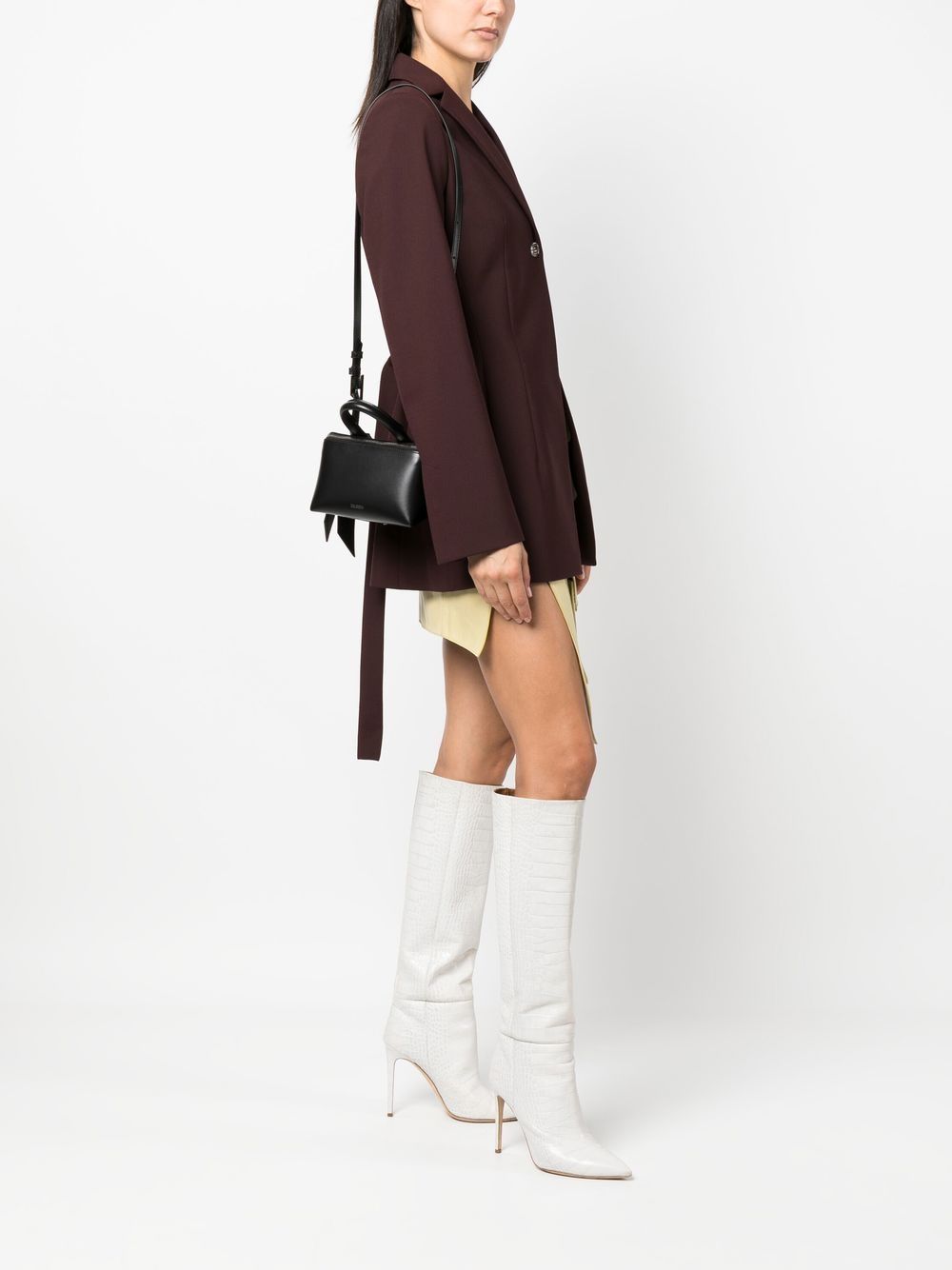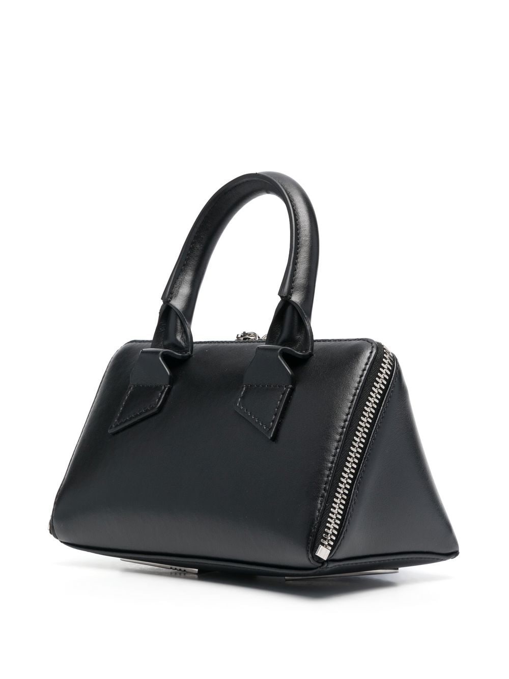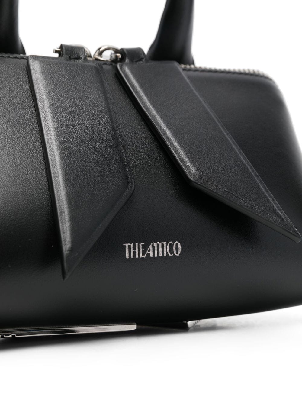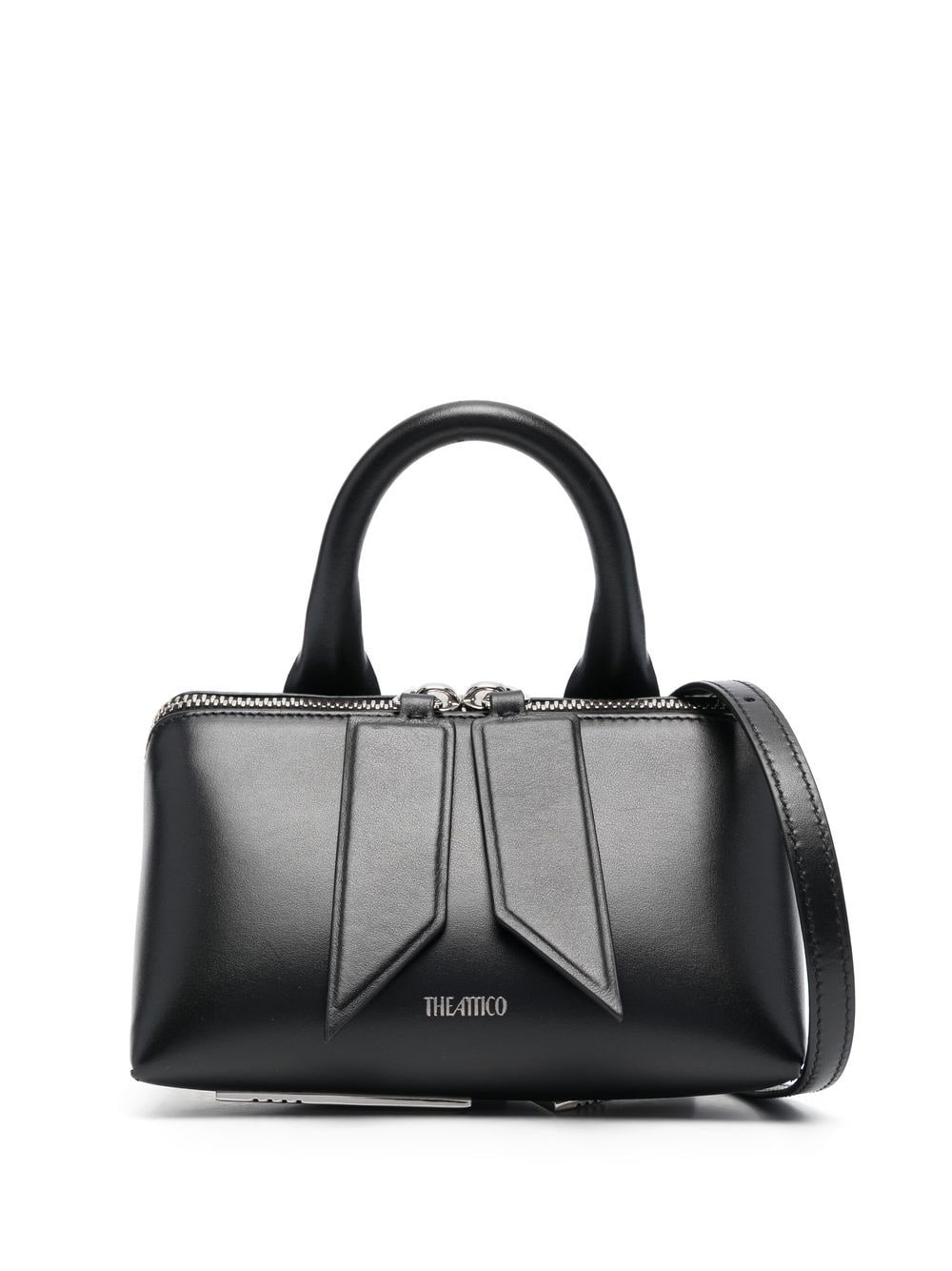 Friday top-handle tote bag from The Attico featuring black, calf leather, logo lettering, two-way zip fastening, adjustable detachable shoulder strap and single circular top handle.