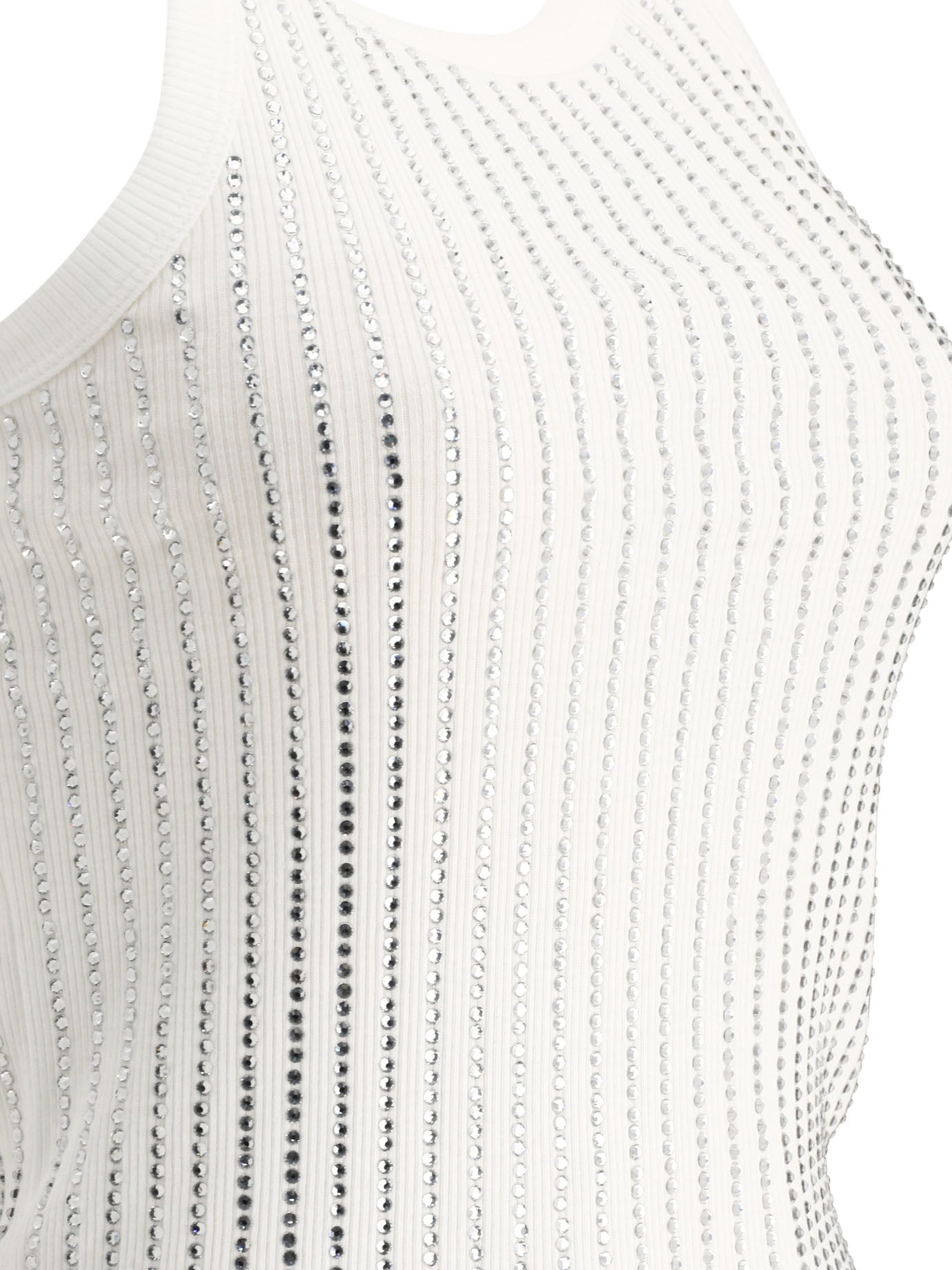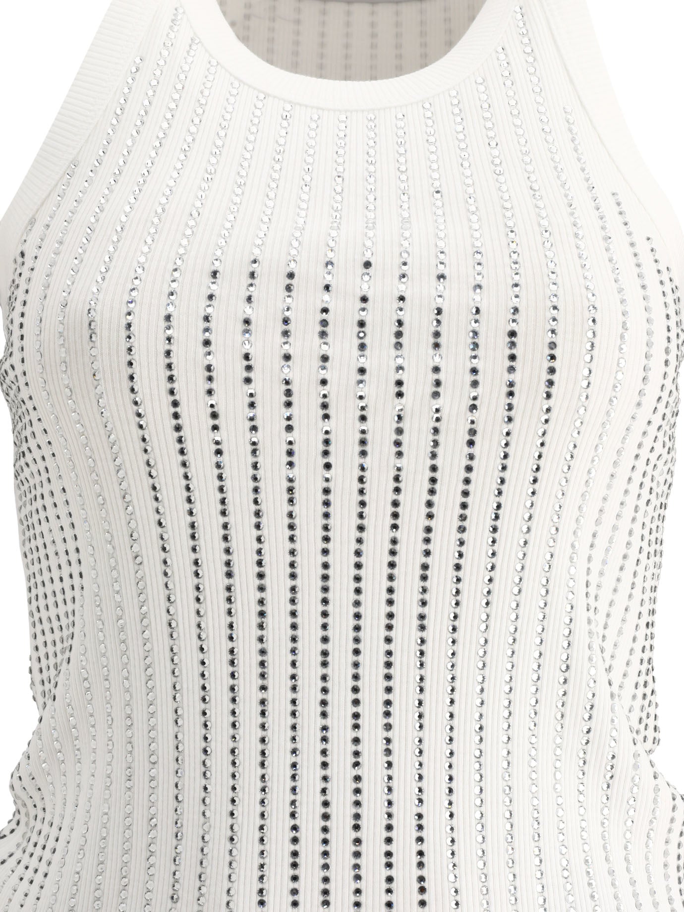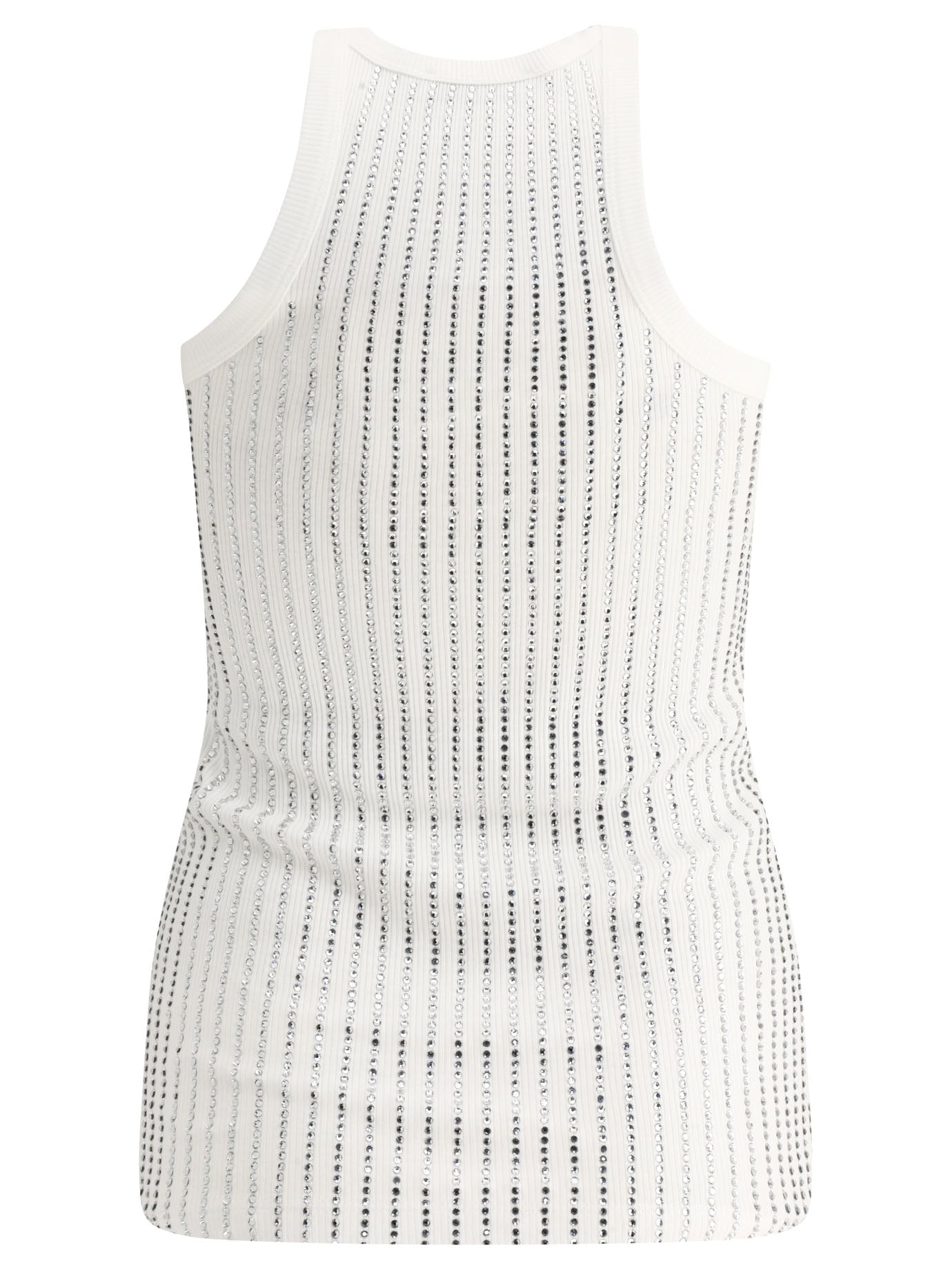 The rhinestone appliqué tank top from The Attico is an elegant and versatile piece that will add a touch of sparkle to your wardrobe. Made with attention to detail, this tank top is perfect for those looking for a refined look without sacrificing comfort, ideal for any occasion, from glamorous evenings to casual yet chic days.||