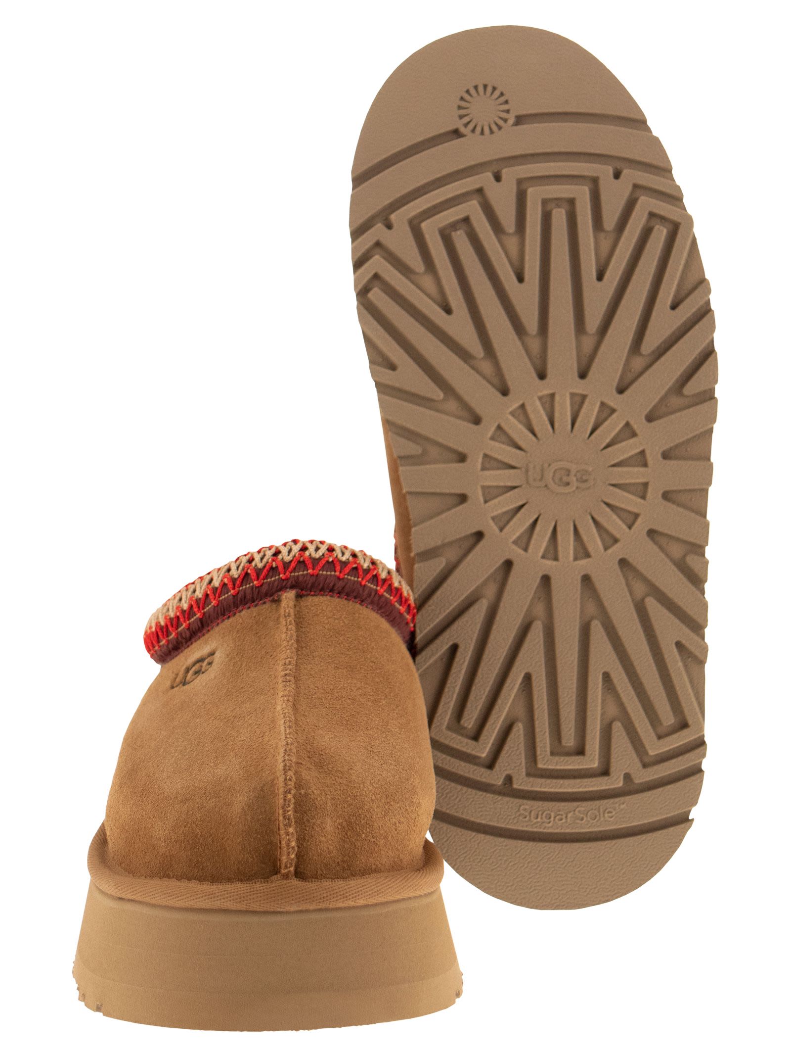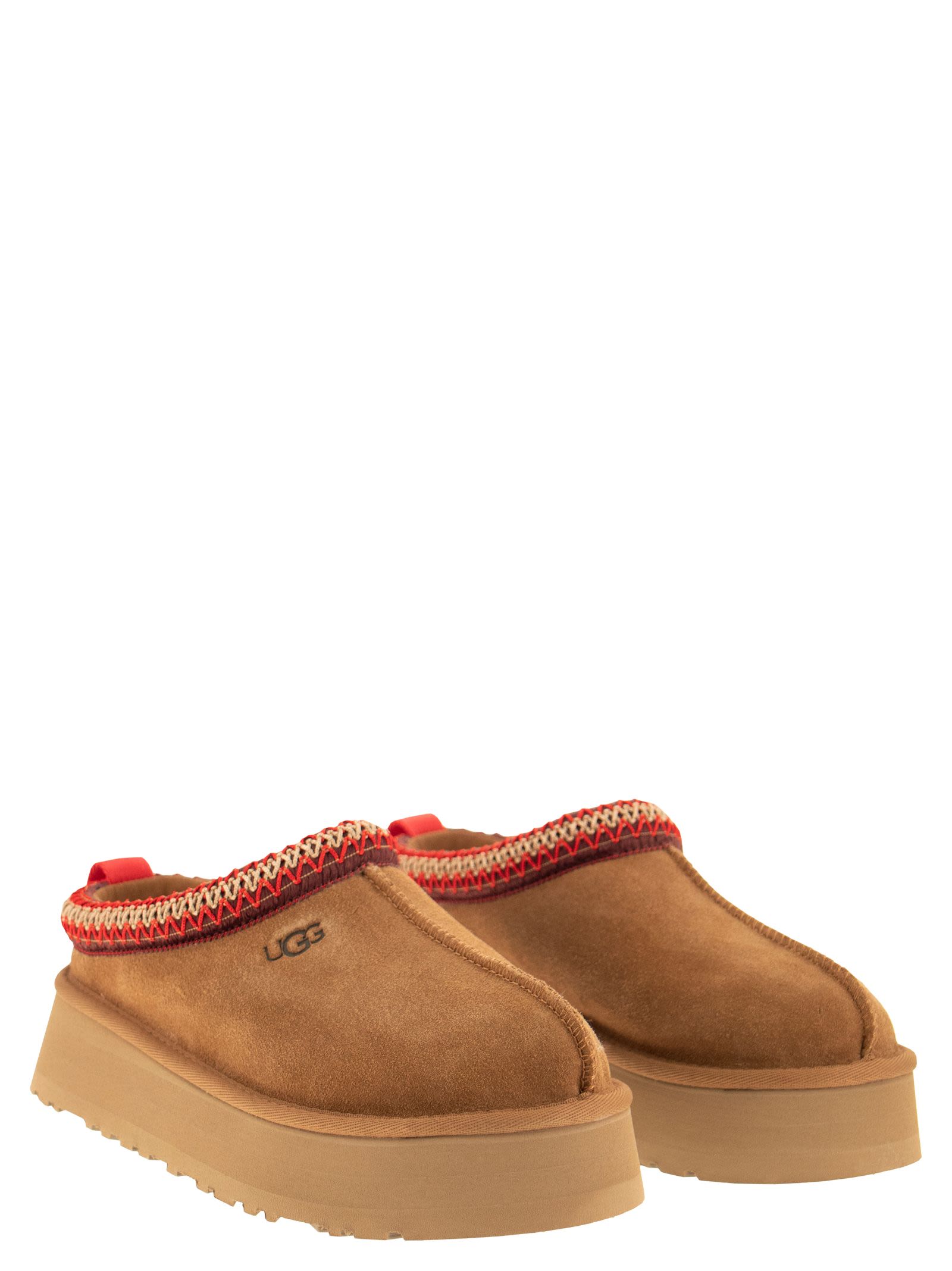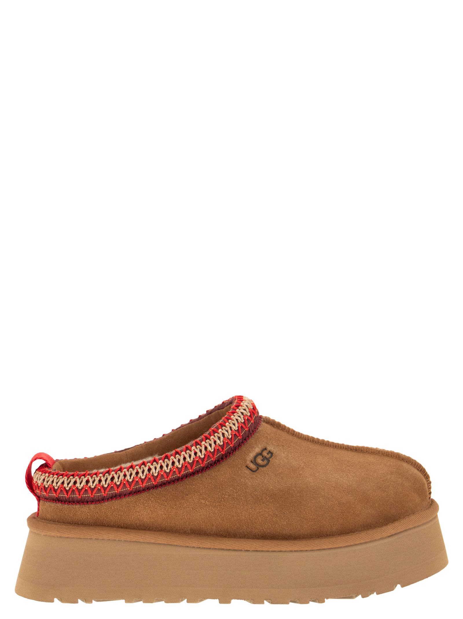 A maximalist interpretation of the timeless Tazz model, it revisits its familiar silhouette with a 3.8 cm platform sole for superior cushioning and style. Crafted from the same premium suede as the original, it is lined with the classic UGGplush™ wool blend for a slipper-like comfort feeling in and out of the house. - Suede upper - EVA sole - Fabric edging, made from recycled polyester fibres - Hot-embossed UGG® logo DESIGNER ID: 1122553 CHE