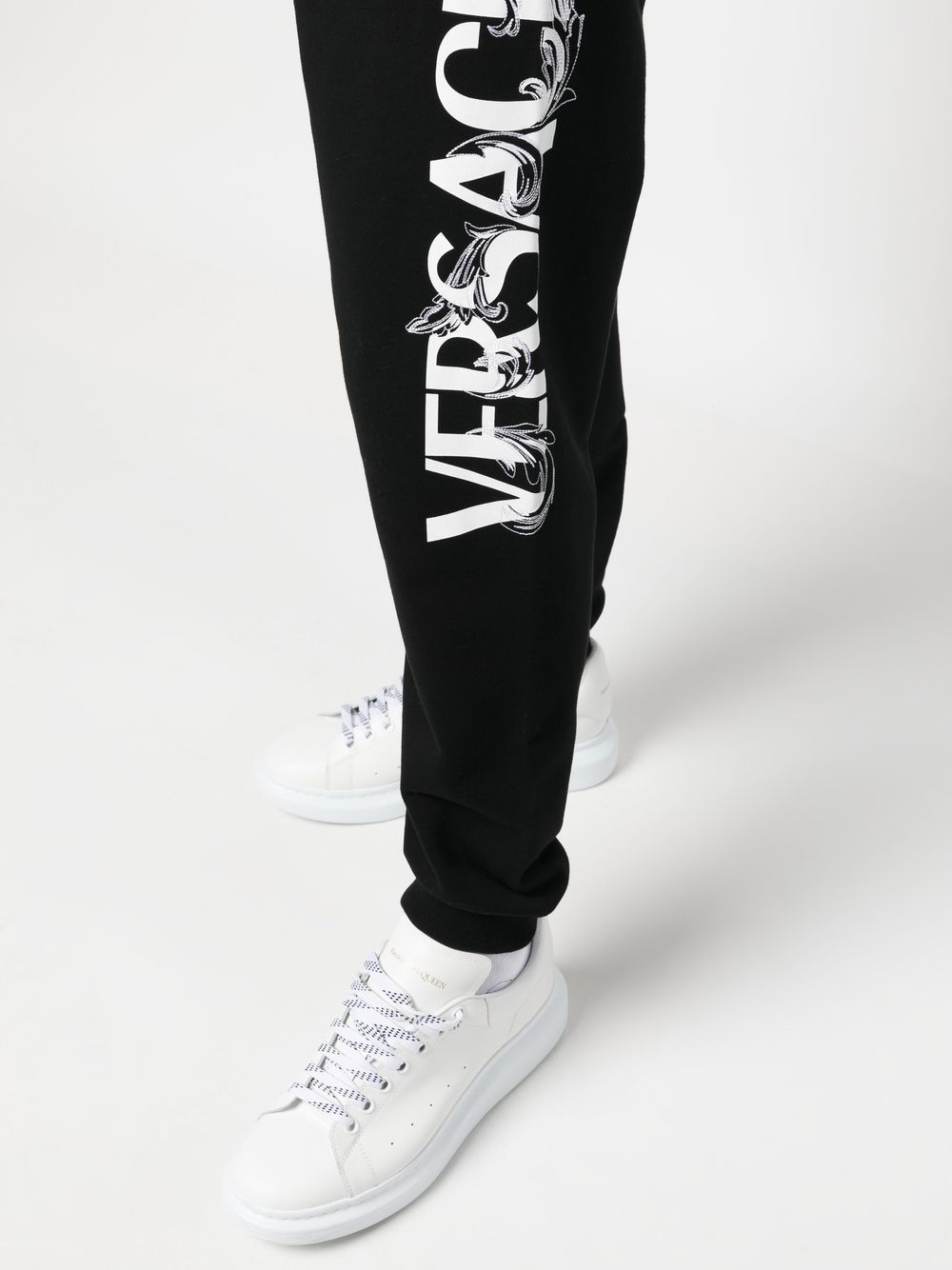 Versace sports trousers made of jersey with logo on one leg with acanthus leaves on the letters.