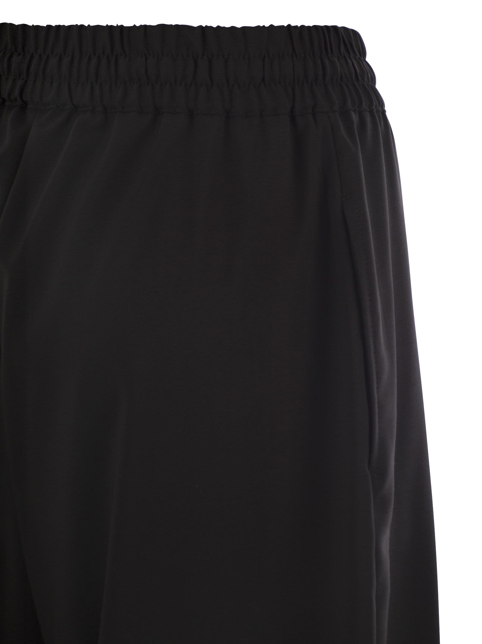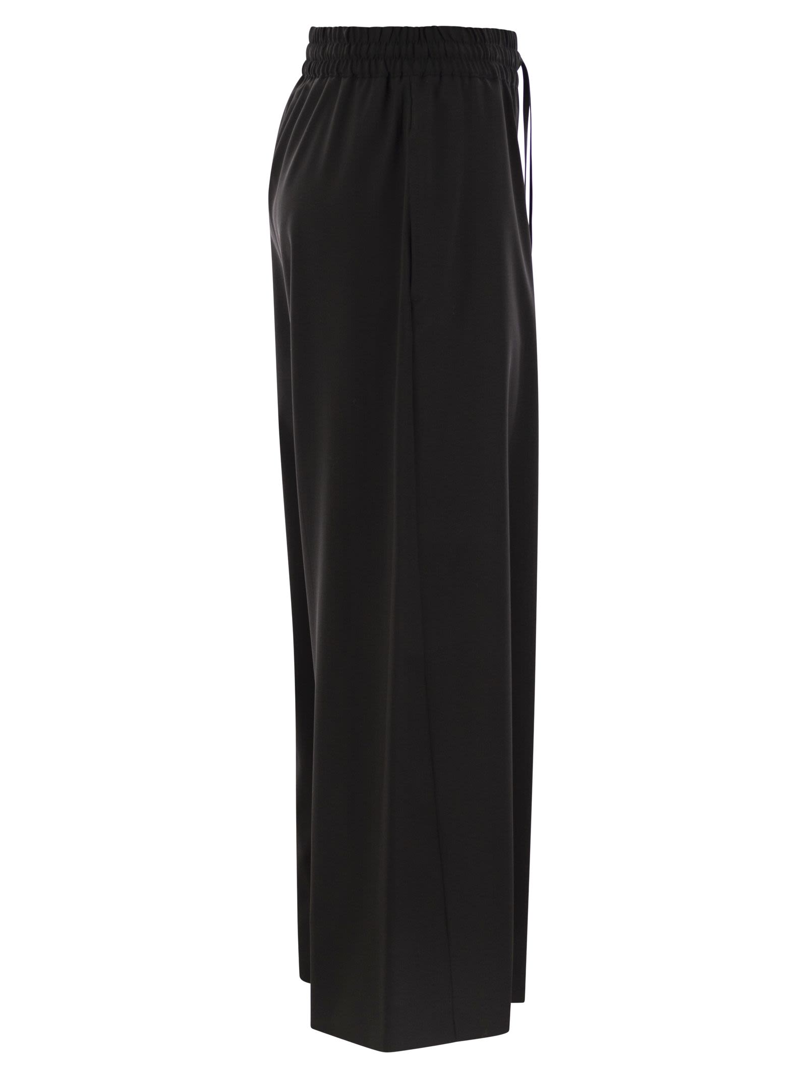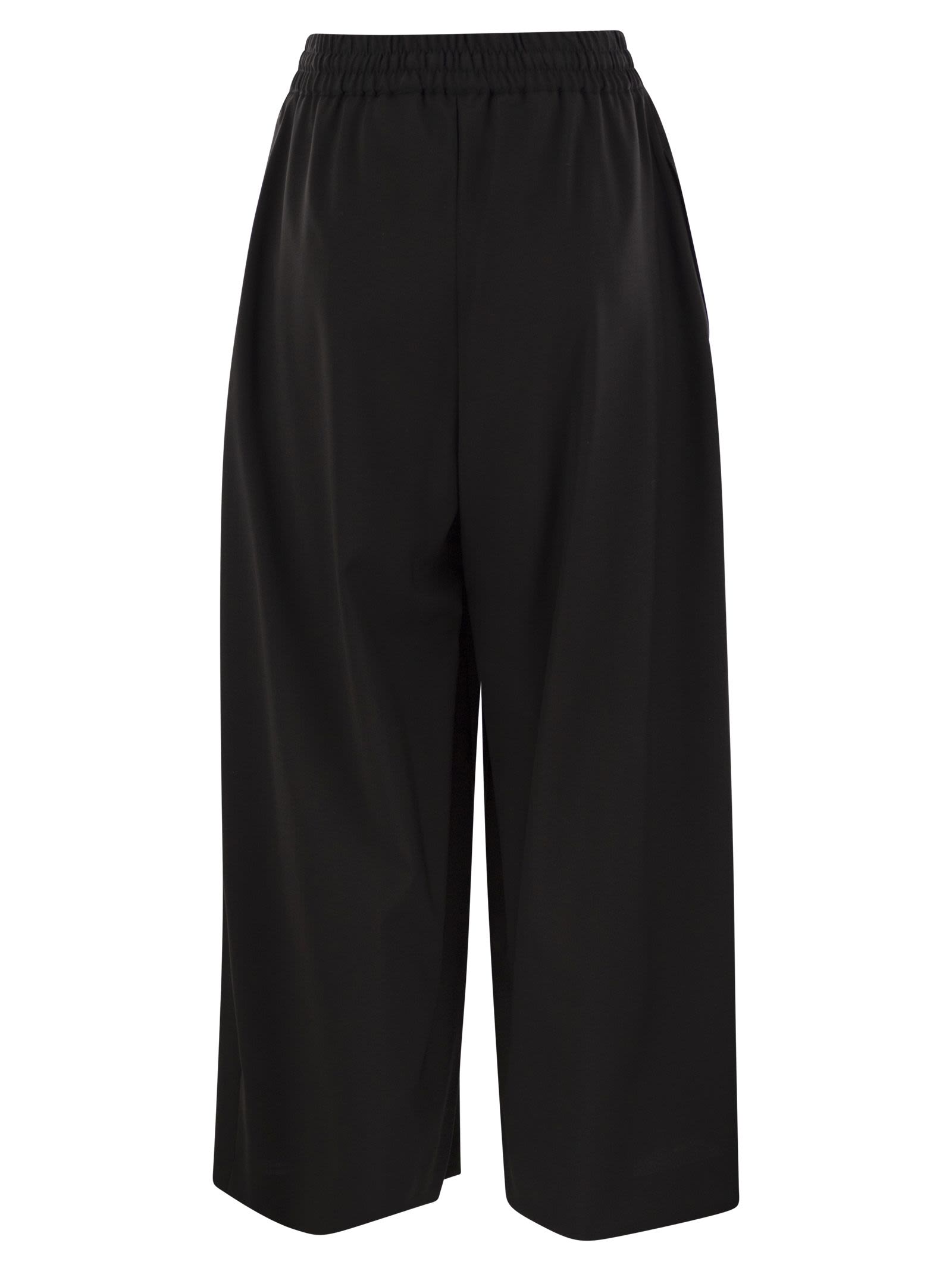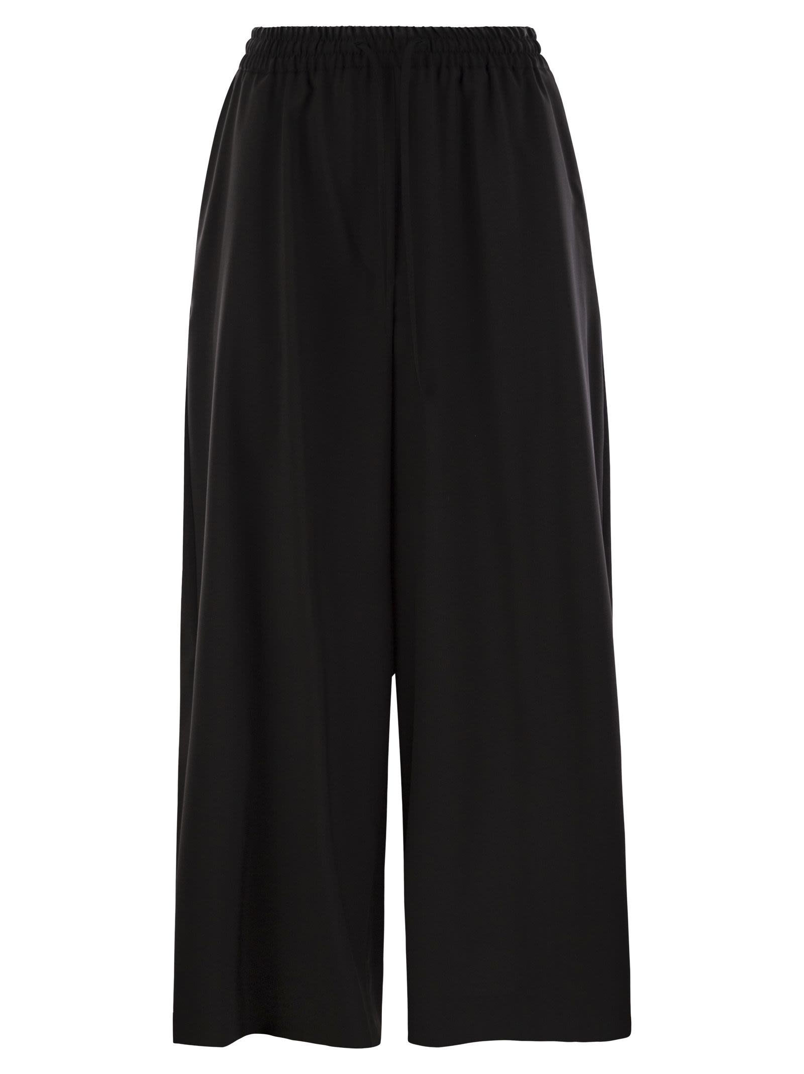 Loose-fitting pants, slightly flared at the bottom, made of pure stretch wool knit. Model has a flowing silhouette with a wide leg, an elasticized pattern at the waist and pockets inserted in the hips. - Wide leg - Ankle length - Elasticated waistband - Drawstring DESIGNER ID: 2425136071600 002