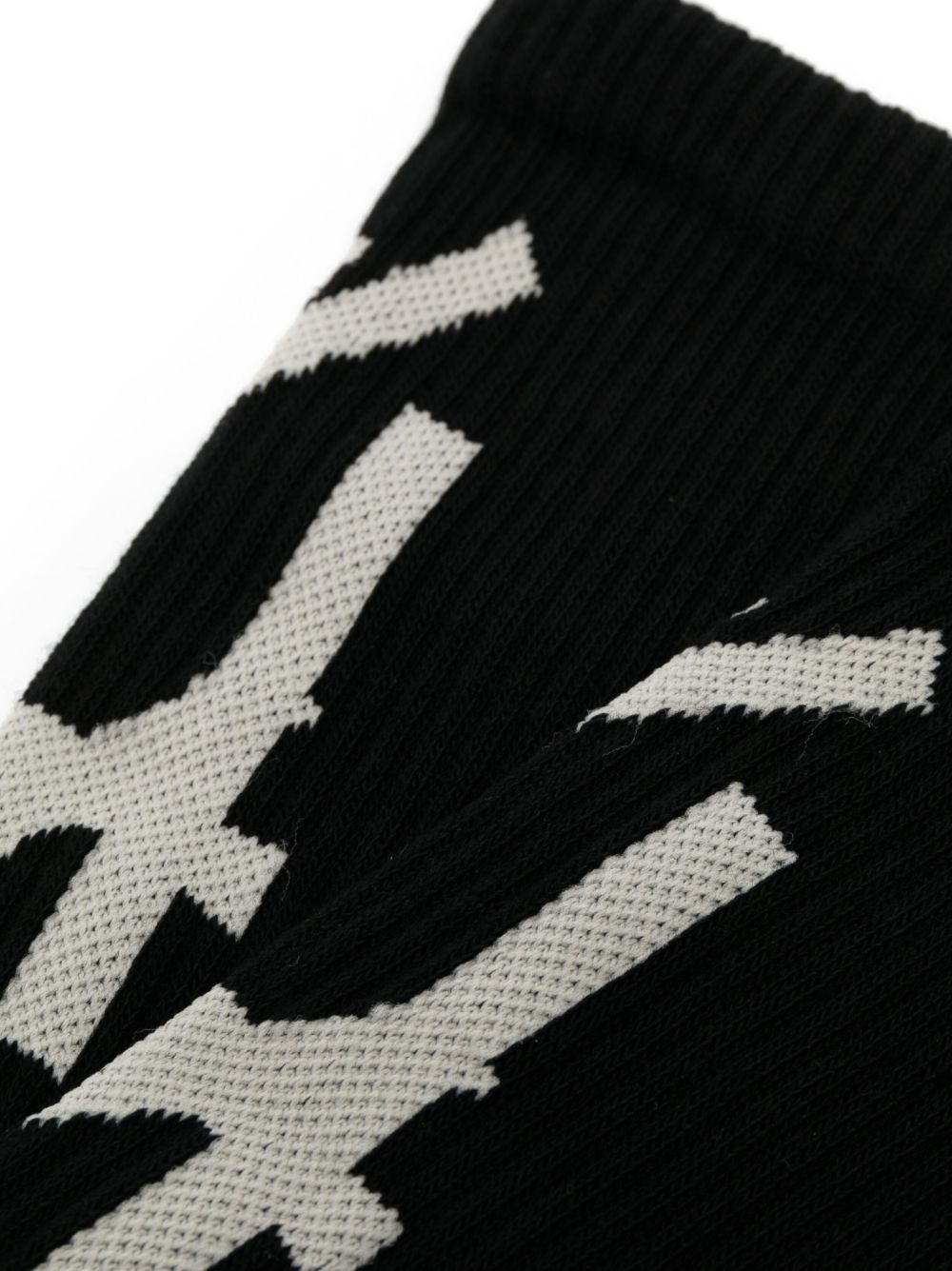 Black/white, ribbed workmanship and inlaid logo. Stockings and socks must be returned in their original sealed packaging.