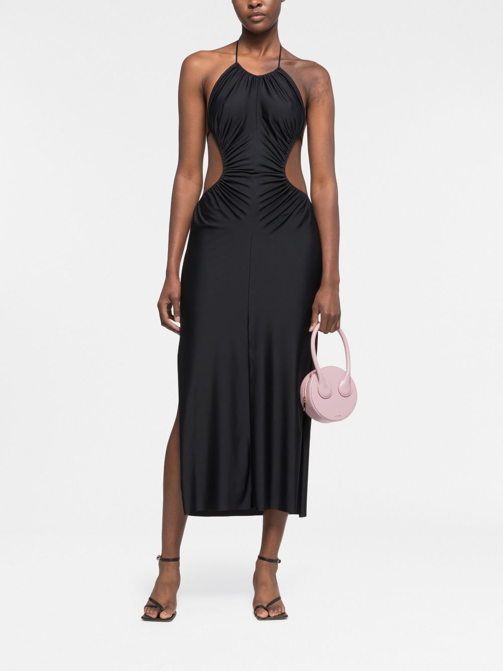 x Ester Manas Round Cake tote bag from AZ FACTORY featuring light pink, calf leather, logo stamp to the front, smooth grain, circular body, single circular top handle, top zip fastening, main compartment and detachable shoulder strap.