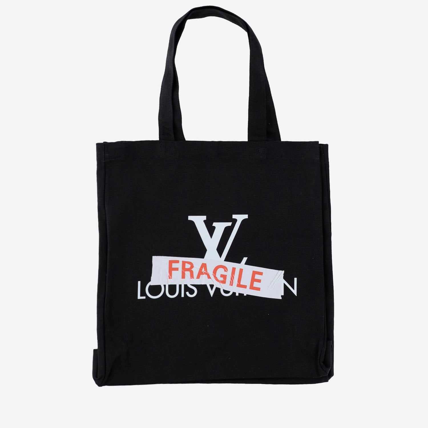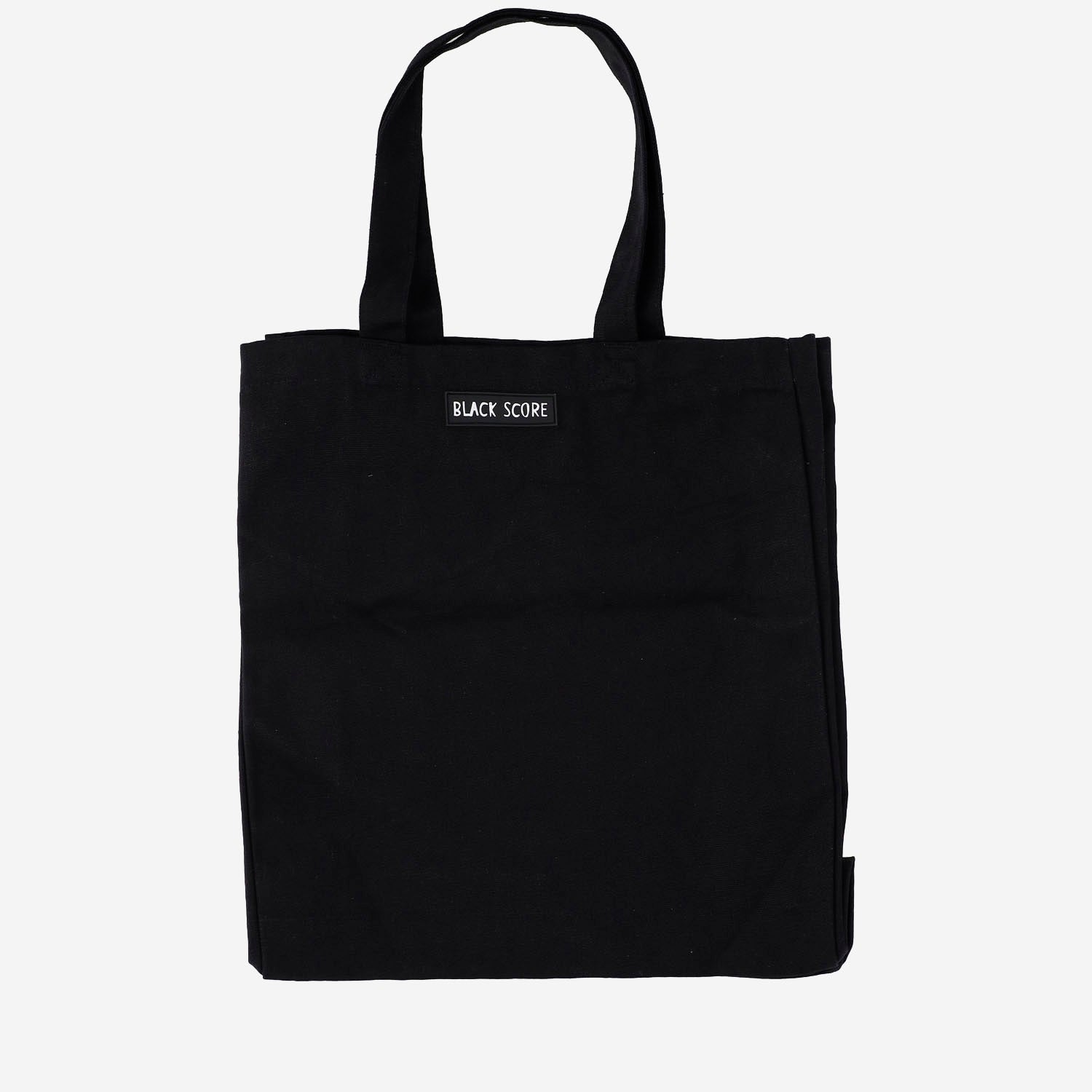 Black Score Cotton Shopping Bag With Print