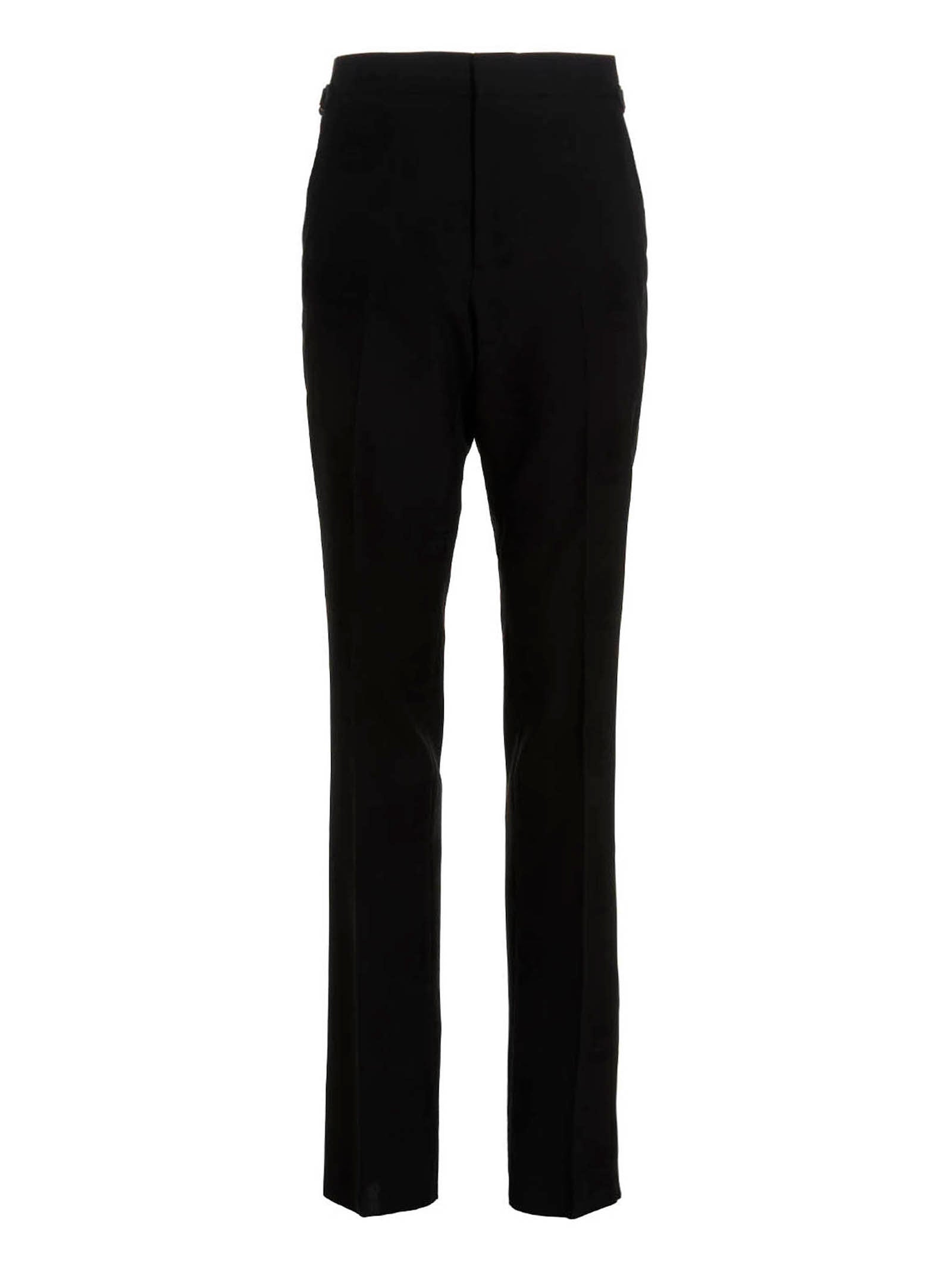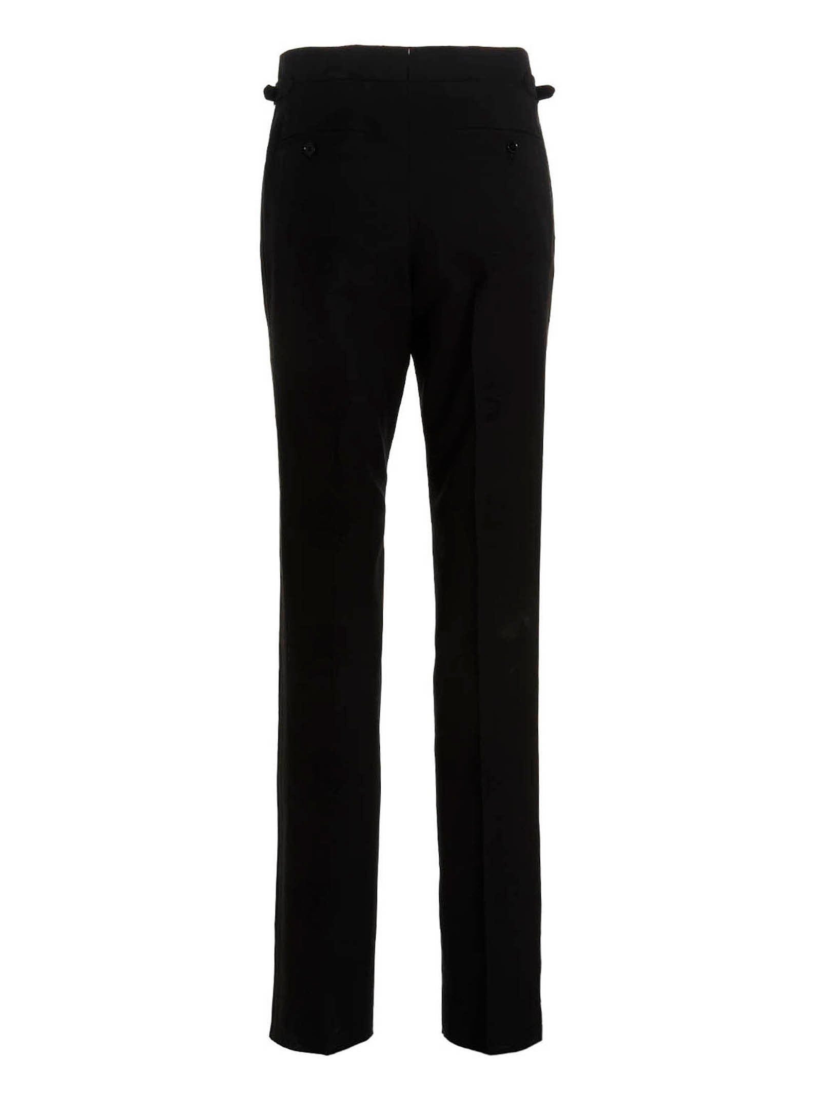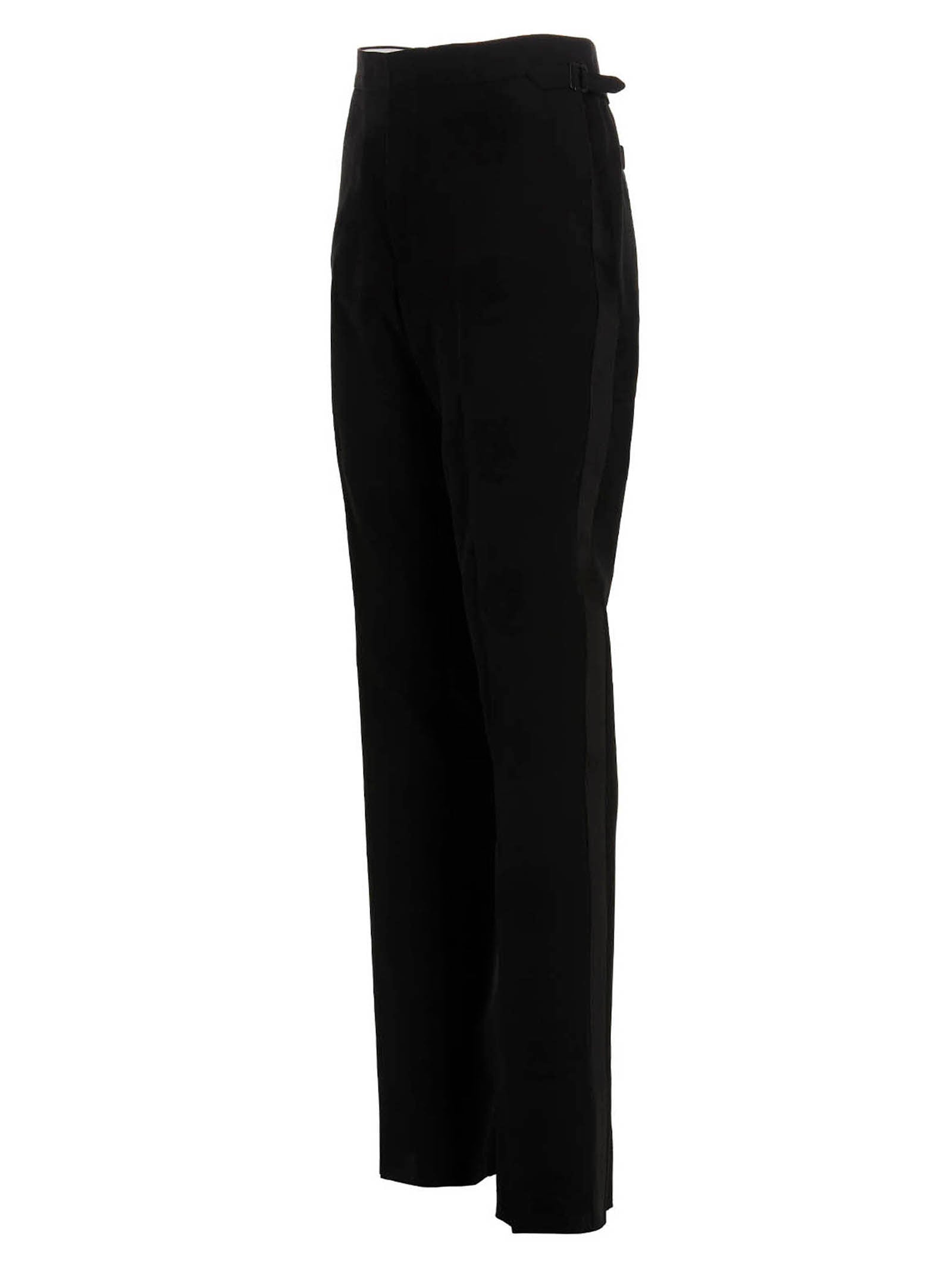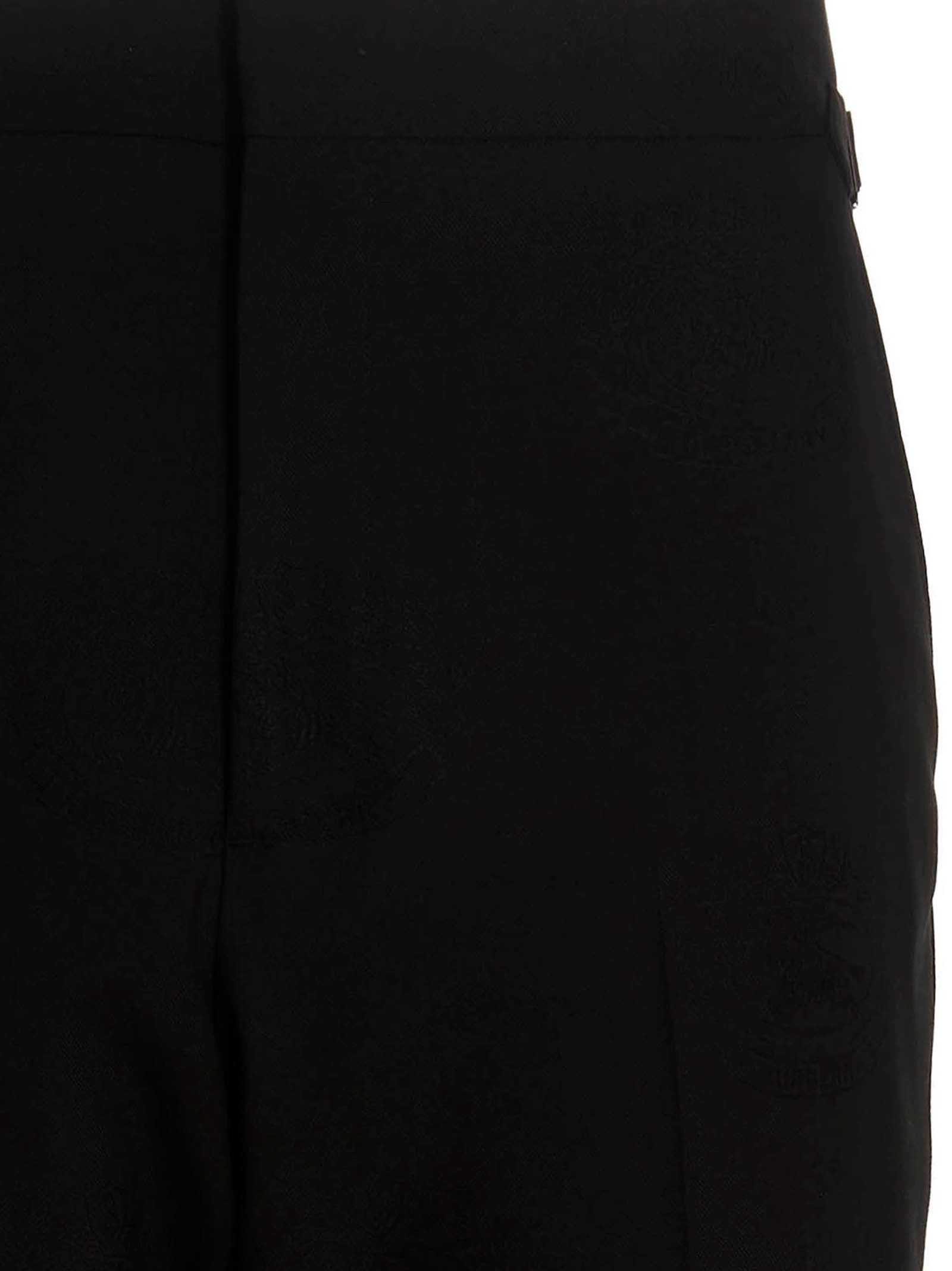 Cashmere wool and cotton pants with jacquard horse rider. Silk satin side bands detail.