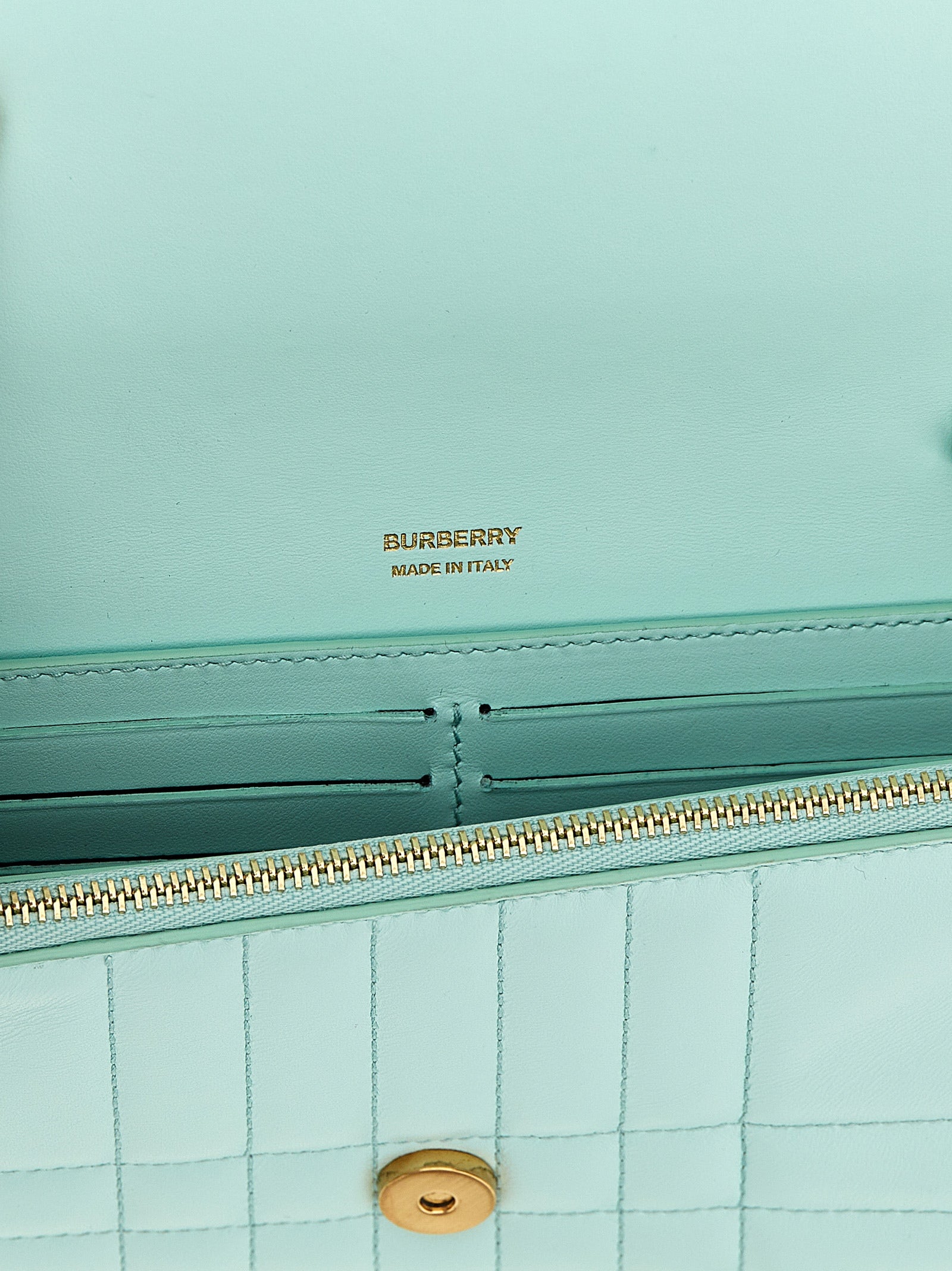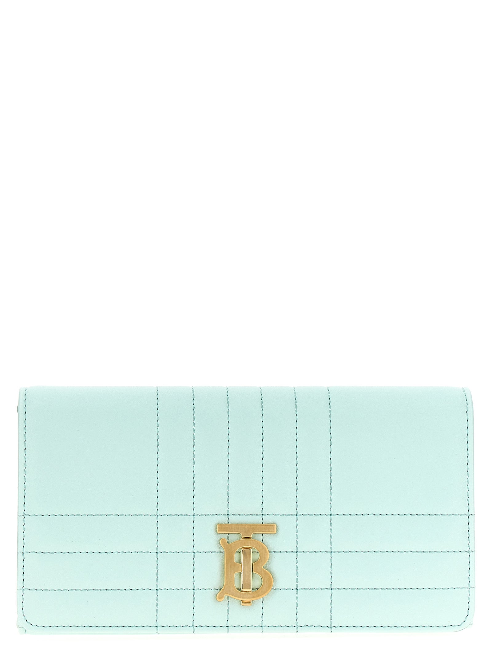 'Lola' quilted leather wallet on chain, magnetic flap closure, front logo detail, adjustable and removable shoulder strap.