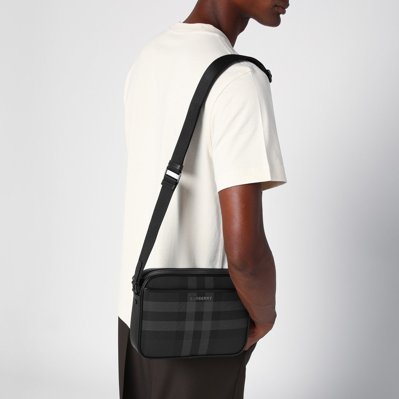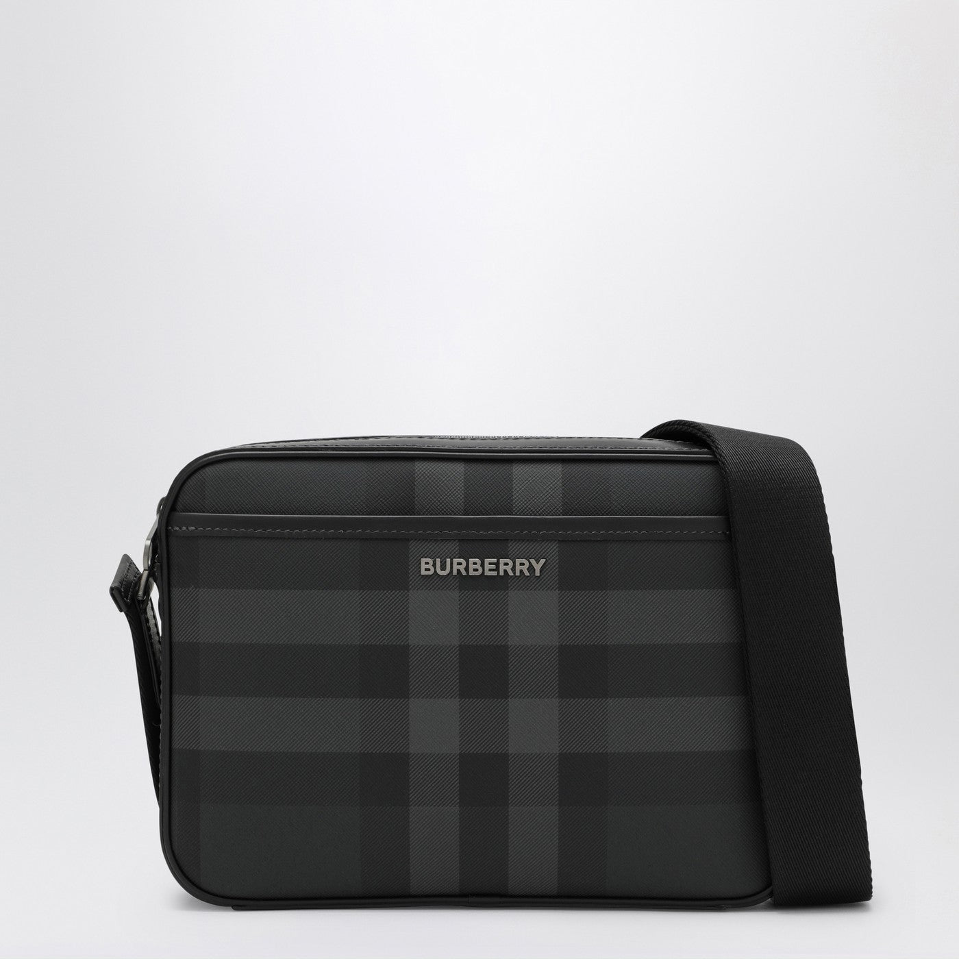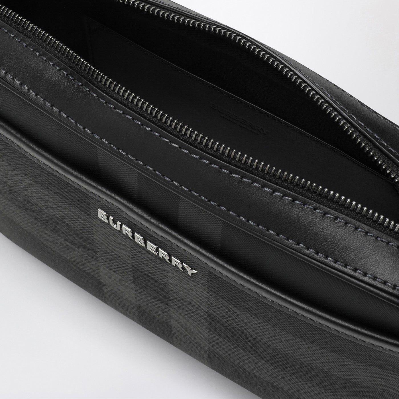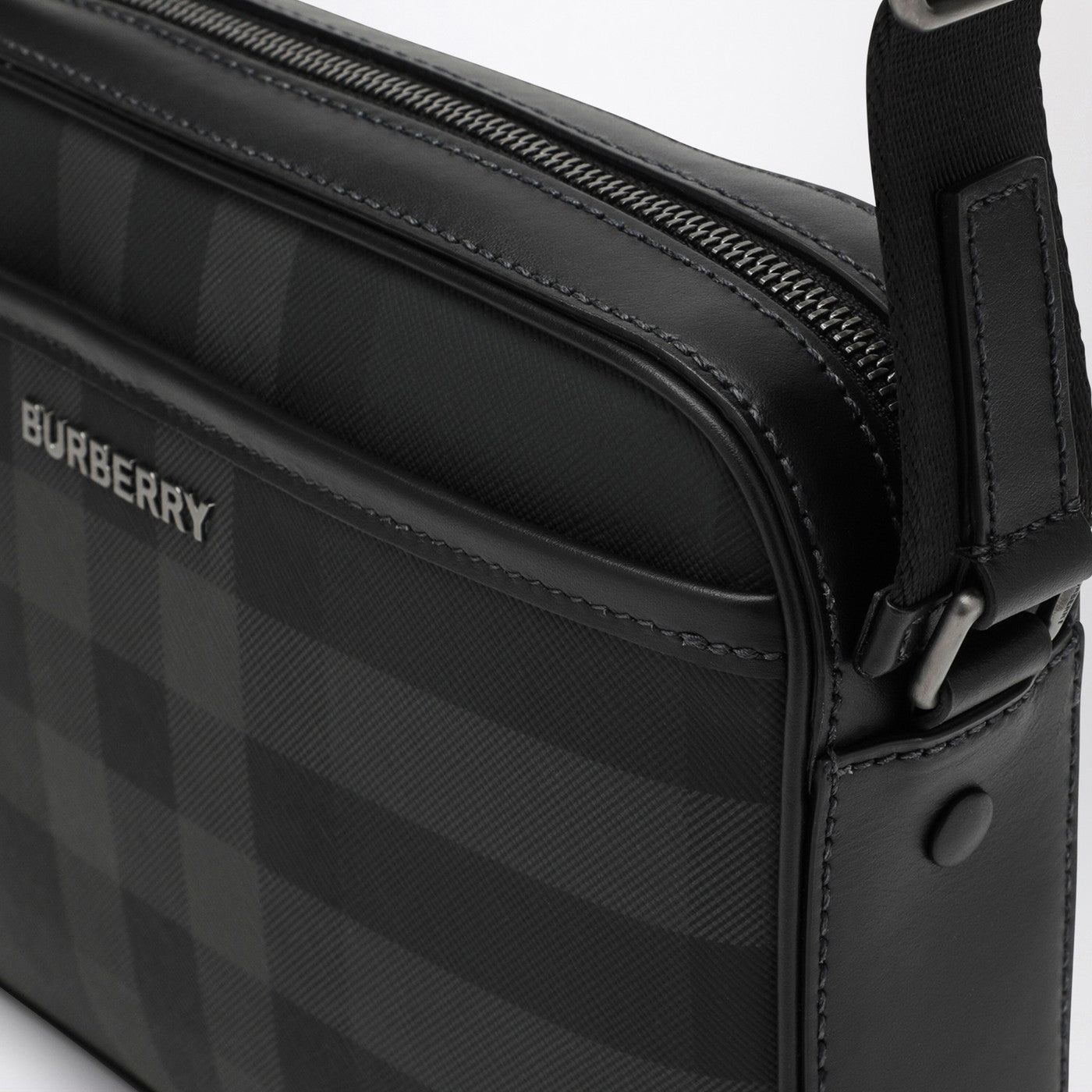 Messenger bag by Burberry in coated canvas with check pattern, featuring leather trim, zipped top closure, front flat pocket and adjustable drawstring.