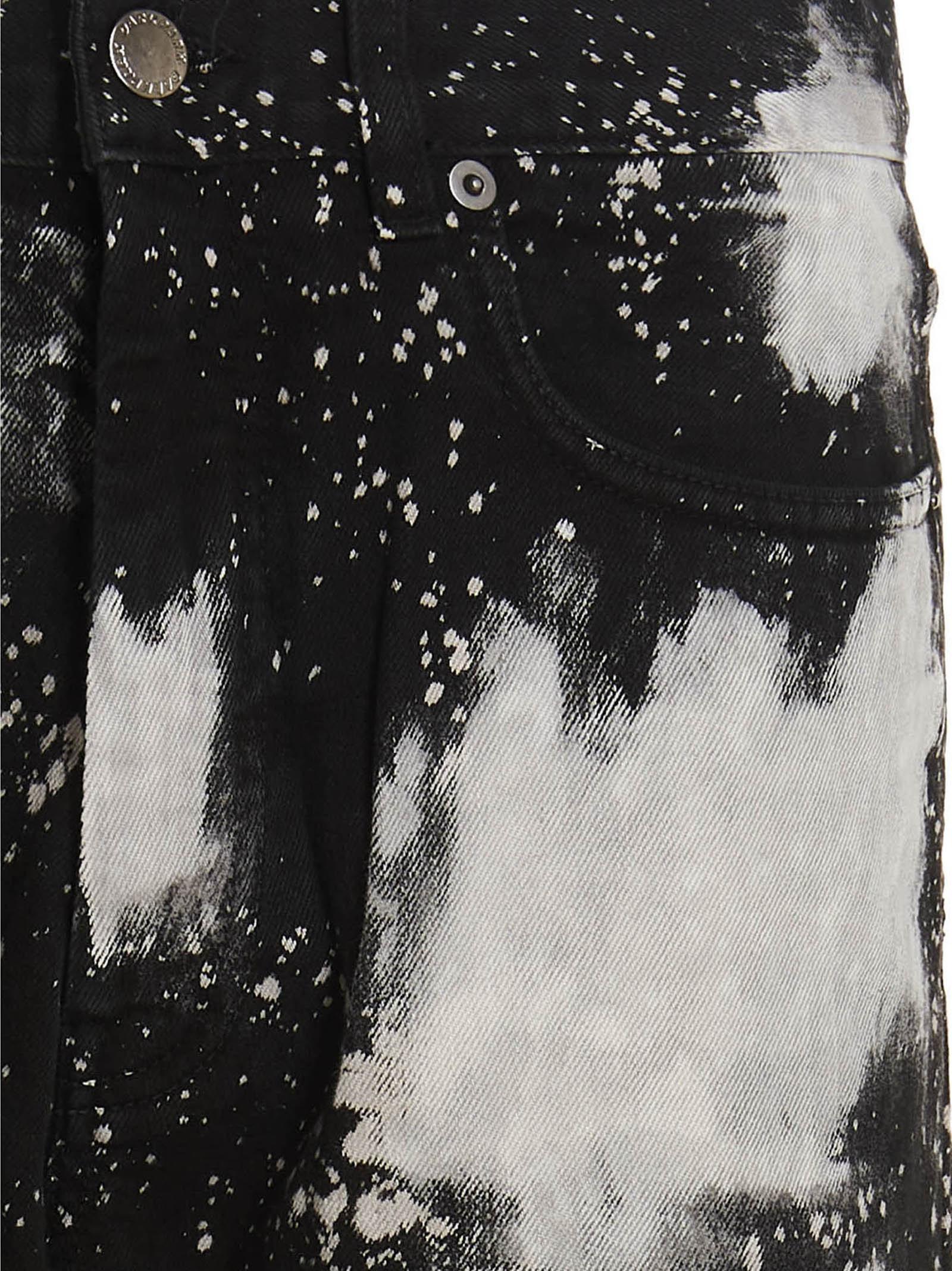 'Christopher' cotton denim jeans with all-over paint-effect print, zip and button closure, five pockets, straight leg and leather logo tag.