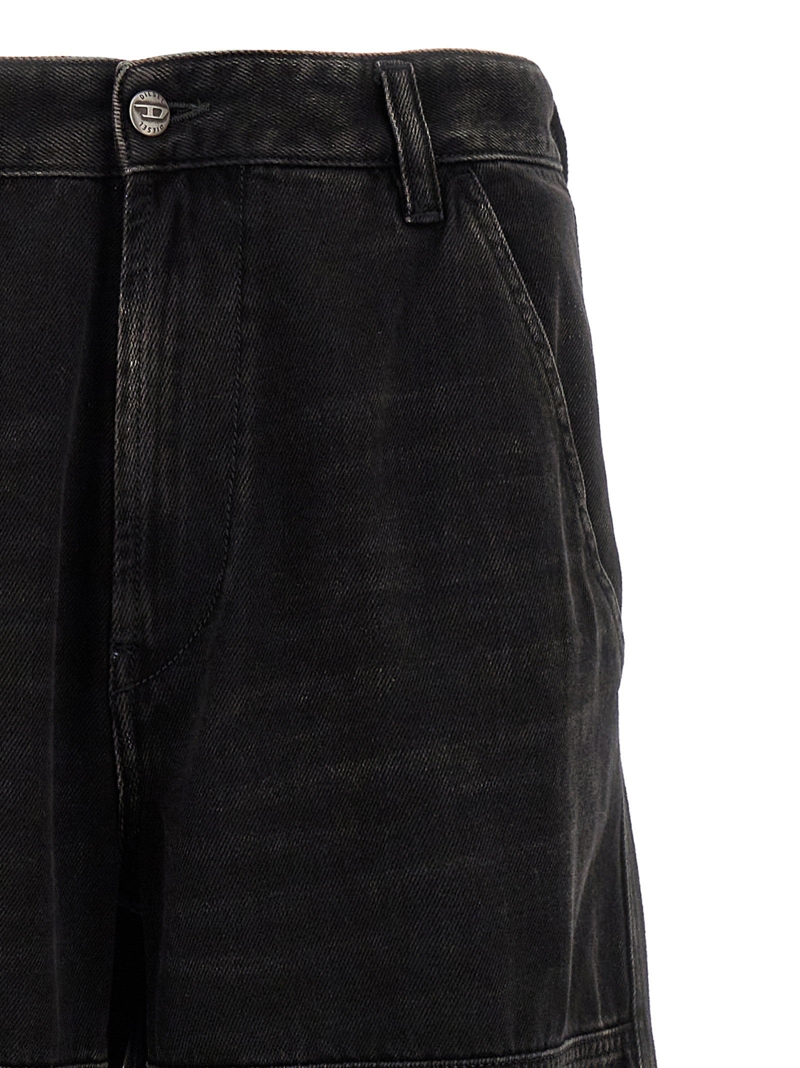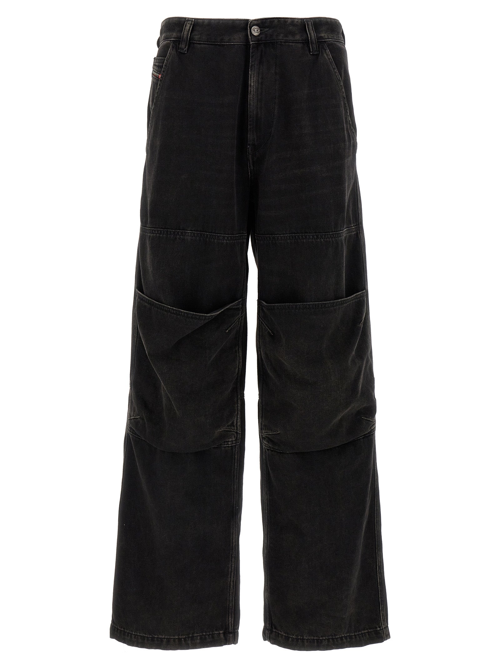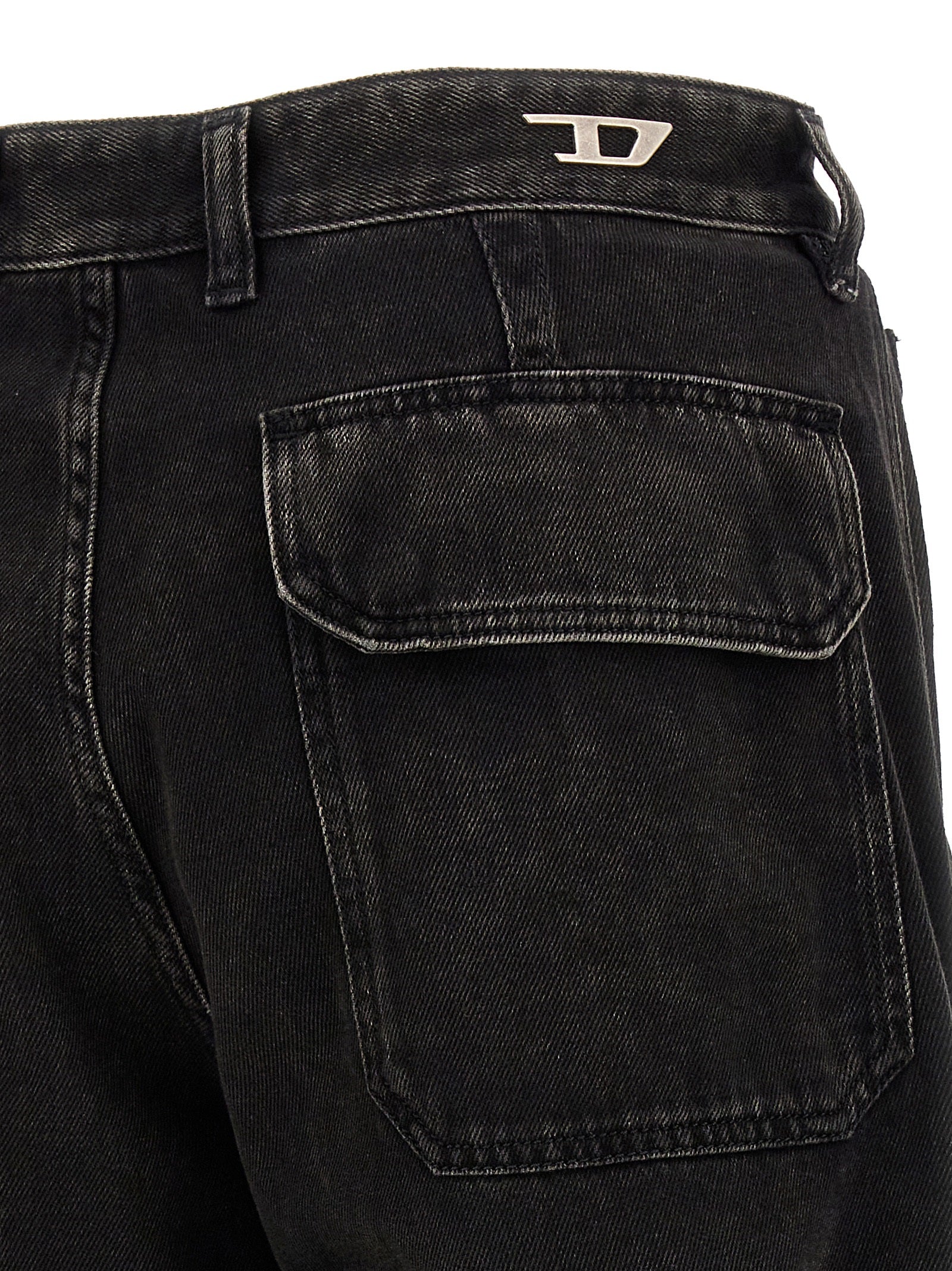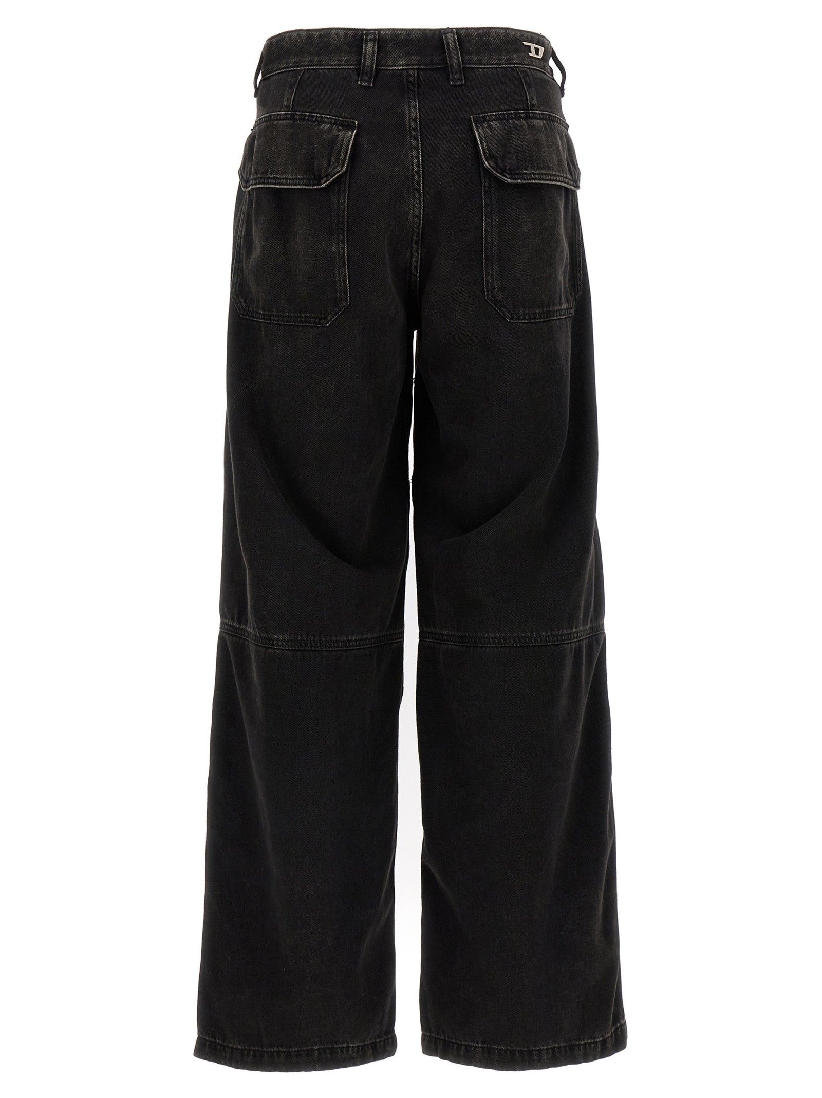 'D-Zeta 09j96' low-waisted stonewashed cotton denim jeans with wide, straight leg, zip and button closure, maxi pockets, and metal logo on the back.