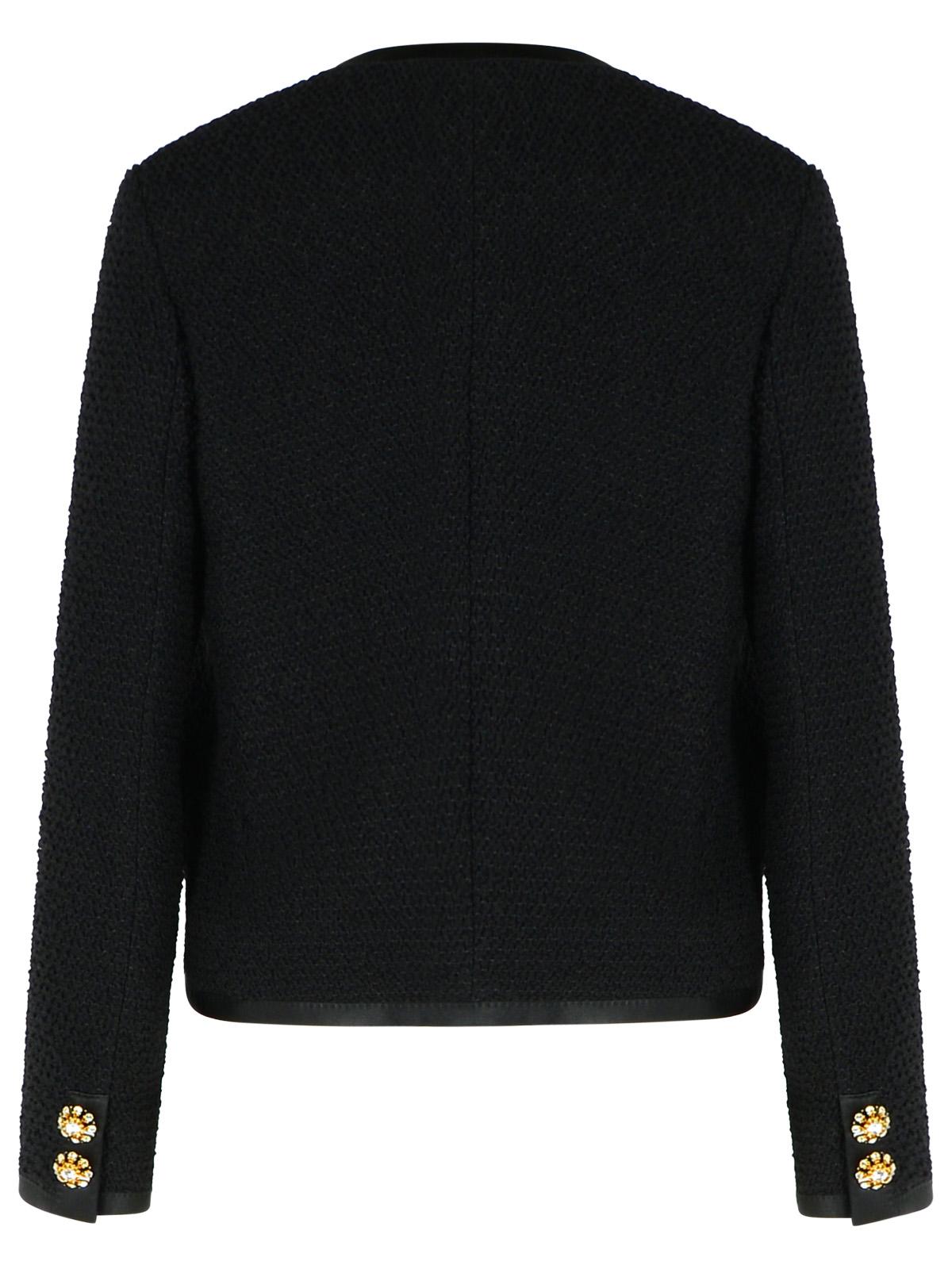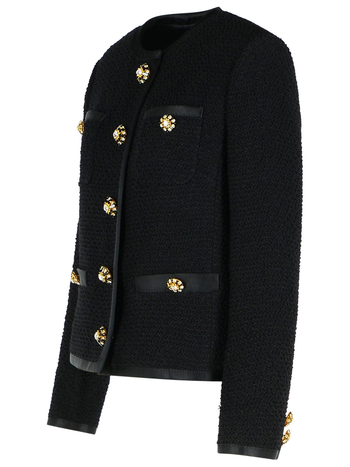 Satin finish, four front pockets, central button closure, buttons embellished with light points