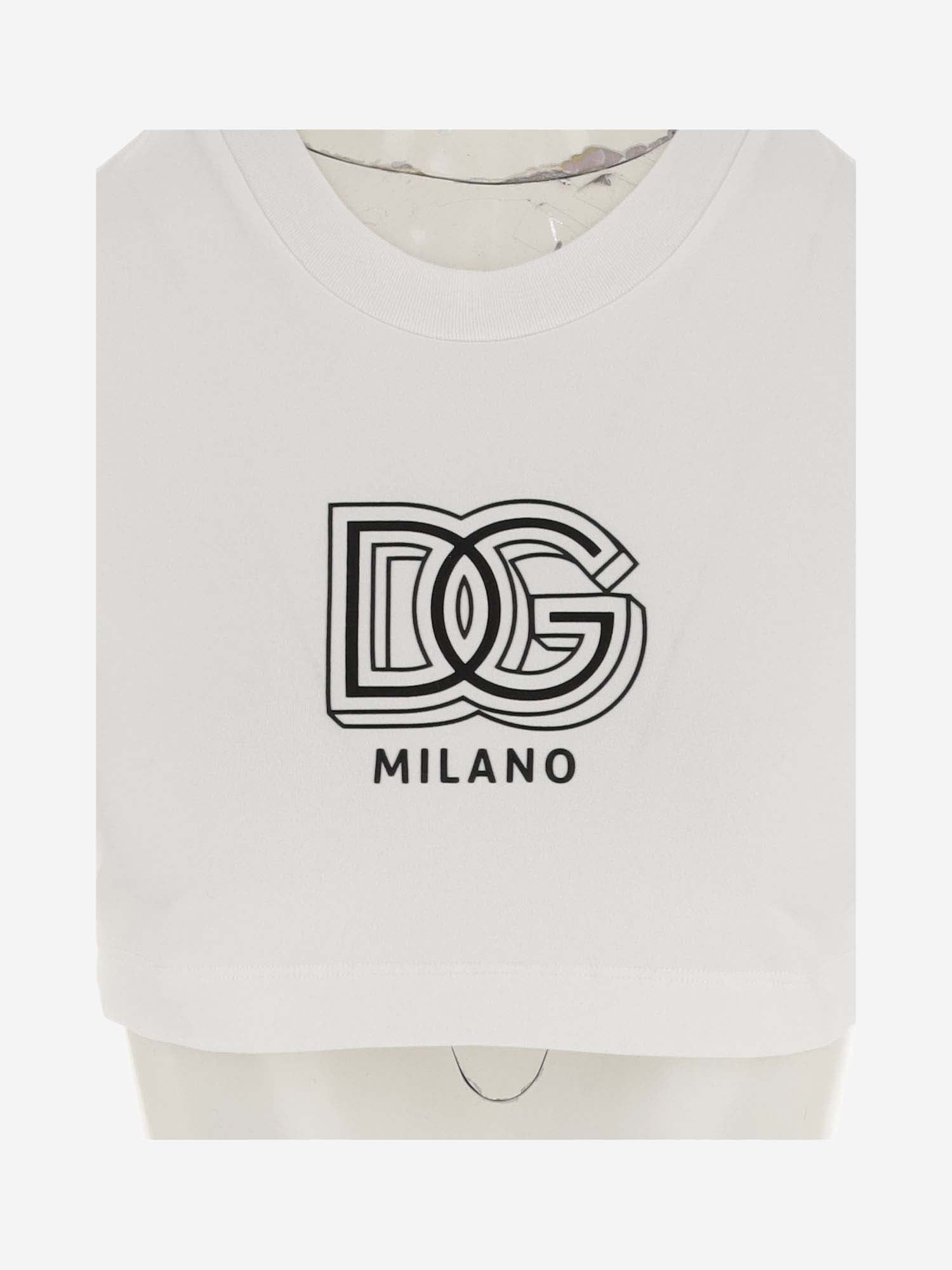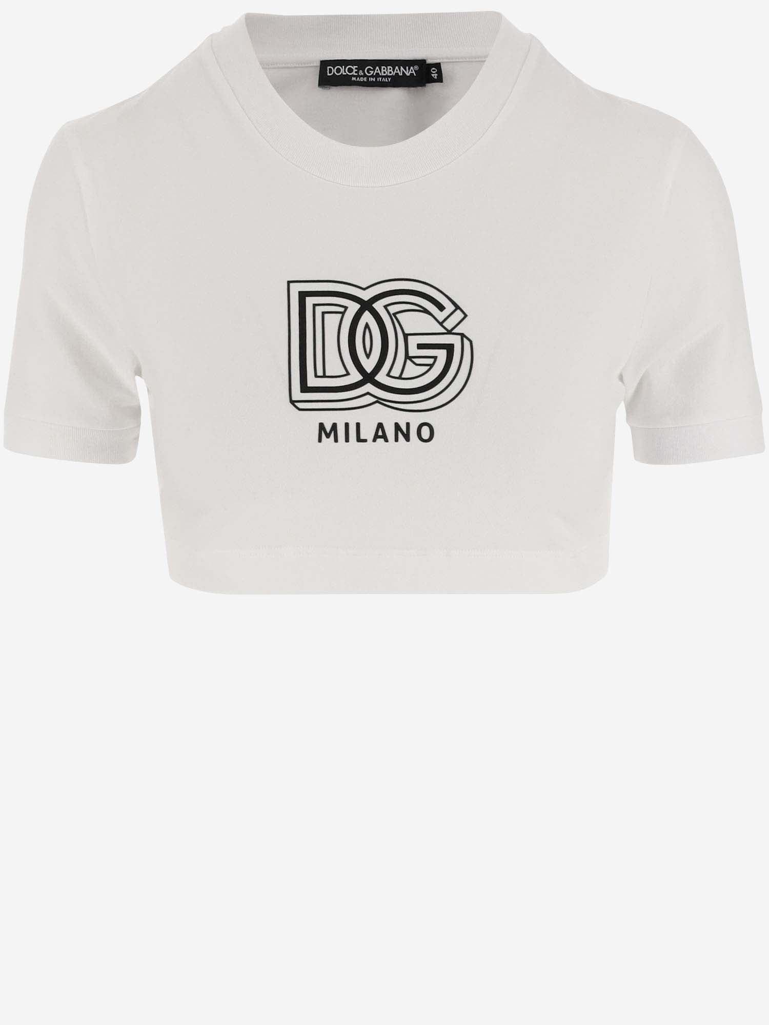Dolce & Gabbana Stretch Cotton Crop T Shirt With Logo